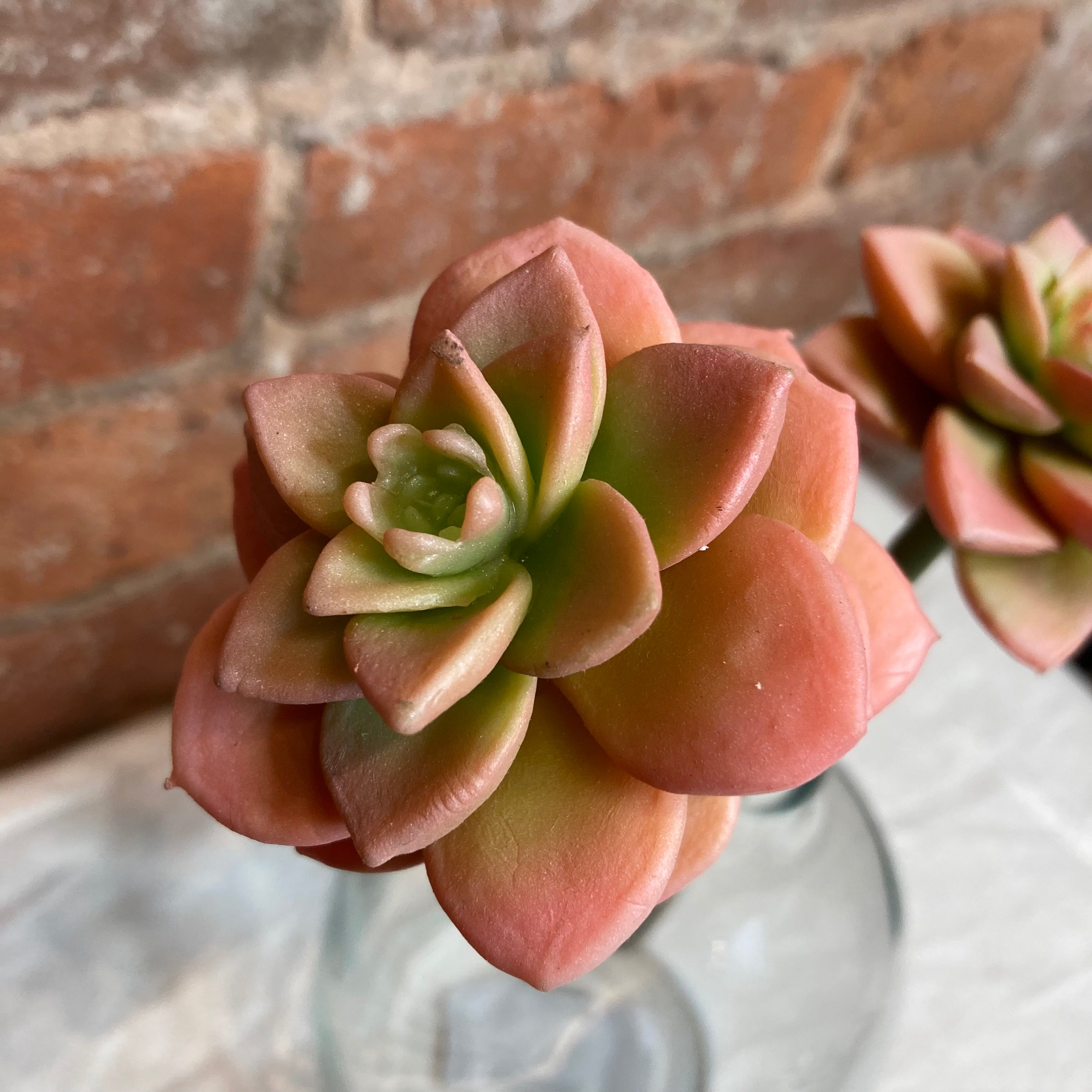 Cute mini succulent spray that comes in two variants. You can choose between coral and sage/burgundy. This spray will be a perfect edition to the empty vase sitting on your counter top.