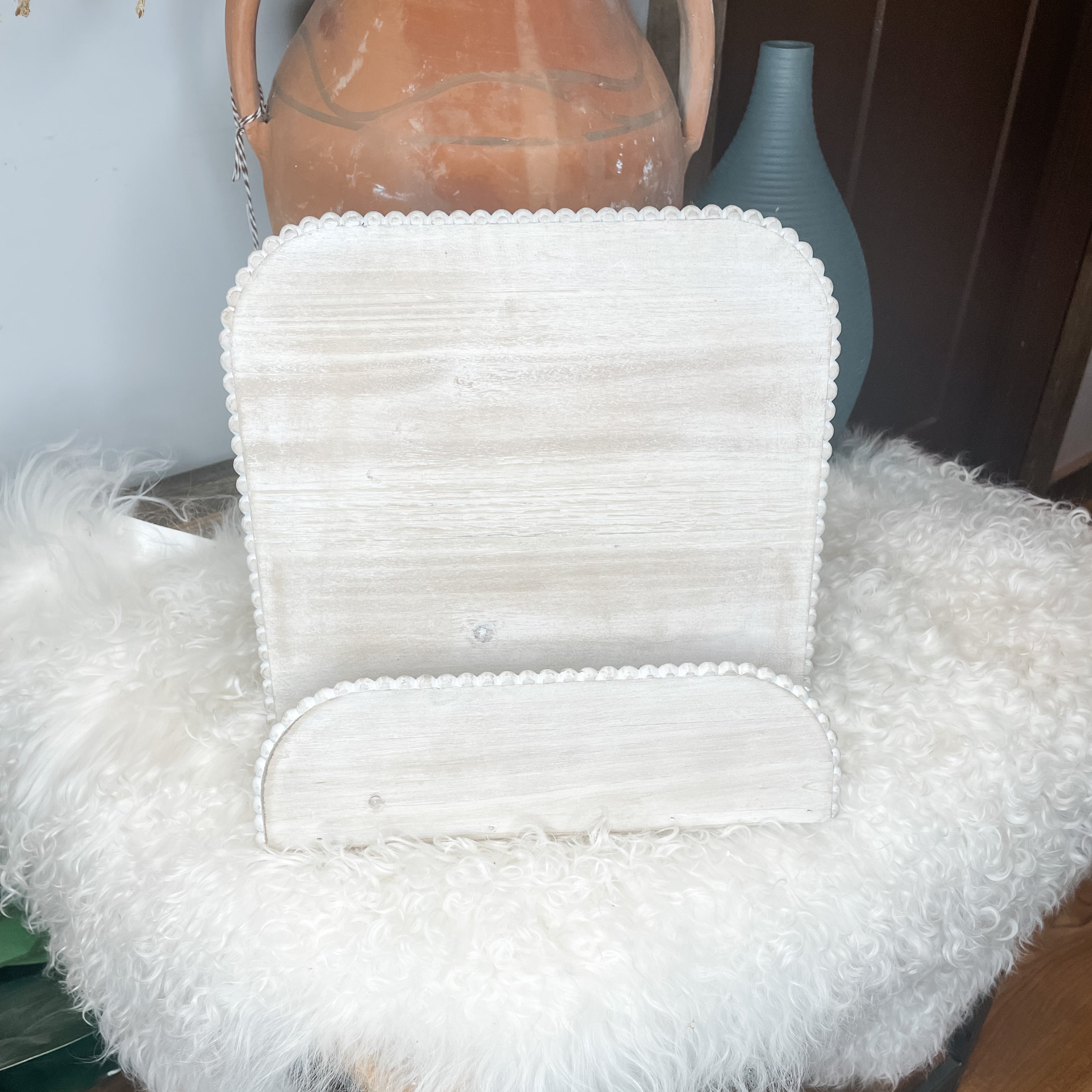 This stylish, wooden book holder features an intricate beaded trim. The high-quality wood construction ensures durability, while the unique beading adds a touch of elegance and sophistication that will last for years to come. Perfect for keeping your favorite books close at hand.