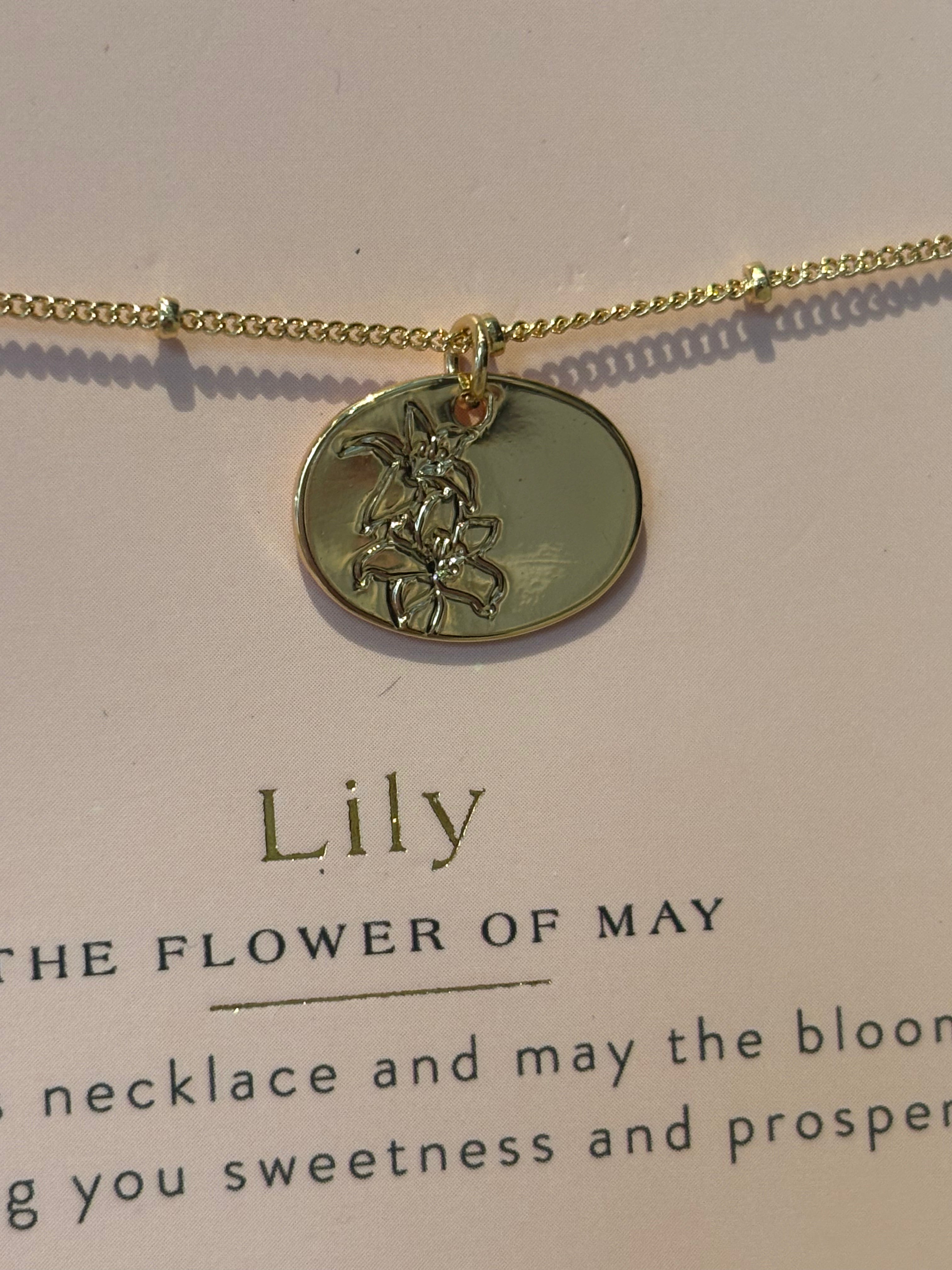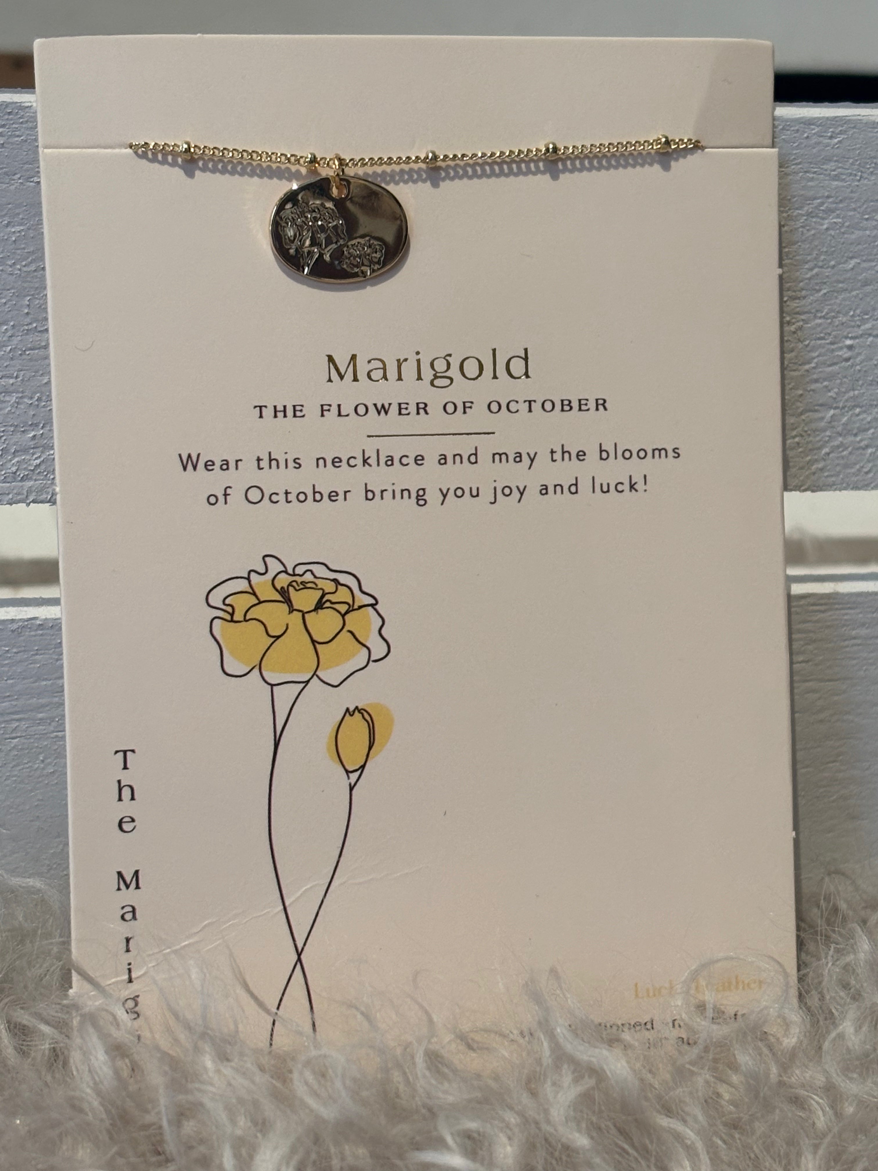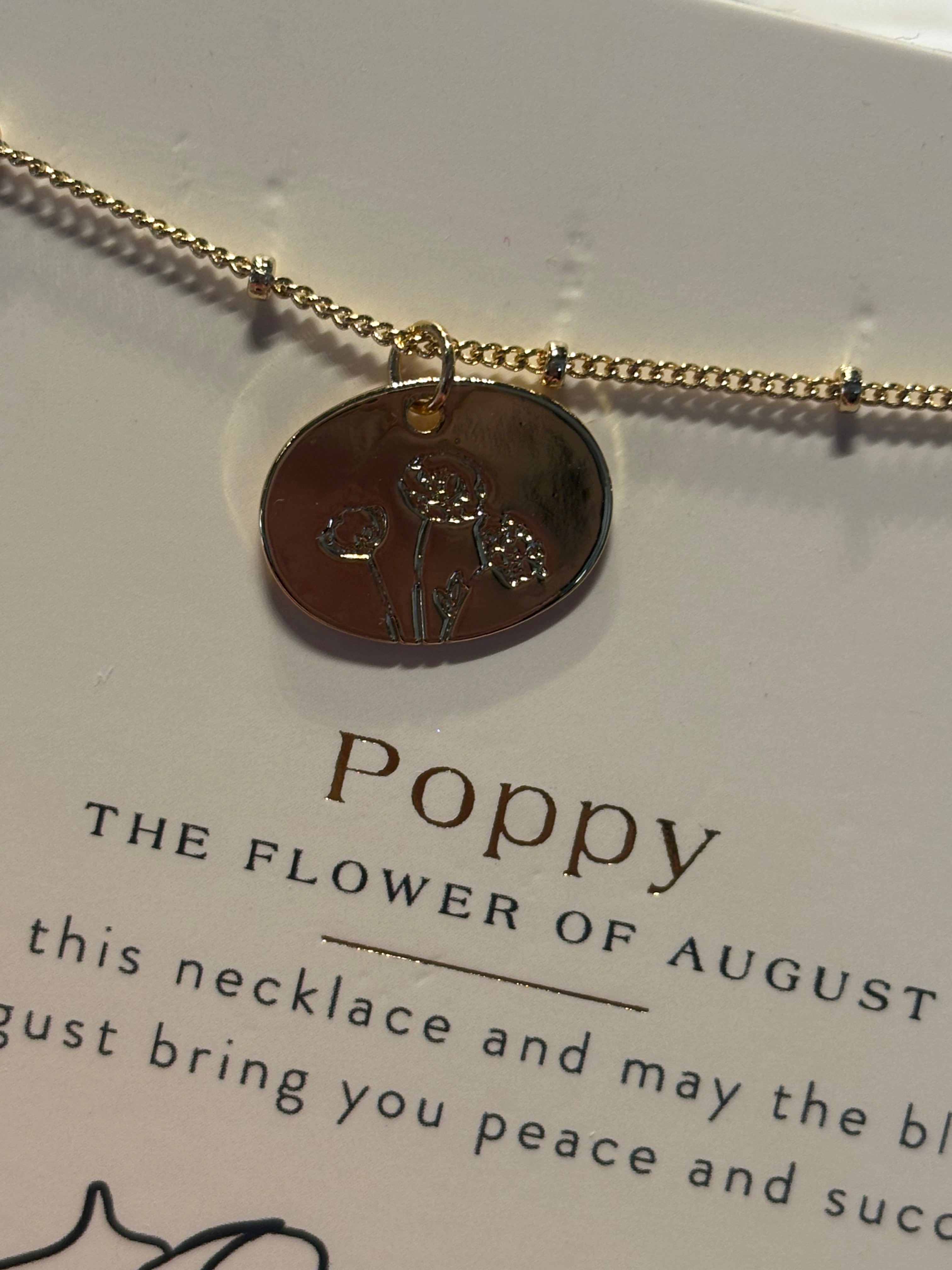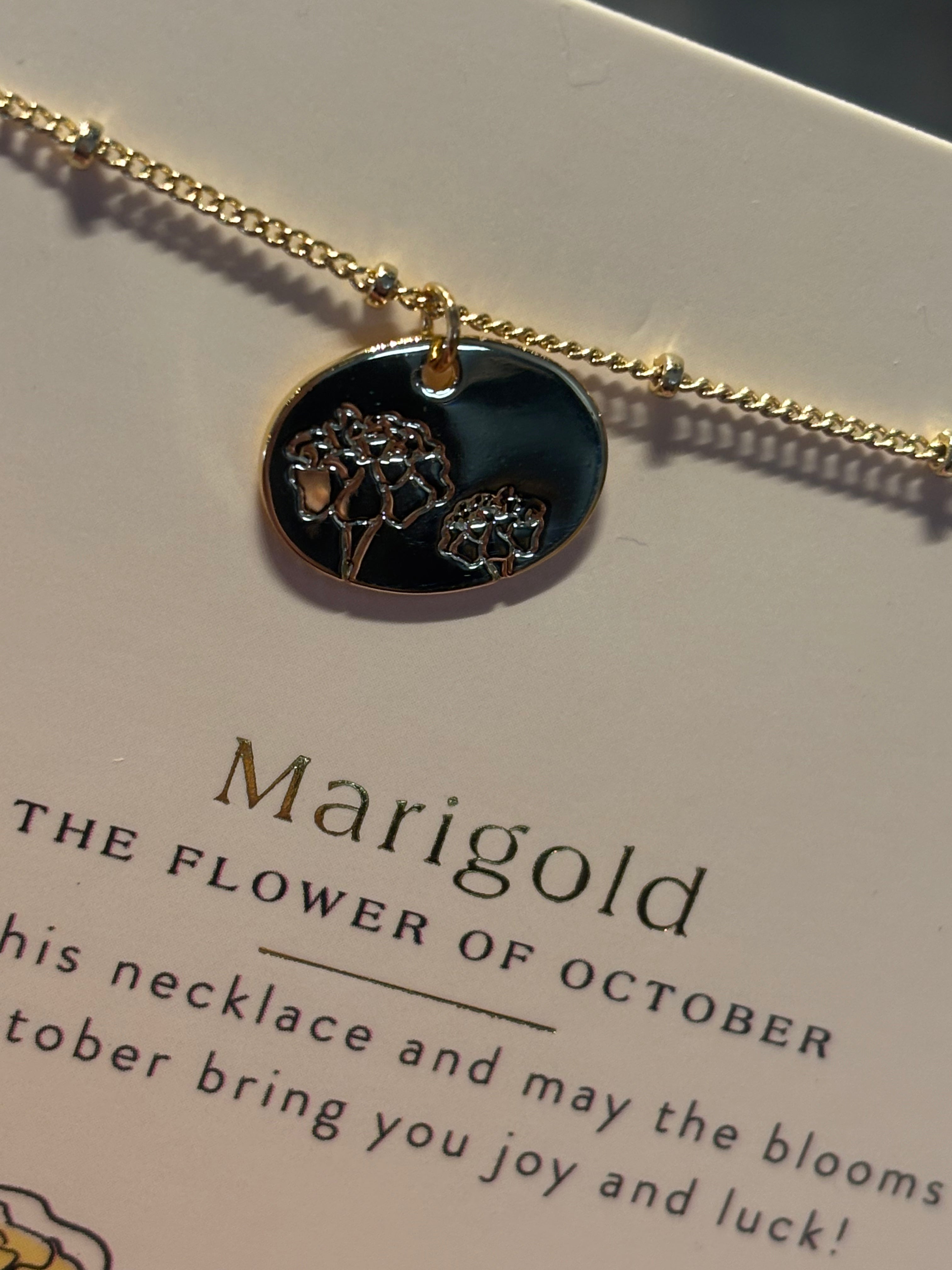 Celebrate your birth month in style with this gorgeous necklace featuring a delicate flower charm in shimmering gold. The beautiful beaded chain adds a touch of sparkle and sophistication to any outfit. Whether you're treating yourself or gifting it to someone special, this piece is the perfect way to showcase your birth flower with a playful, personalized flair. A timeless accessory that blooms with meaning.