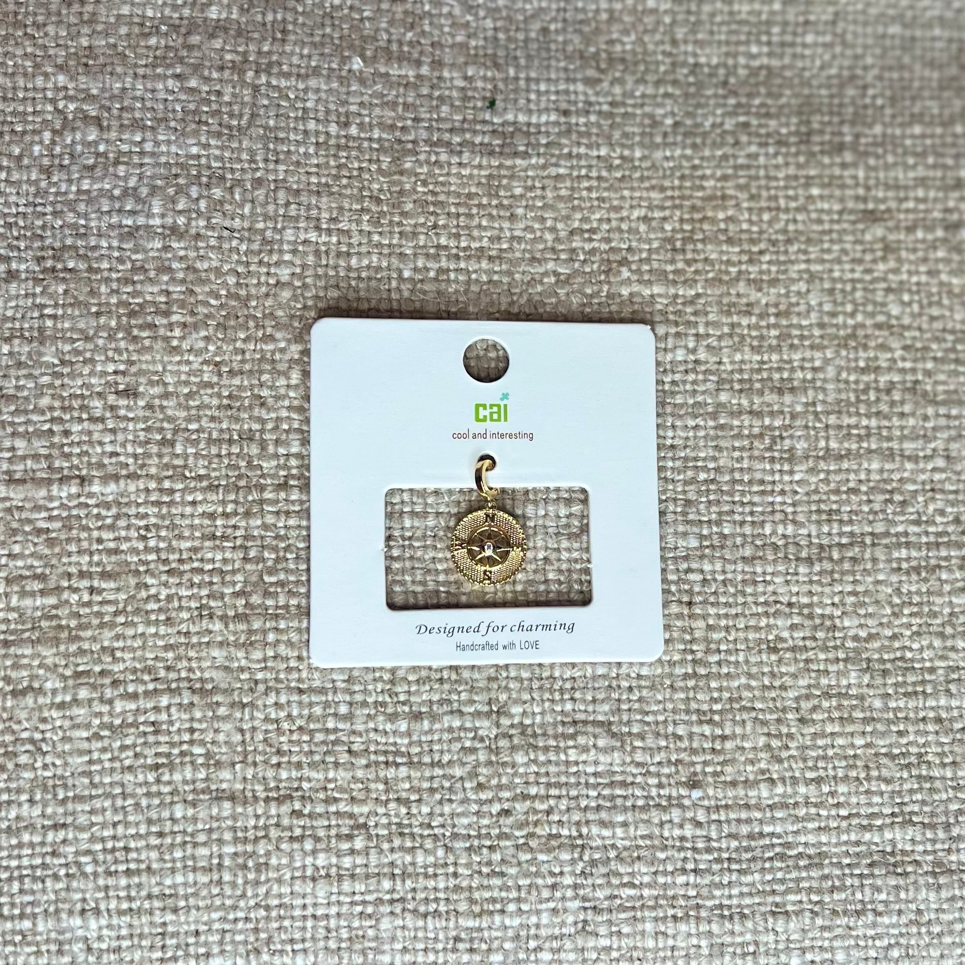 The Gold CS Compass Charm features a refined design with a single gem at its center, expertly crafted in gold to add a symbolic and elegant touch to your jewelry.