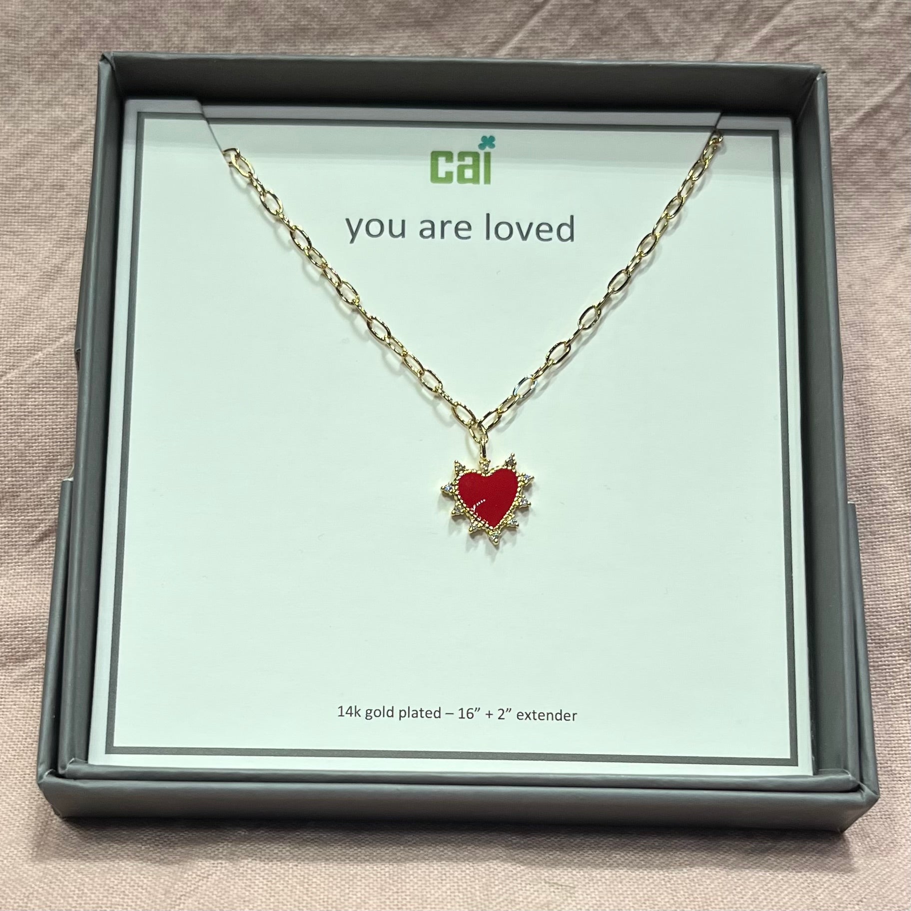Sparkle and sentiment in one stunning piece. This gold CZ red heart necklace features a shimmering cubic zirconia heart that catches every light, suspended on a delicate 14k gold-plated chain link chain. Adjustable from 16" to 18" with the included extender, it's the perfect length for layering or wearing solo. Romance meets radiance.