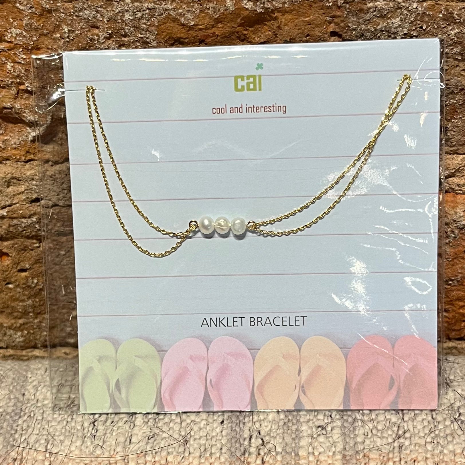 Crafted with a delicate design, this anklet features three lustrous pearls that add a touch of elegance to any outfit. Made with high-quality gold, it's the perfect accessory for any occasion.