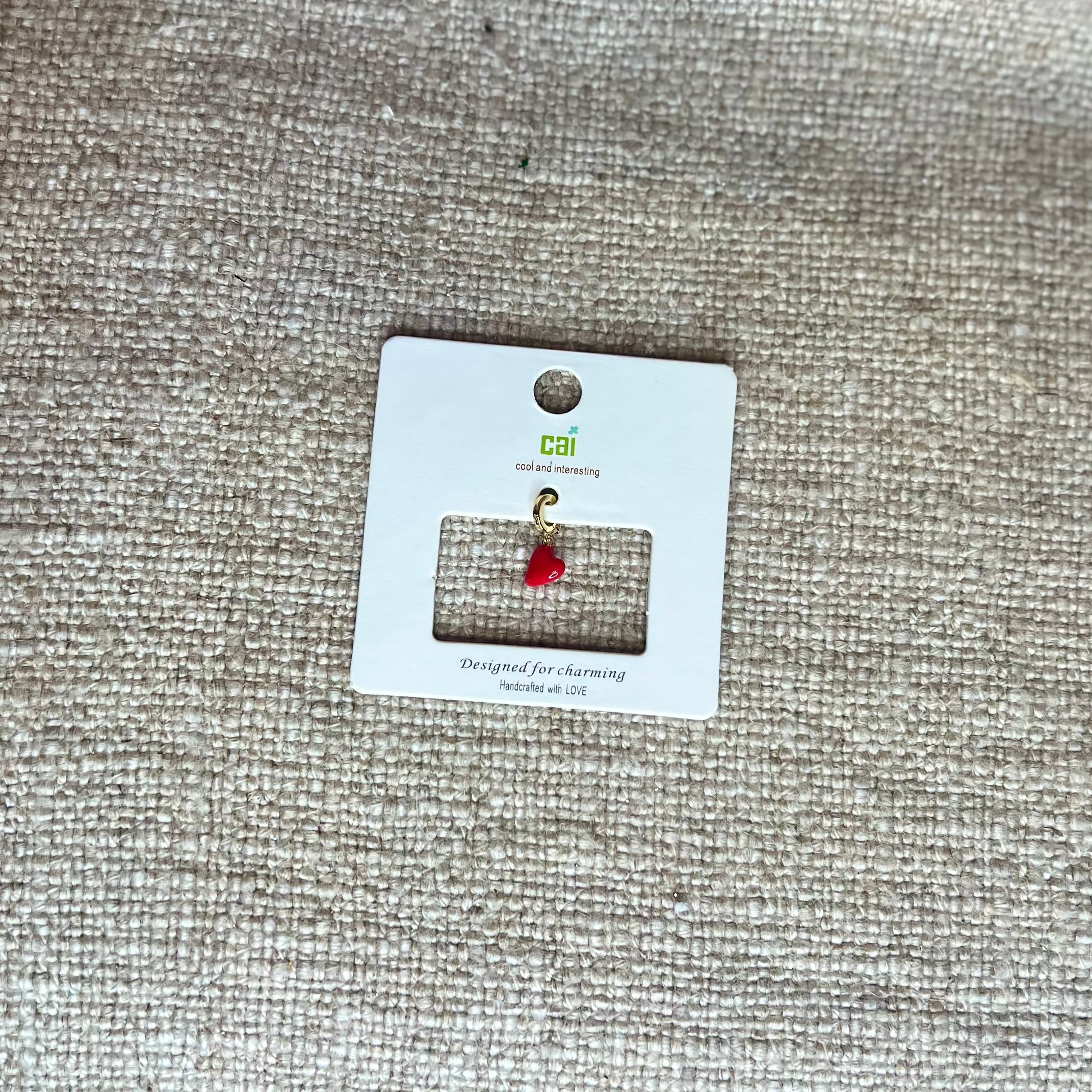 The Gold Dainty Red Heart Charm combines a delicate gold setting with a vibrant red heart detail, expertly designed to add a subtle yet striking accent to your bracelet or necklace.