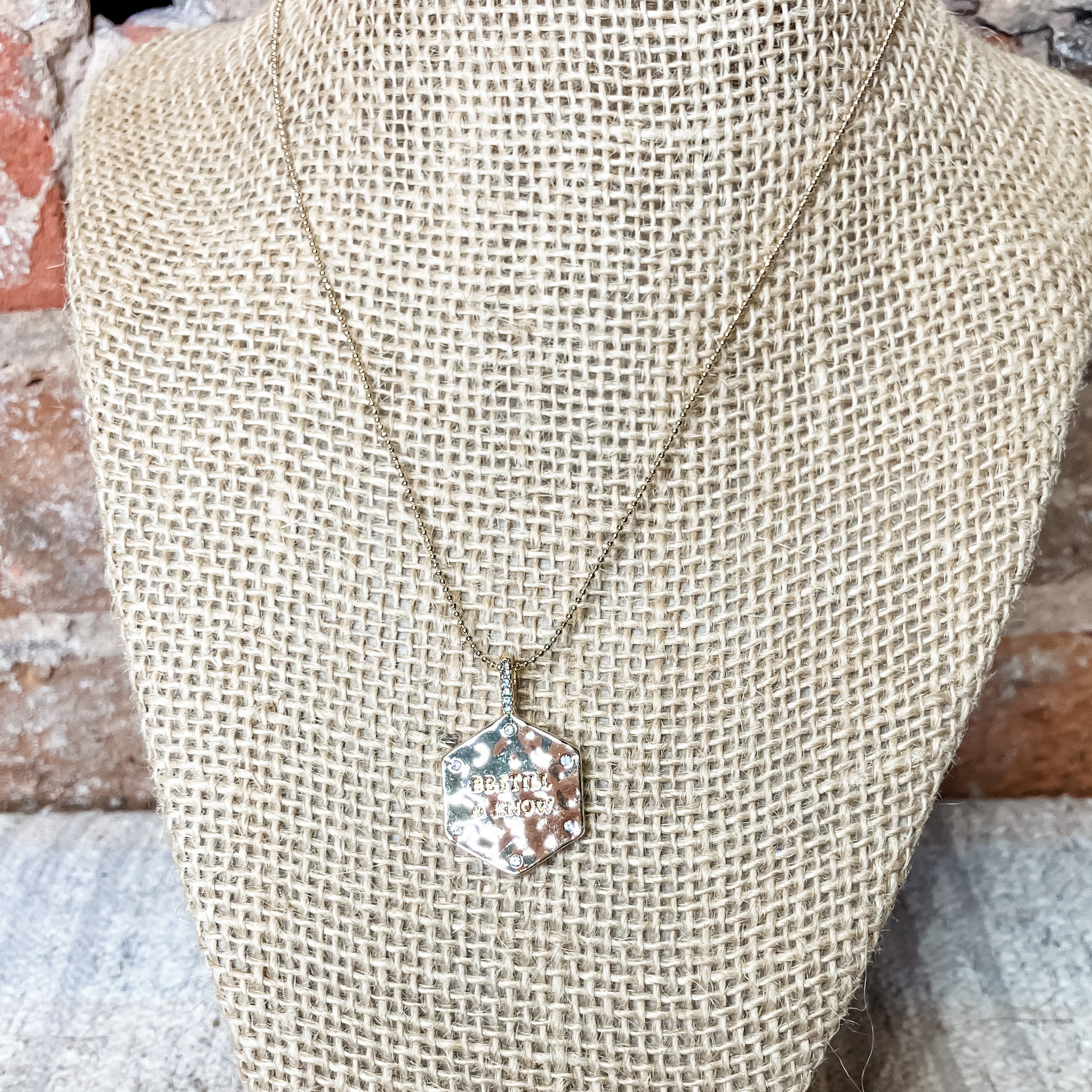 This gold necklace features a beautifully crafted "Be Still & Know" pendant. Made from high-quality materials, this necklace serves as a constant reminder to find peace and strength in stillness. A perfect accessory for any outfit, this necklace is a meaningful addition to any jewelry collection.