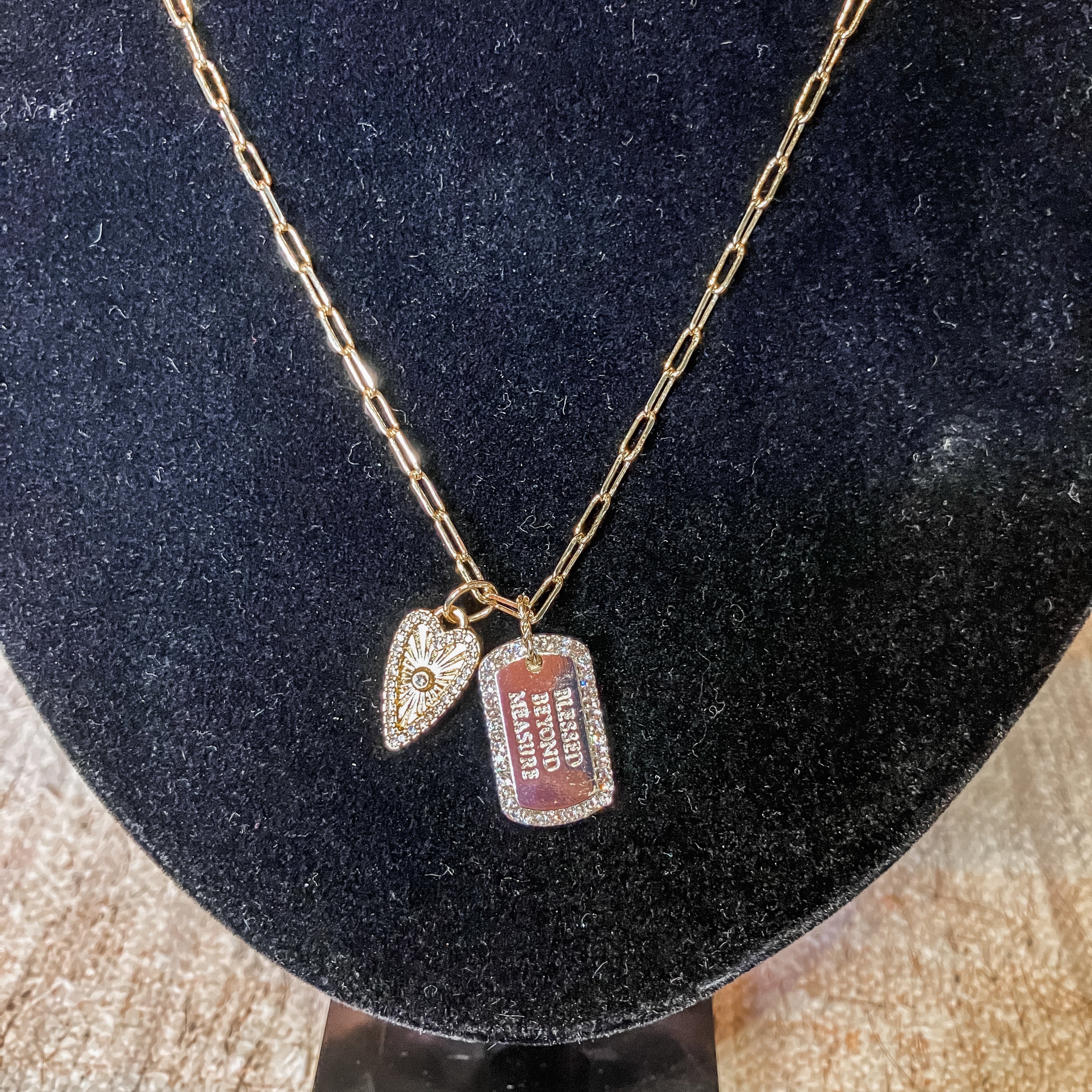 Elevate your look with our Blessed Beyond Measure Gold Paperclip Chain Necklace. The unique paper clip design adds a touch of modern style to any outfit.