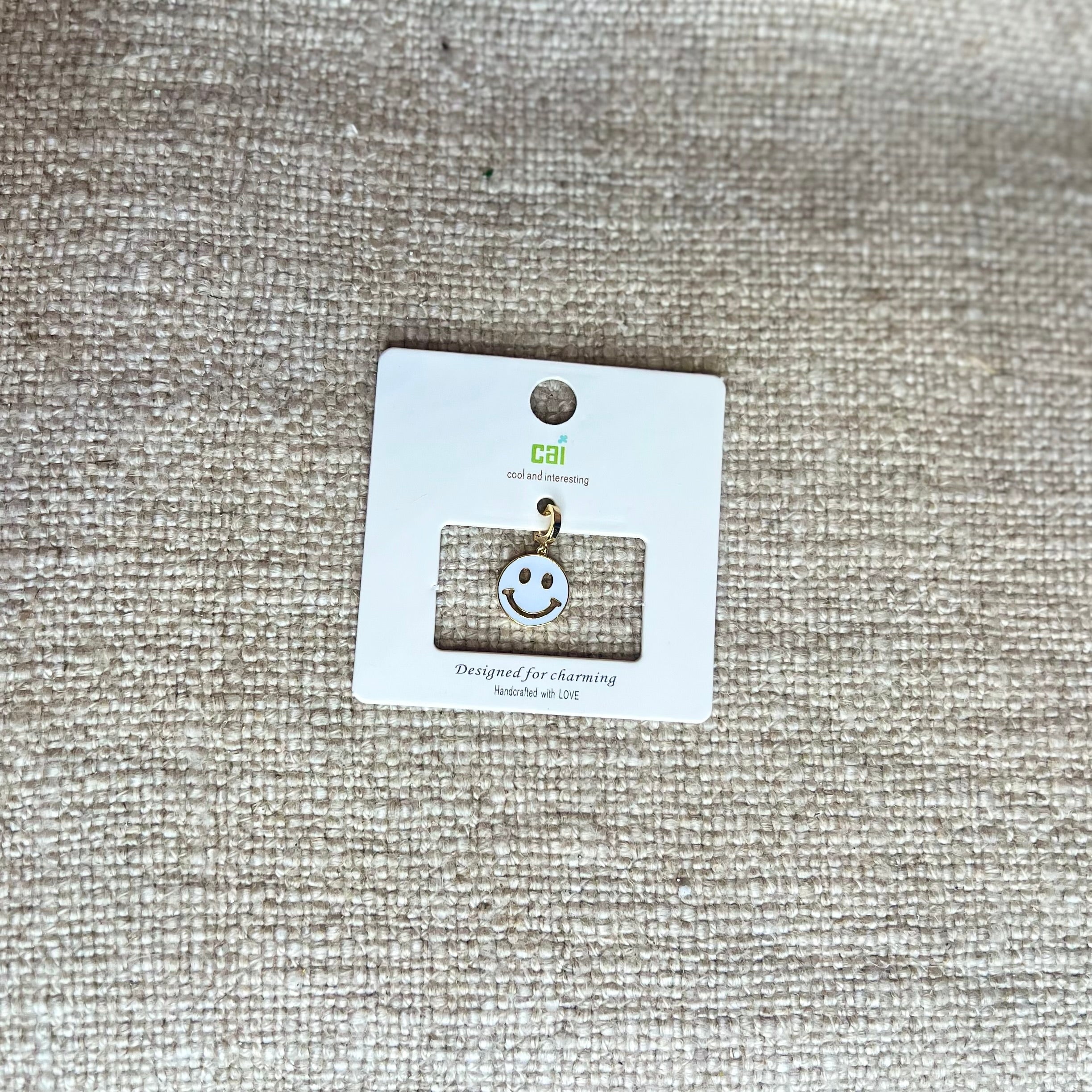 The Gold White Happy Face Charm features a polished gold setting with a cheerful white face detail, expertly designed to add a playful yet refined touch to your jewelry.