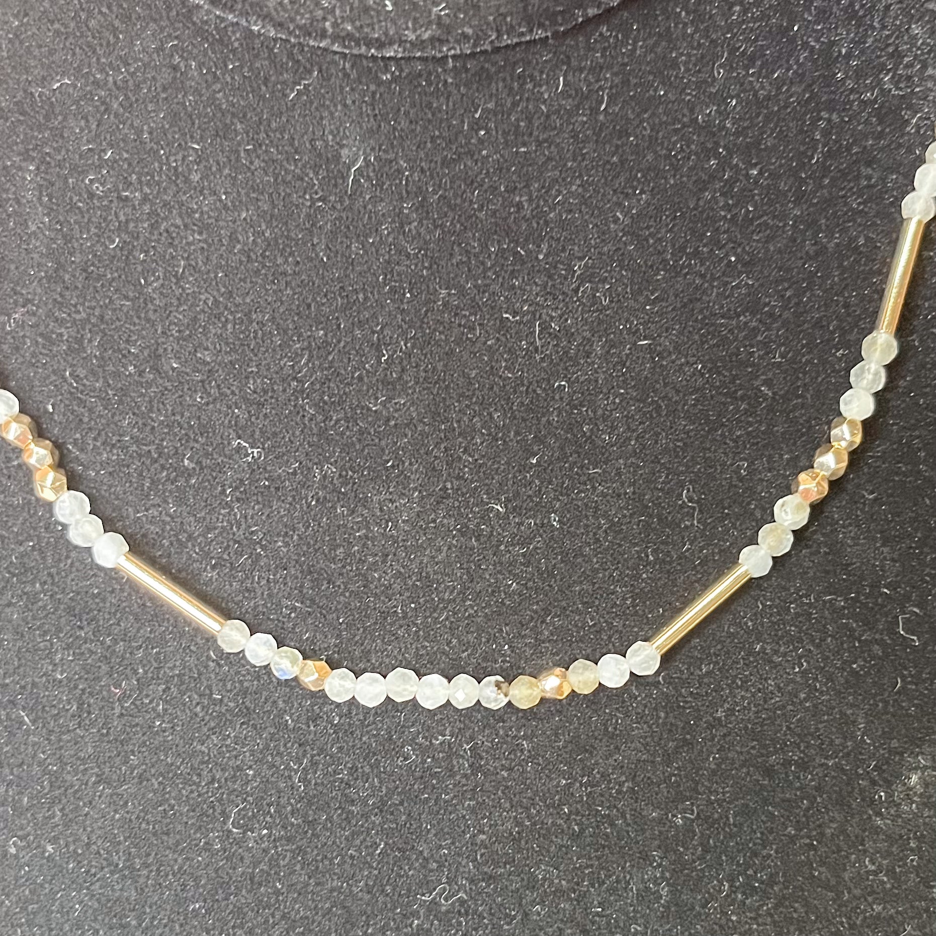 Grey/White Beaded Necklace w/Gold Bar
