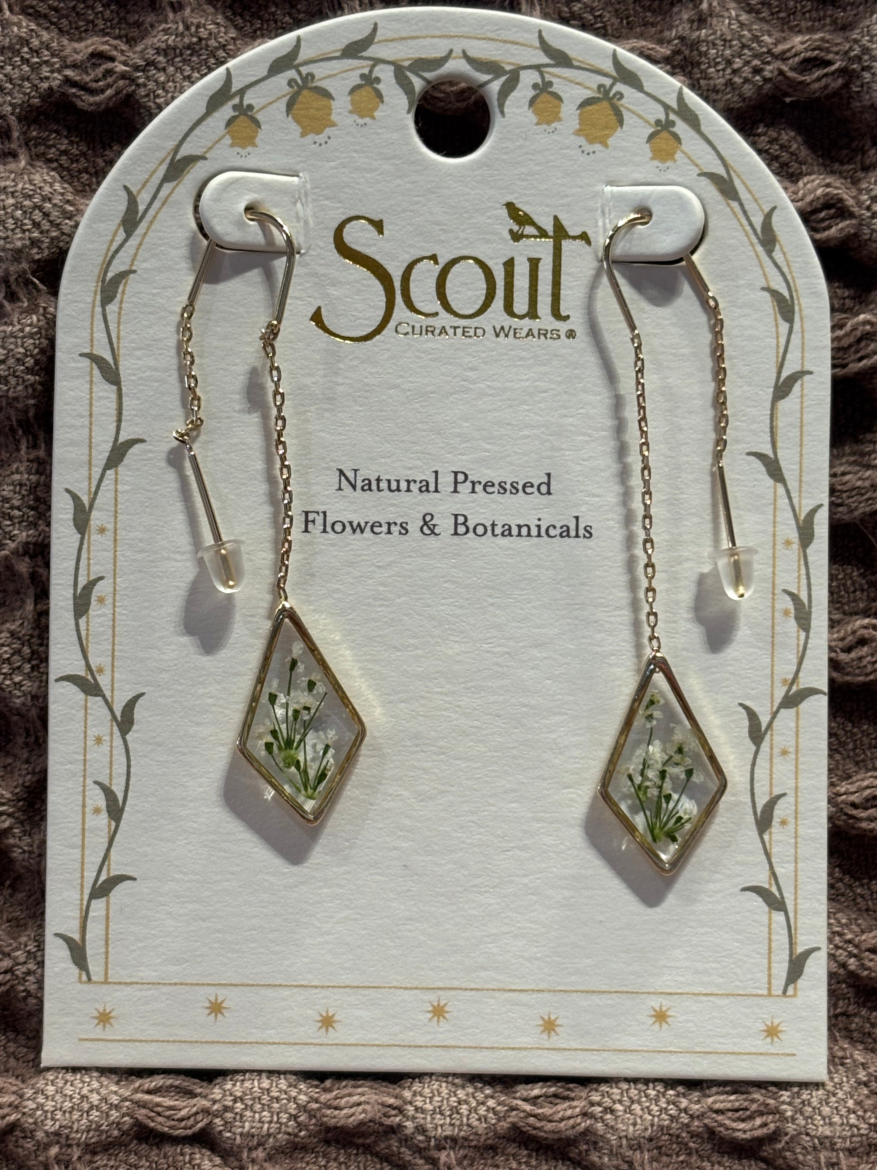 Delicate pressed flowers suspended in crystal-clear resin, dangling from silky threads that catch the light with every turn of your head. These whimsical earrings bring nature's quiet beauty straight to your ears—perfect for anyone who loves botanical vibes without the fuss of real flowers wilting away. Lightweight, charming, and totally conversation-starting. Wear them and let your ears do the talking.