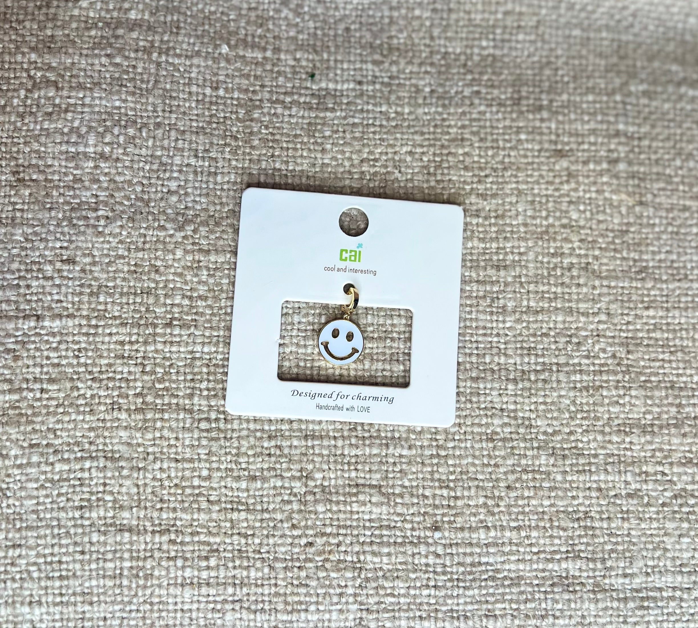 Gold White Happy Face Charm