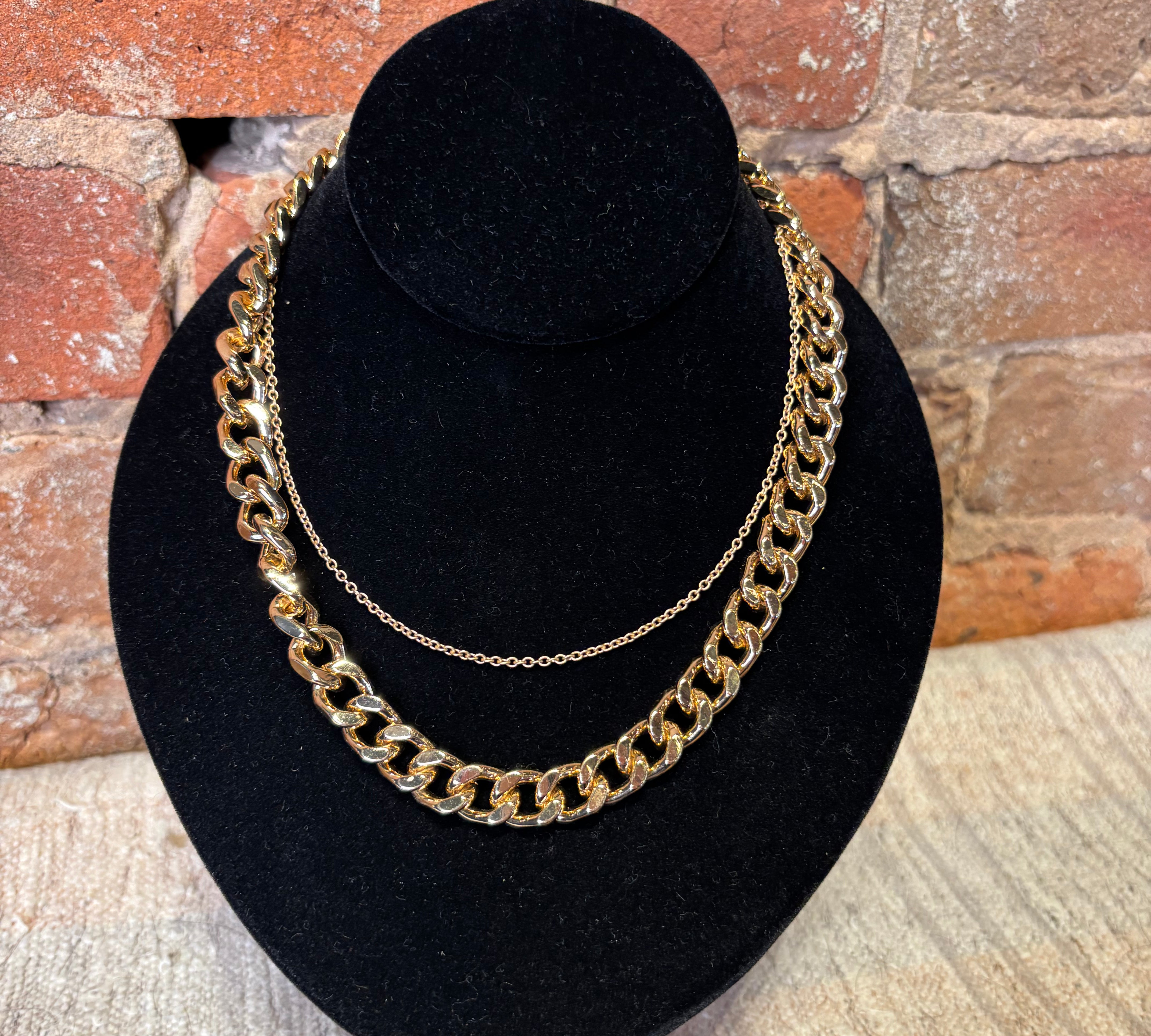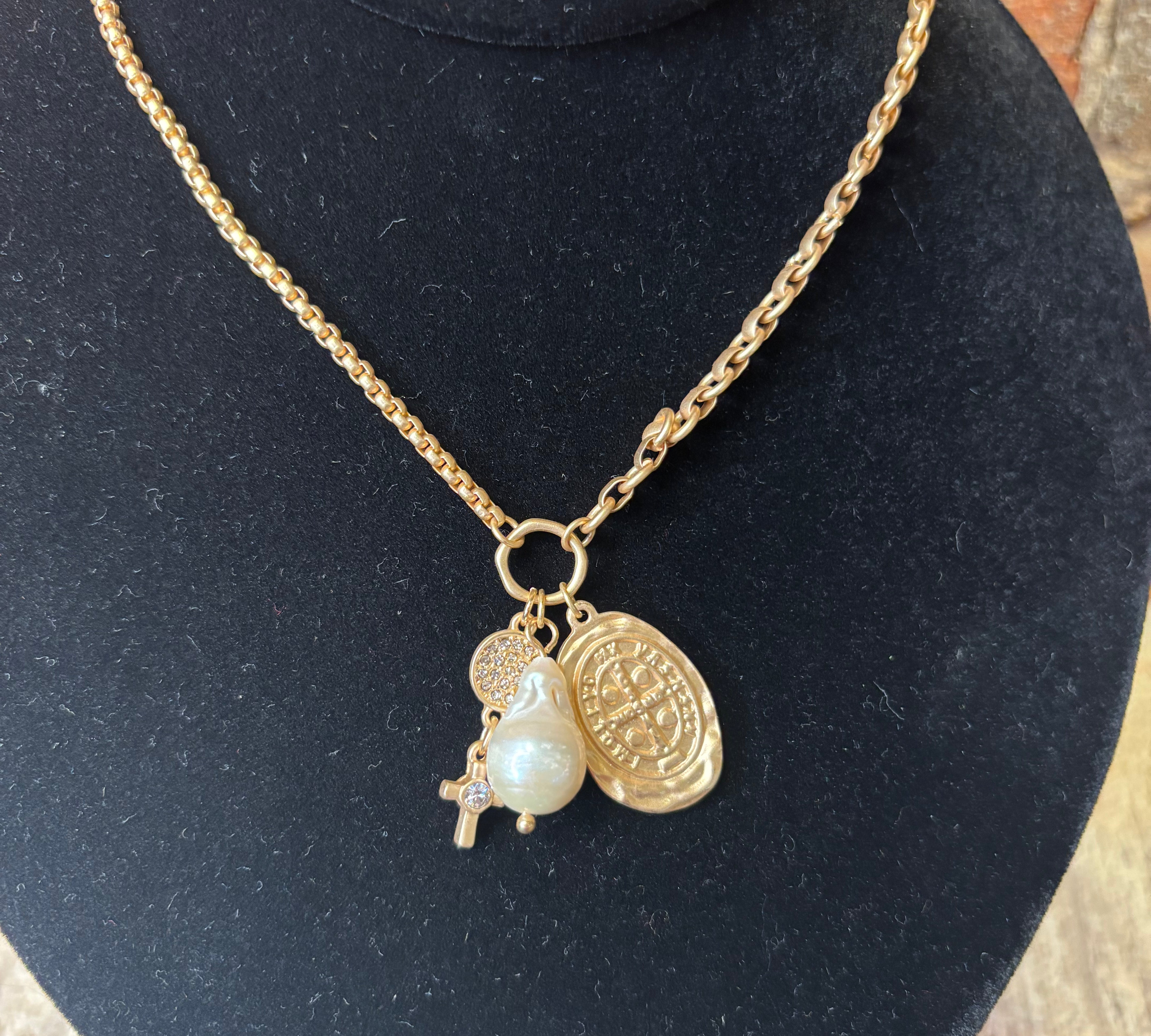 Gold Chain Necklace w/Gold & Pearl Pendant