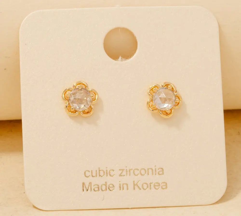 Sterling Silver Pave Star/Heart Stud Earring Set