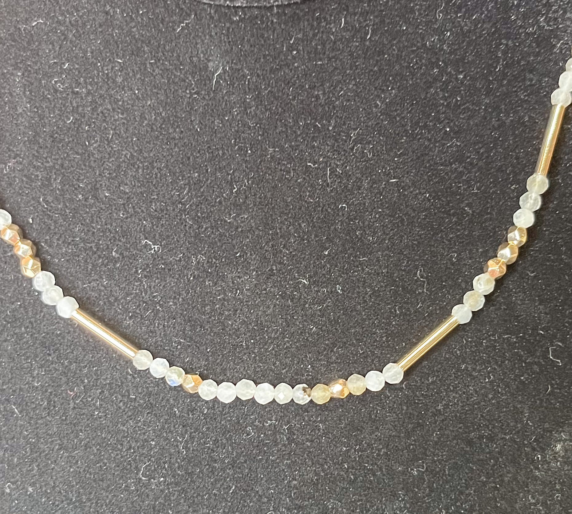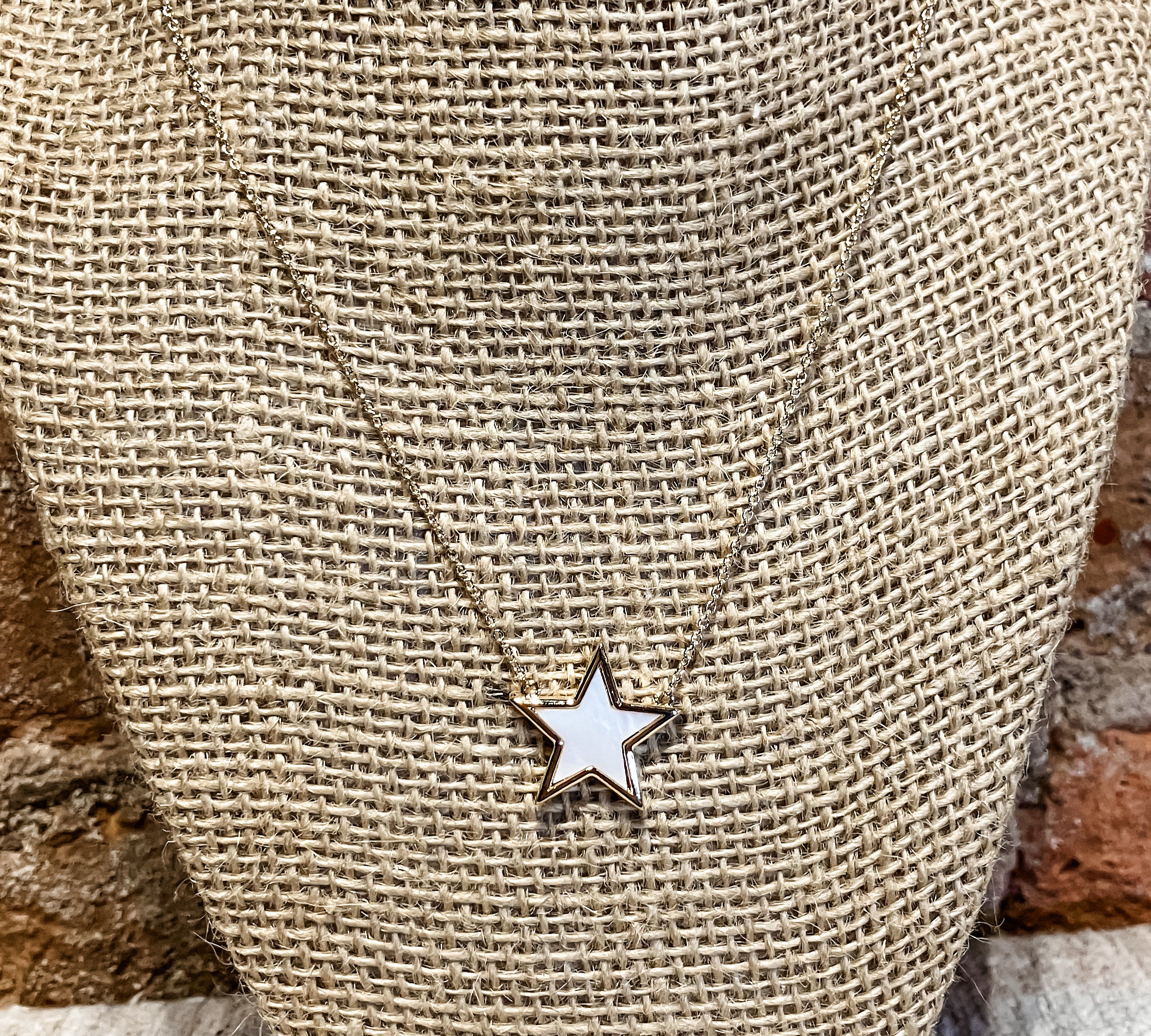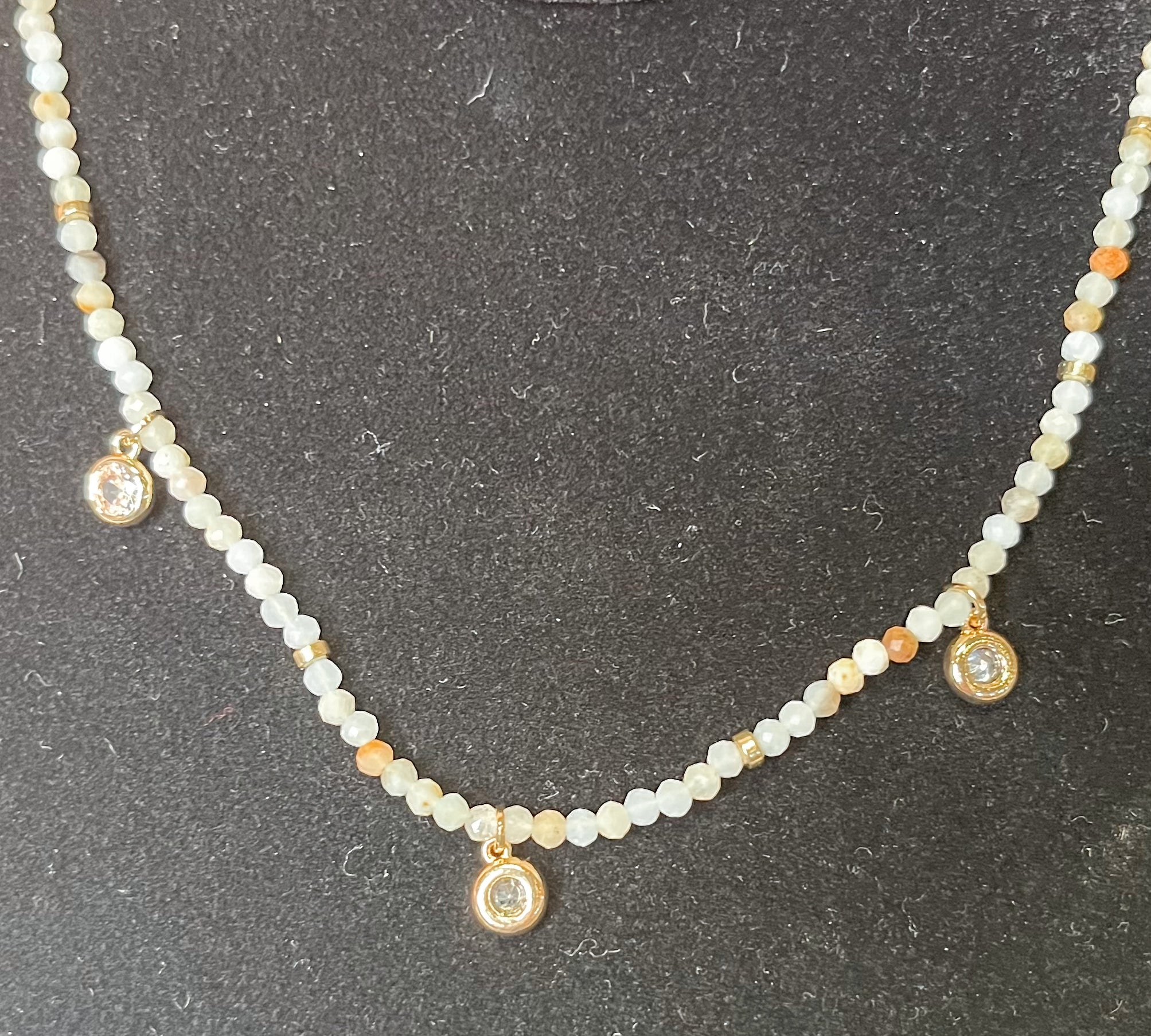 Gold Chain/Grey Bead Necklace w/ Star Pendant