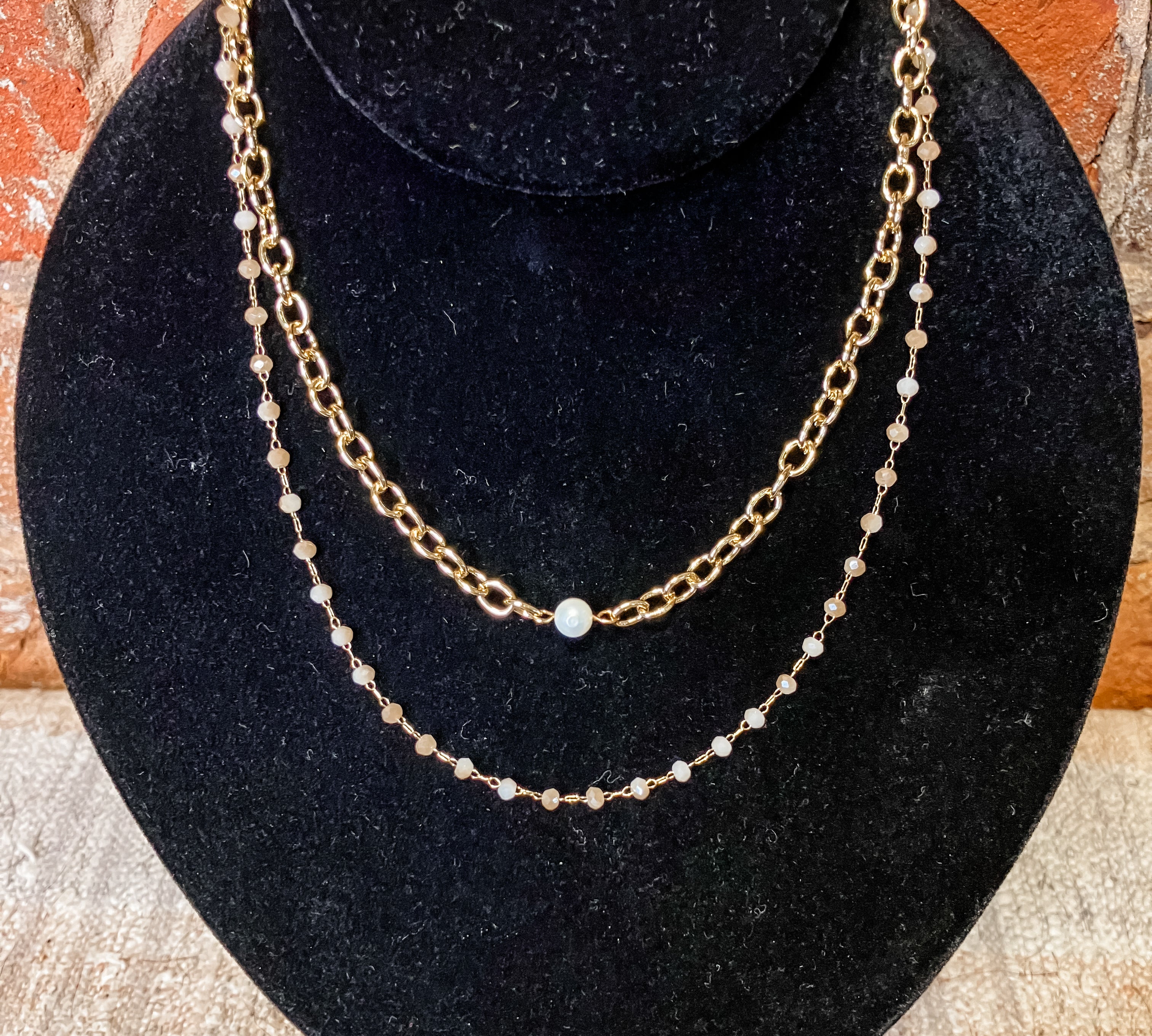 Silver/Gold Paper Clip Chain Necklace w/Pearl