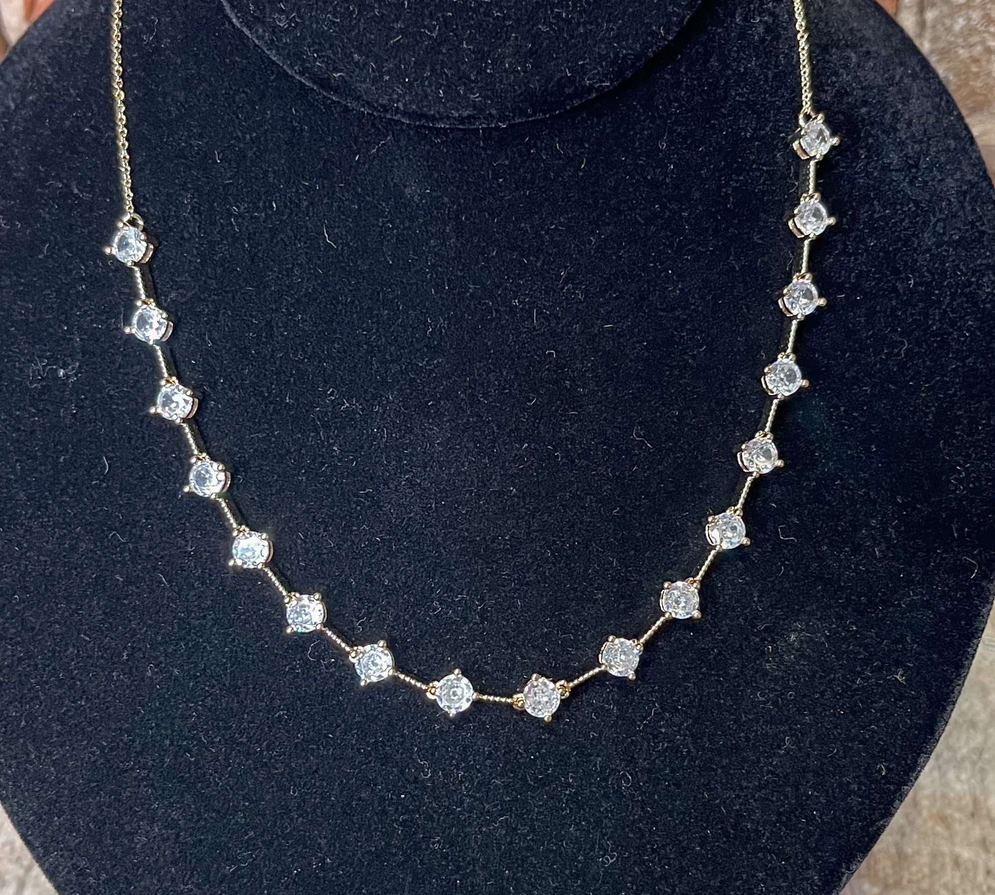 Silver Chain Necklace w/Rhinestone Heart Pendant