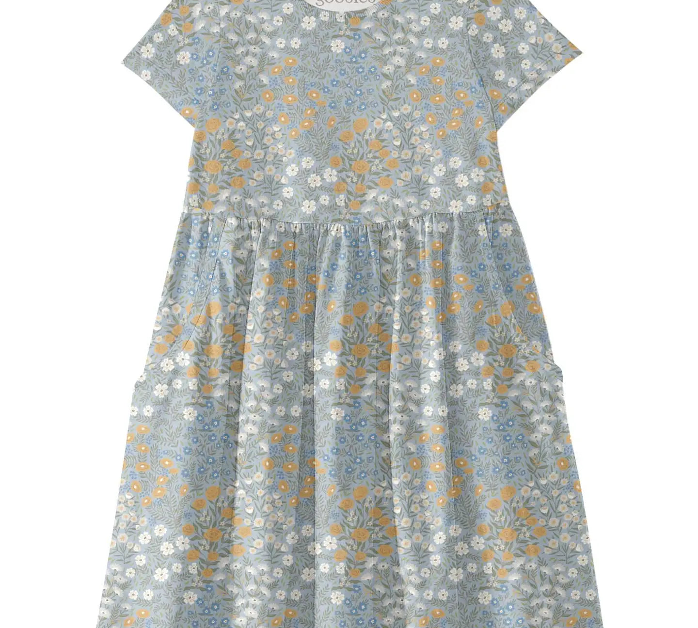 Girls Puff Sleeve Smock Waist Tiered Dress