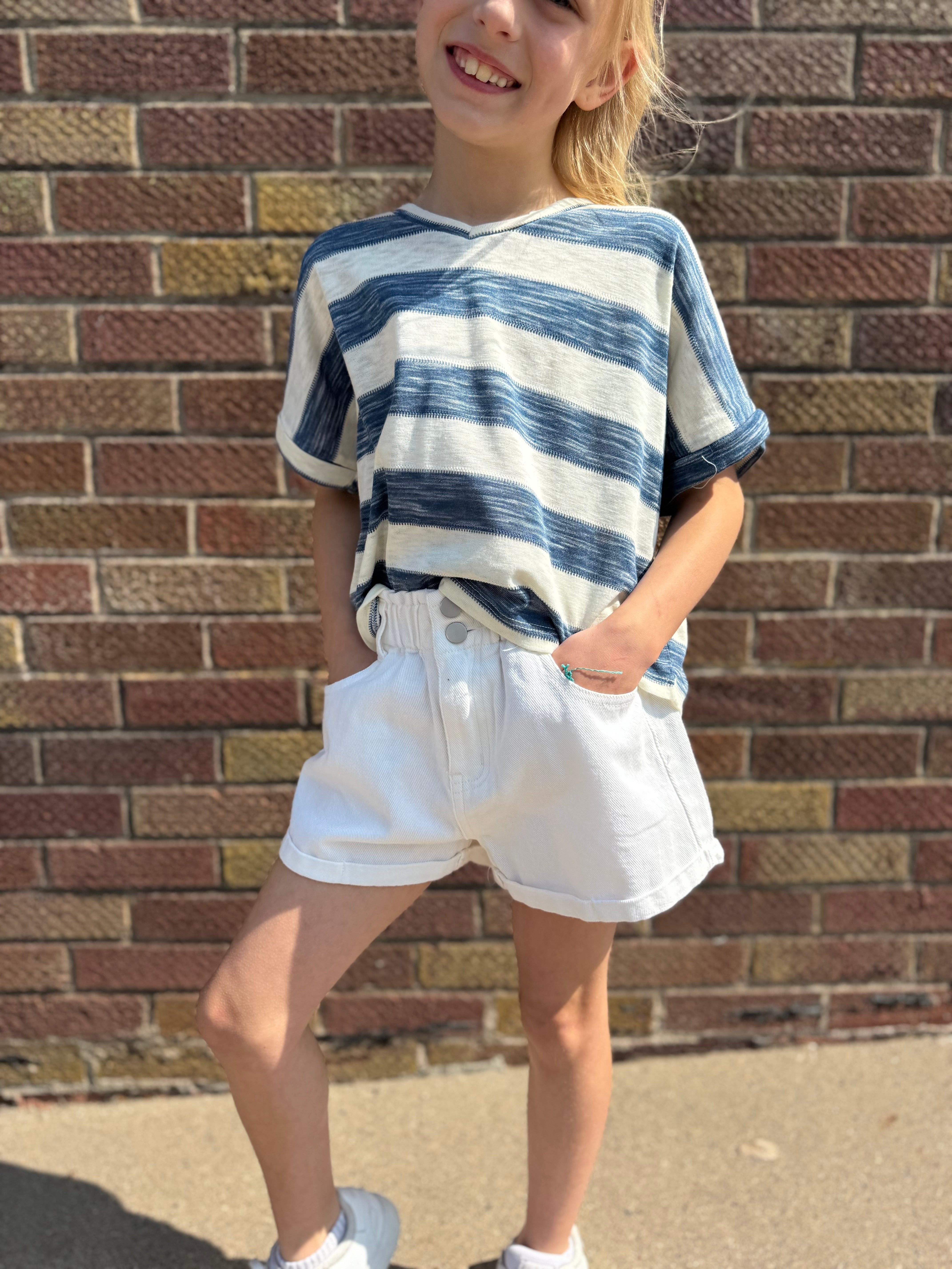 Stay stylish and comfortable with our Girls High Waist Roll Up Denim Shorts. Featuring front and back pockets, these shorts are perfect for storing small essentials while on the go. The elastic waist band with zipper and button front ensures a secure and customizable fit. Look and feel great in these versatile shorts.