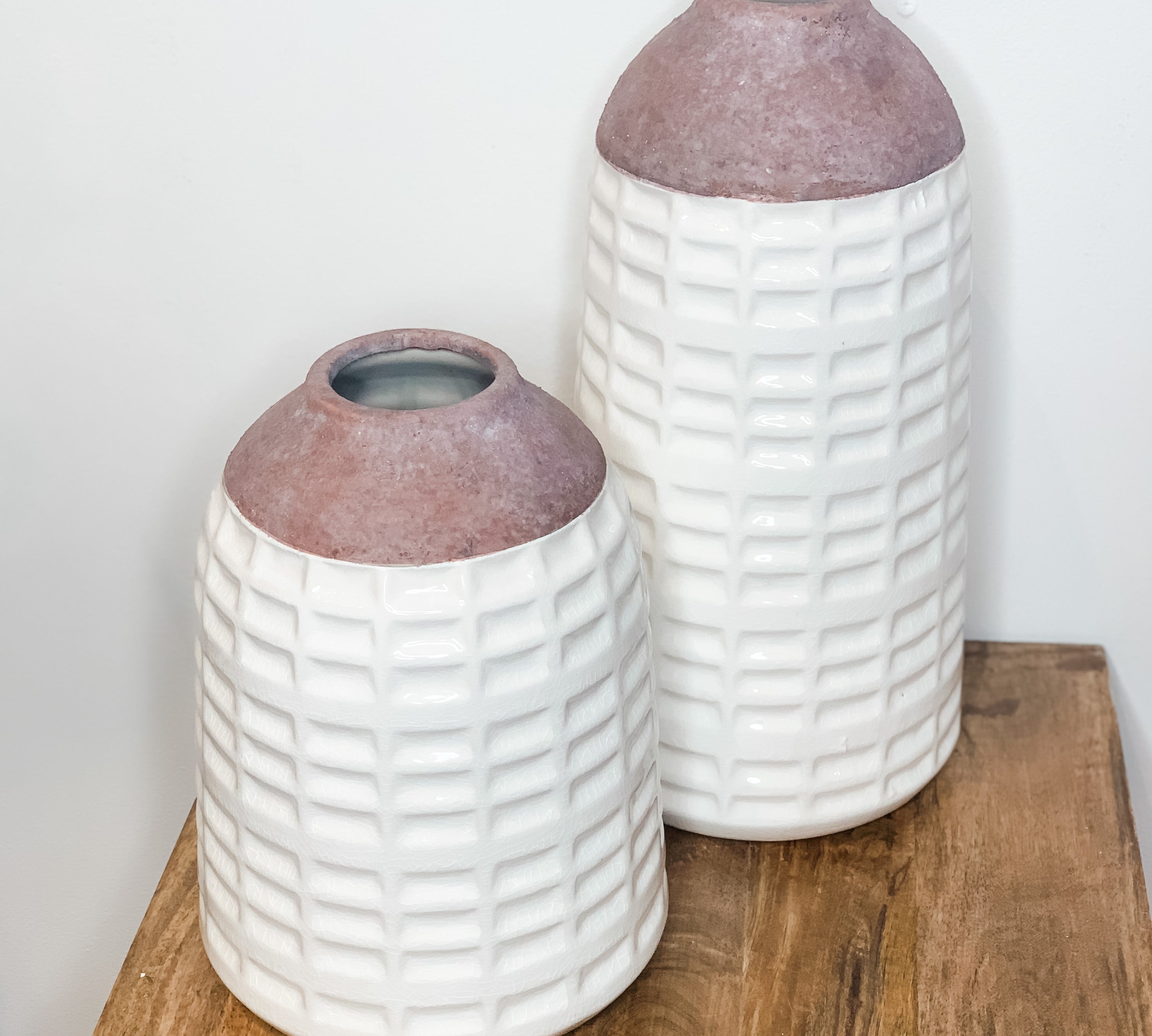 White Glazed Stoneware Pots w/ Unglazed Rim