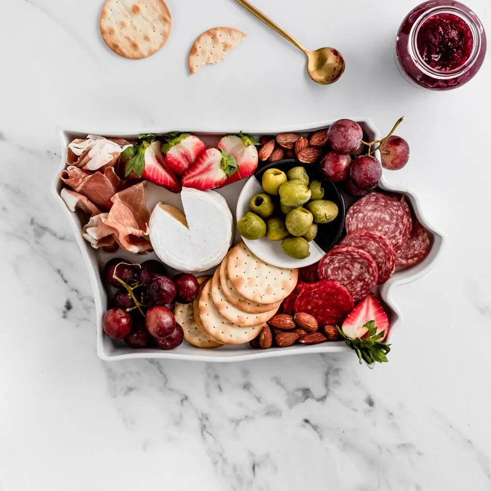 Bring your love of Iowa into the kitchen and serve up state-shaped casseroles, dips, entrees, appetizers, pies, cakes, favorite holiday dishes, family recipes, and more. Crafted in high-fire porcelain and sealed with glossy white glaze for a non-stick surface, this Iowa-shaped bakeware is free of all lead and toxins which means it's safe for food use in the oven, microwave, and dishwasher. The underside is fully glazed as well with the Lark ware-stamp stating this product is ‘Designed in Detroit, USA’.  Part of our Flagship Collection, The Fifty United Plates®, it’s a tribute to the people and places we all hold dear.  Whether you’re near or far, the Iowa State Plate takes you home; celebrating meals, milestones, and game days at a time when a home has never been more important. For the Iowan in all of us, so you can bake, serve, gift, and style with Iowa Pride. Dimensions:  12.125" x 7.75" x 1.5"