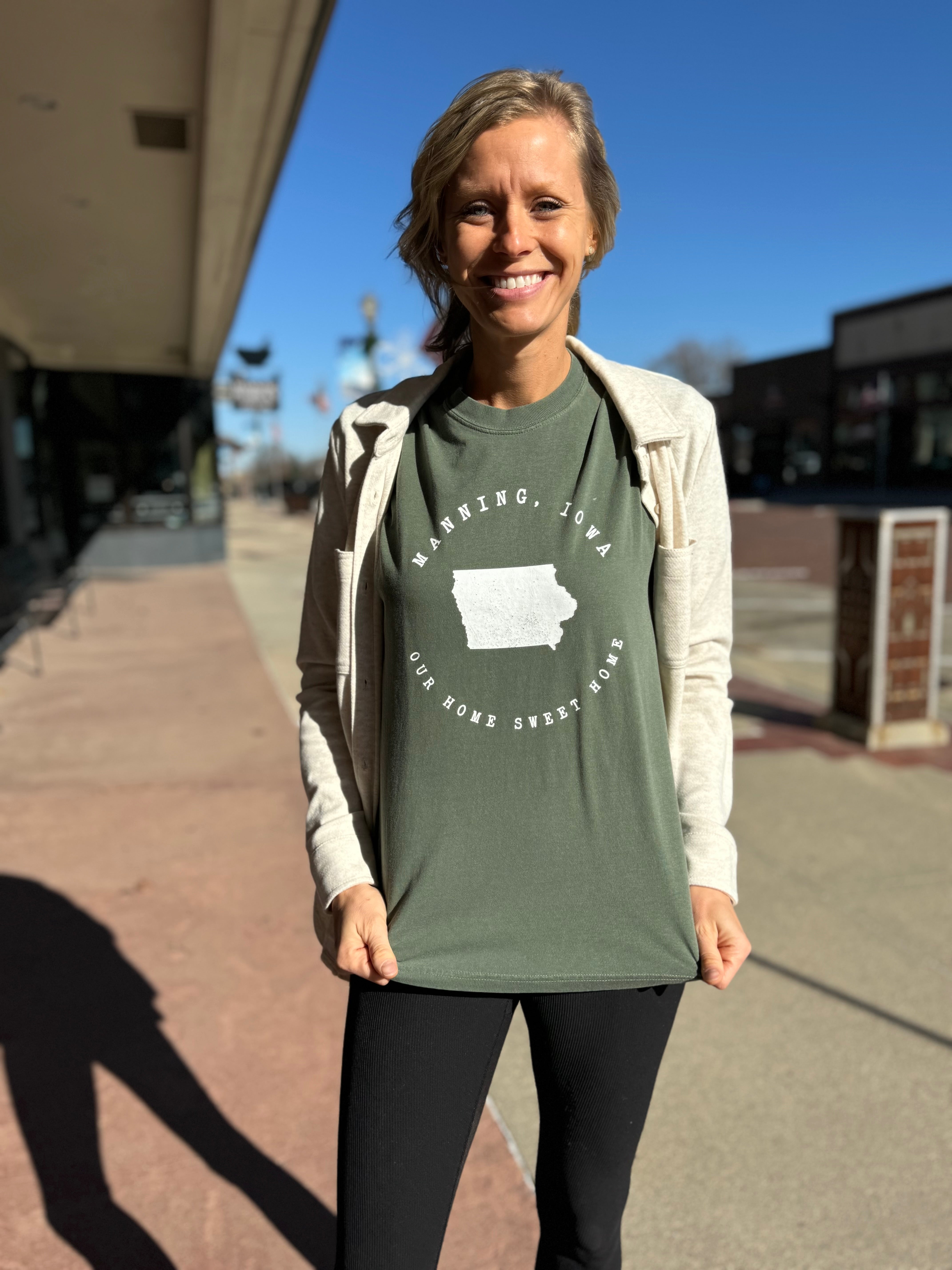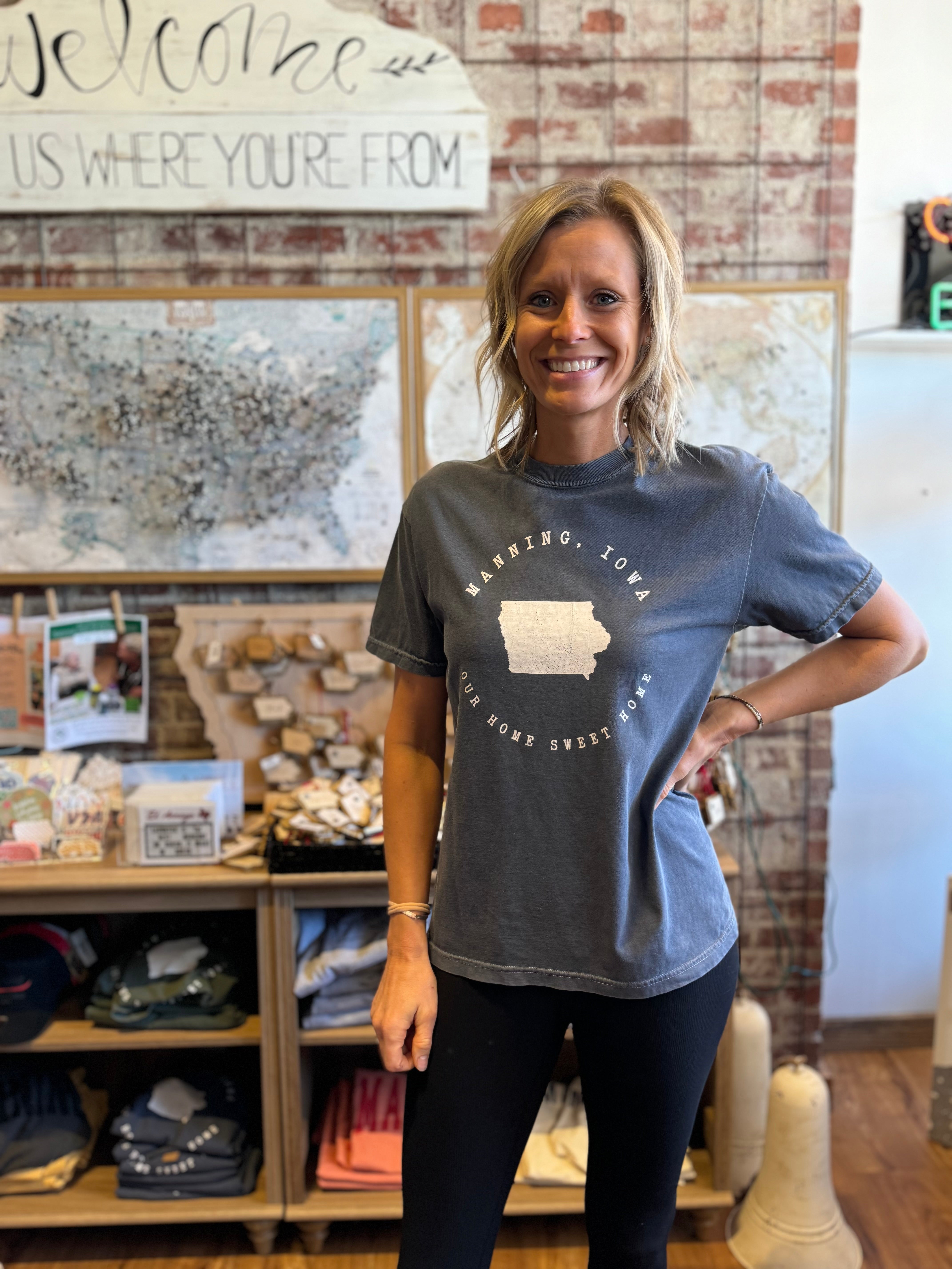 Experience the Midwestern charm with our Manning Iowa Graphic Tee. Show off your love for this charming town with this comfortable and stylish tee. Made with high-quality materials, this tee is perfect for anyone looking for a trendy and unique addition to their wardrobe.