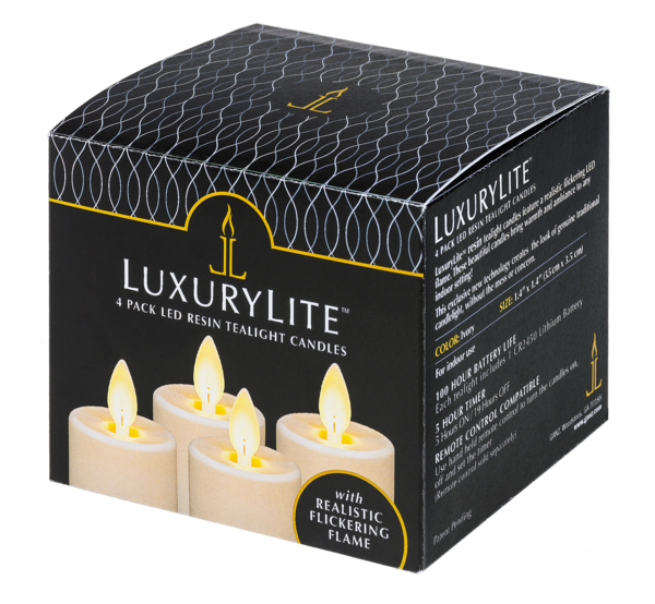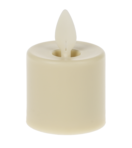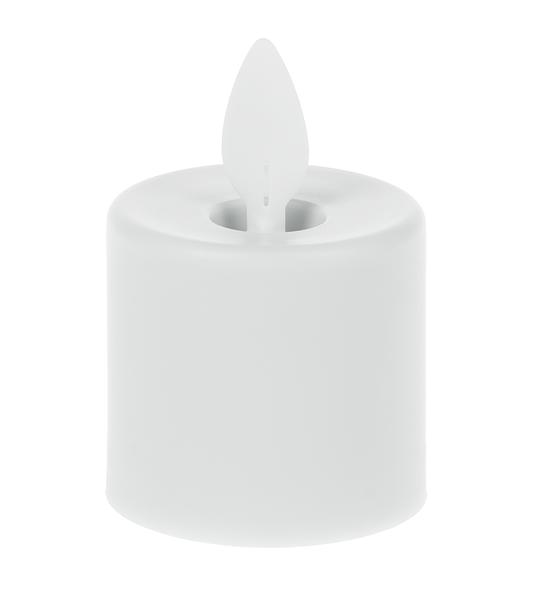 This set of 4 water resistant LED tea lights features a realistic moving flame design, perfect for creating a realistic home ambiance. The tea light candles flicker and move for an authentic look and are made of a durable waterproof material for long-lasting use.