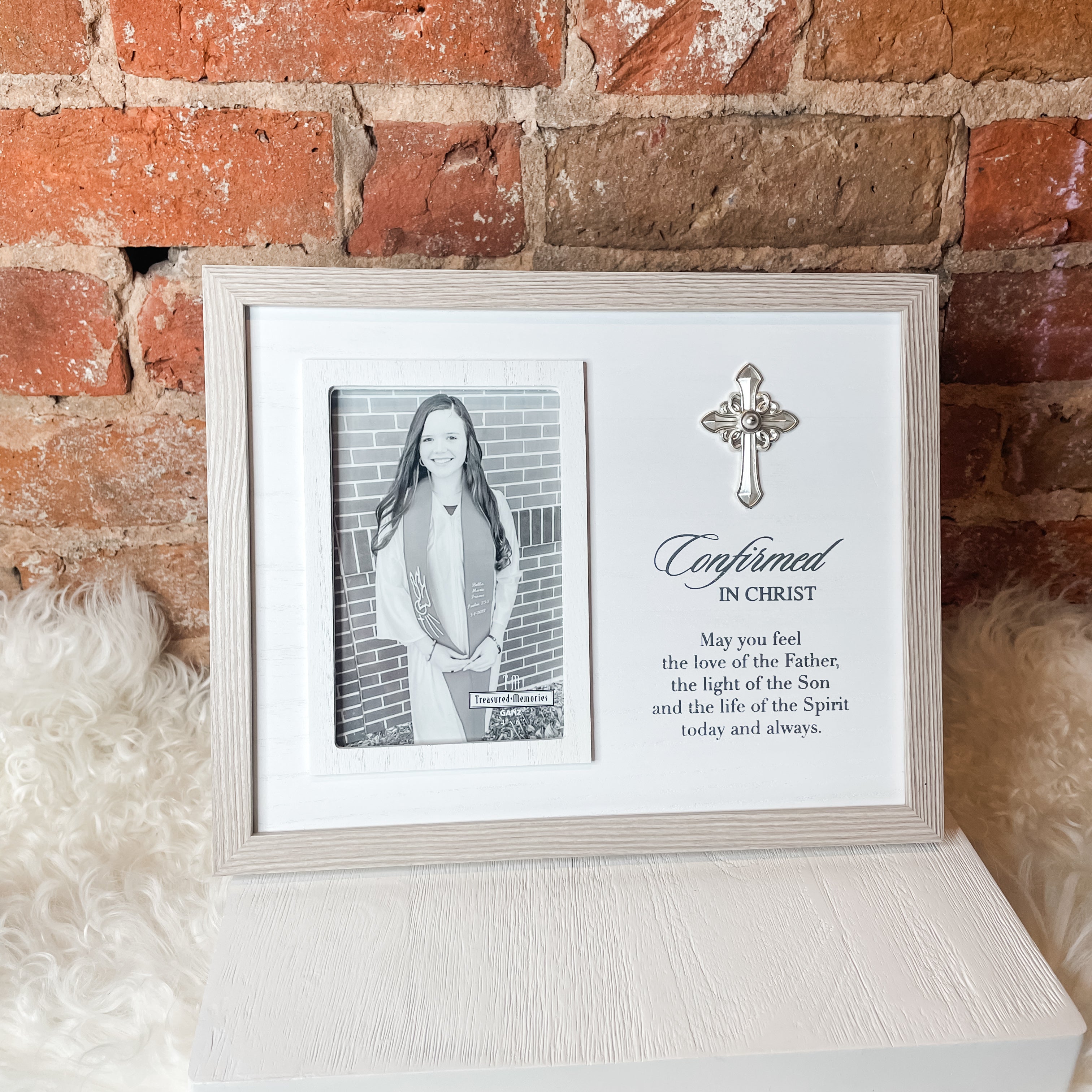 Celebrate your loved one's Confirmation with our beautiful frame. Made to hold a 4x6 photo, the frame features a classic design and "Confirmation in Christ" inscription. Honor their faith journey and display this special moment for years to come.