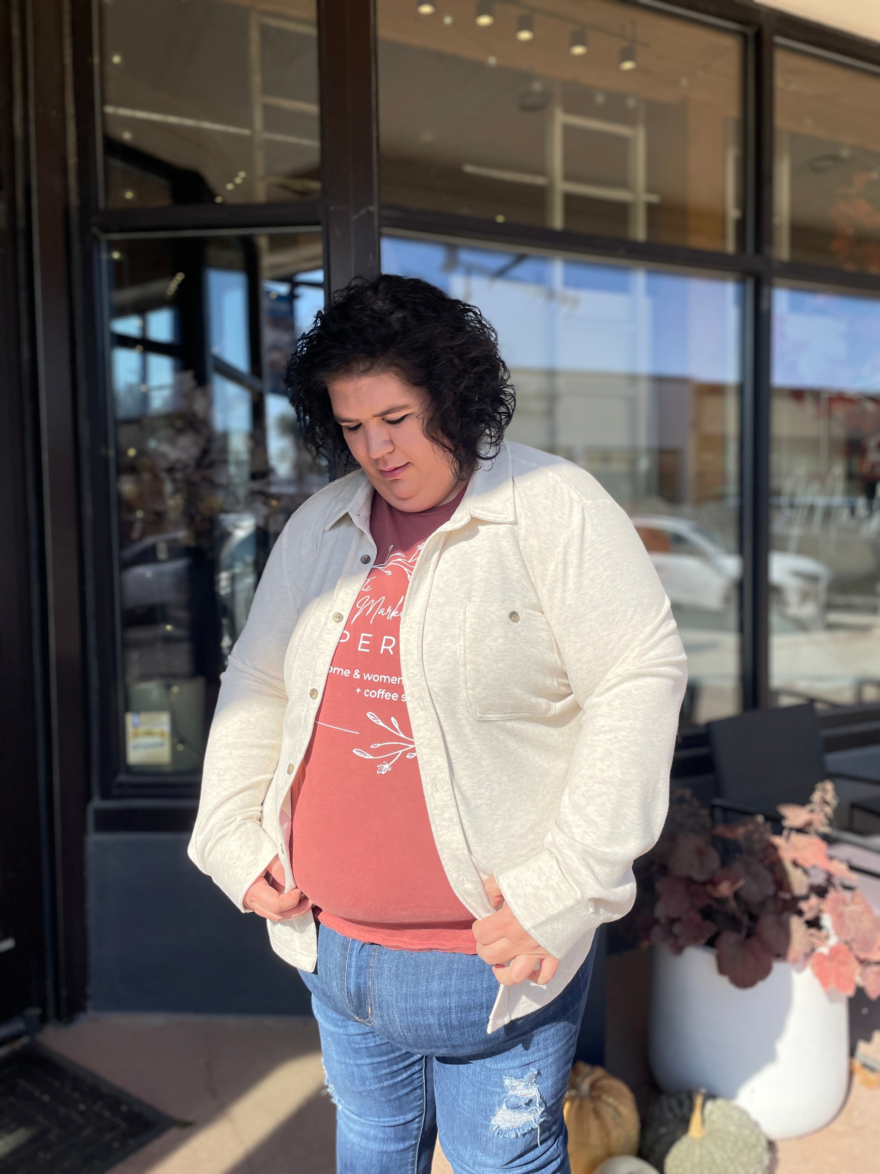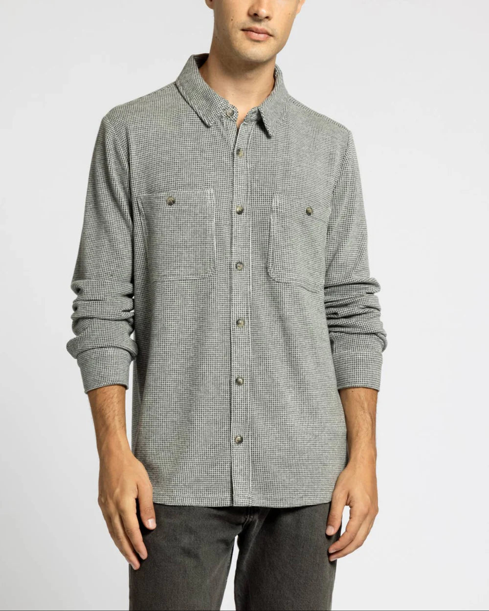 Our Clark top is the men's cut of the popular women's Lewis shirt by Thread & Supply Co. With a straighter hem across the bottom, darker buttons, and expanded sizing options, this men's lighter to mid weight button up comes in multiple colors but the same soft and stretchy amazing fabric. Can be worn as shirt or light jacket and easy to layer. Relaxed fit, double chest pockets, and soft comfortable fabric.