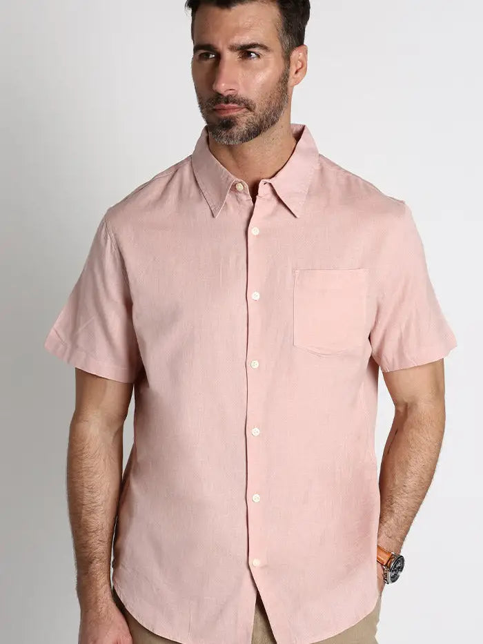 Crisp cotton meets casual cool with this men's short sleeve button-down shirt. Perfect for layering or going solo, it's got that effortless vibe that works whether you're heading to brunch or keeping it chill on the weekend. The classic collar and breathable fabric mean you'll stay comfortable all day long. Simple, sharp, and ready for anything.