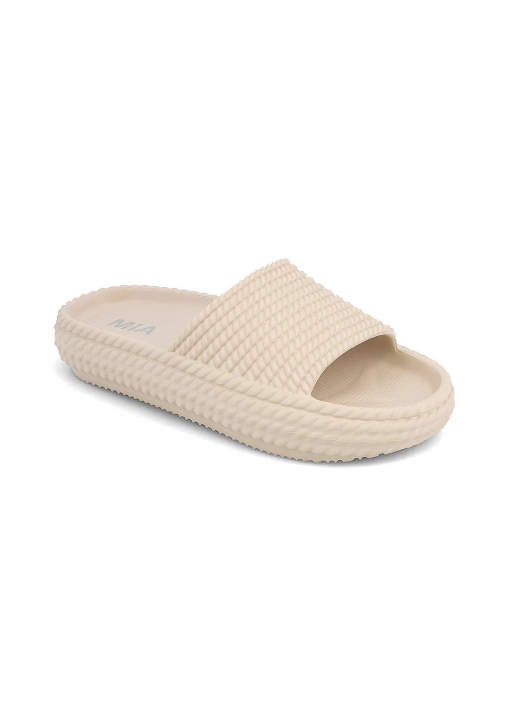 The LUVLY is here for your poolside adventures. This sandal is crafted with a thick rubber sole and thick strap across the foot. Waterproof and made for all day wear.