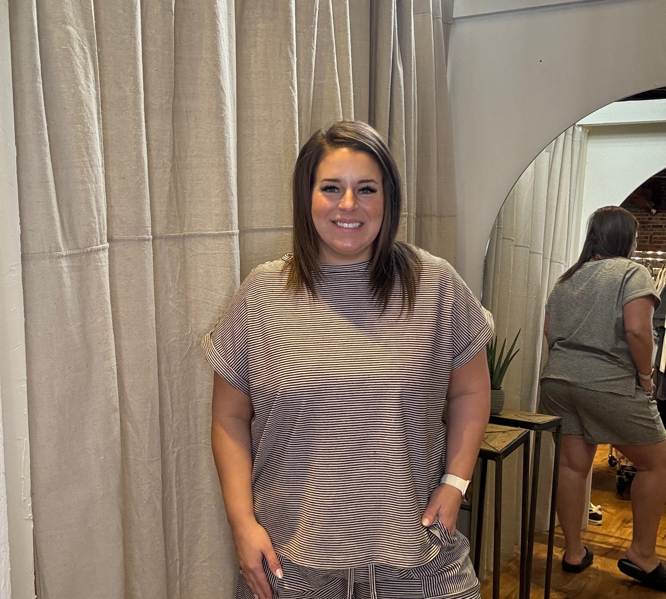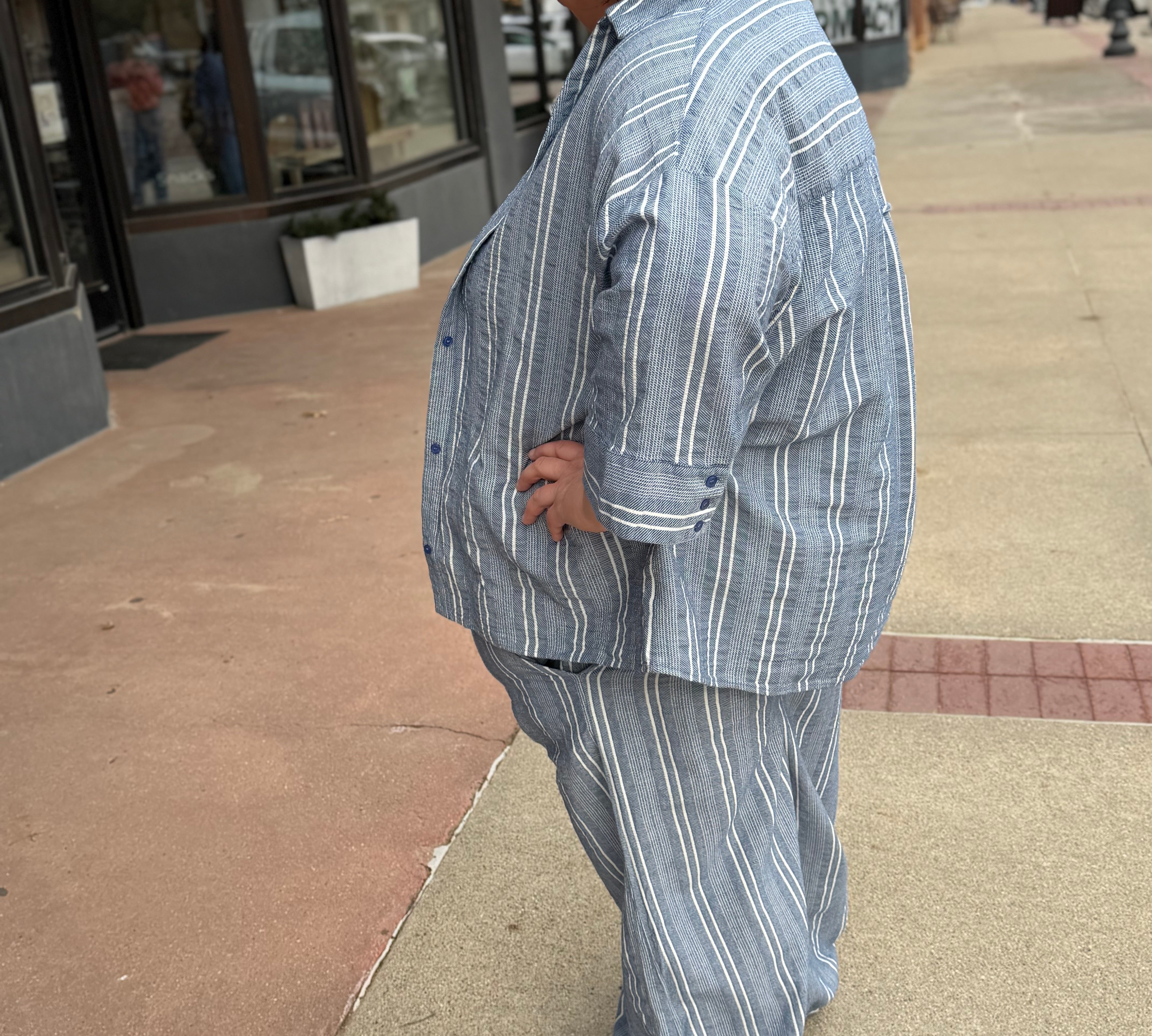 Plus Striped Linen Wide Banded Pants