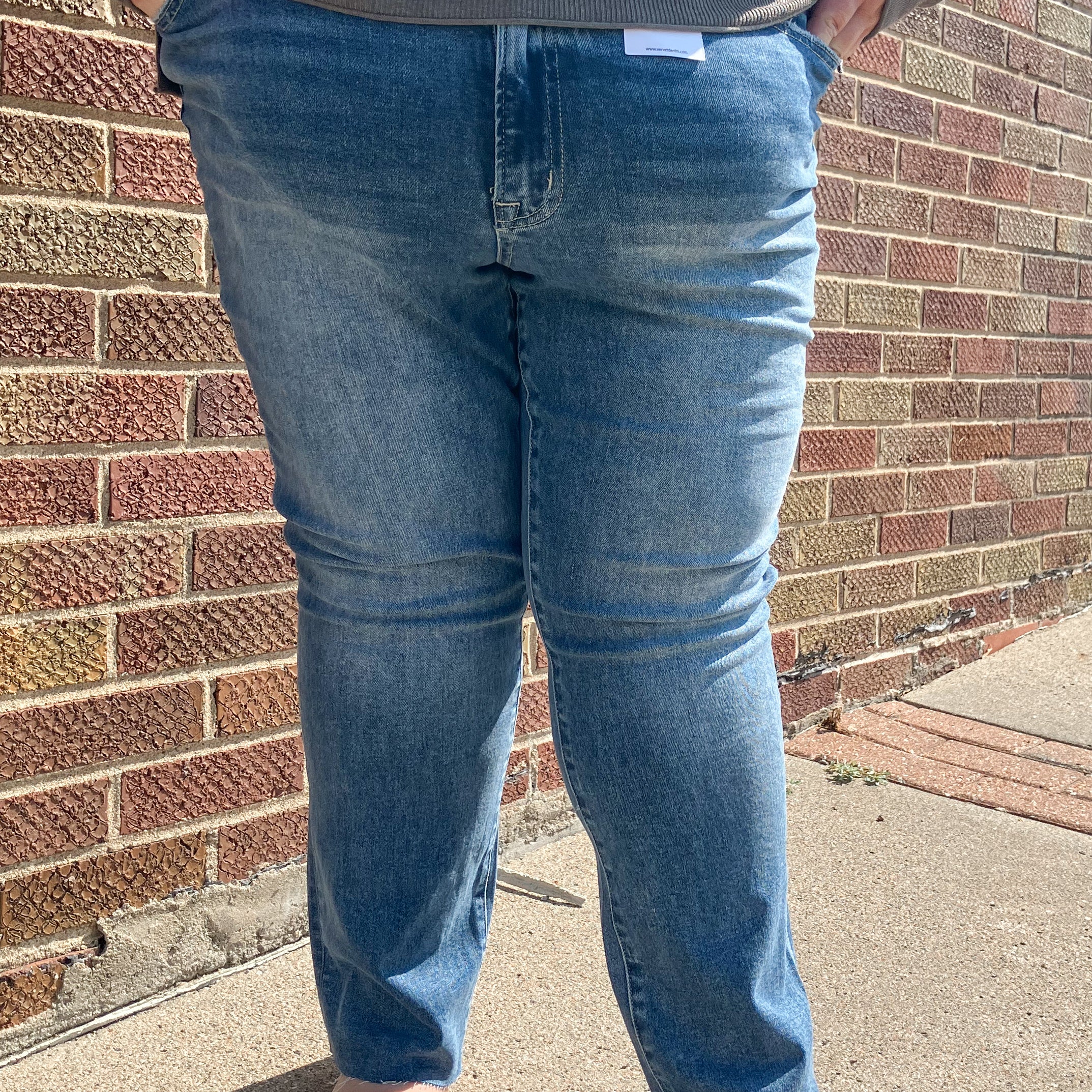 These Plus Carlene Midrise Crop Vervet Jeans provide a flattering midrise fit and trendy cropped length. Made by Vervet, a trusted brand known for quality denim, these jeans offer both style and comfort. Perfect for any occasion, these jeans are a wardrobe must-have for any plus-size fashionista.
