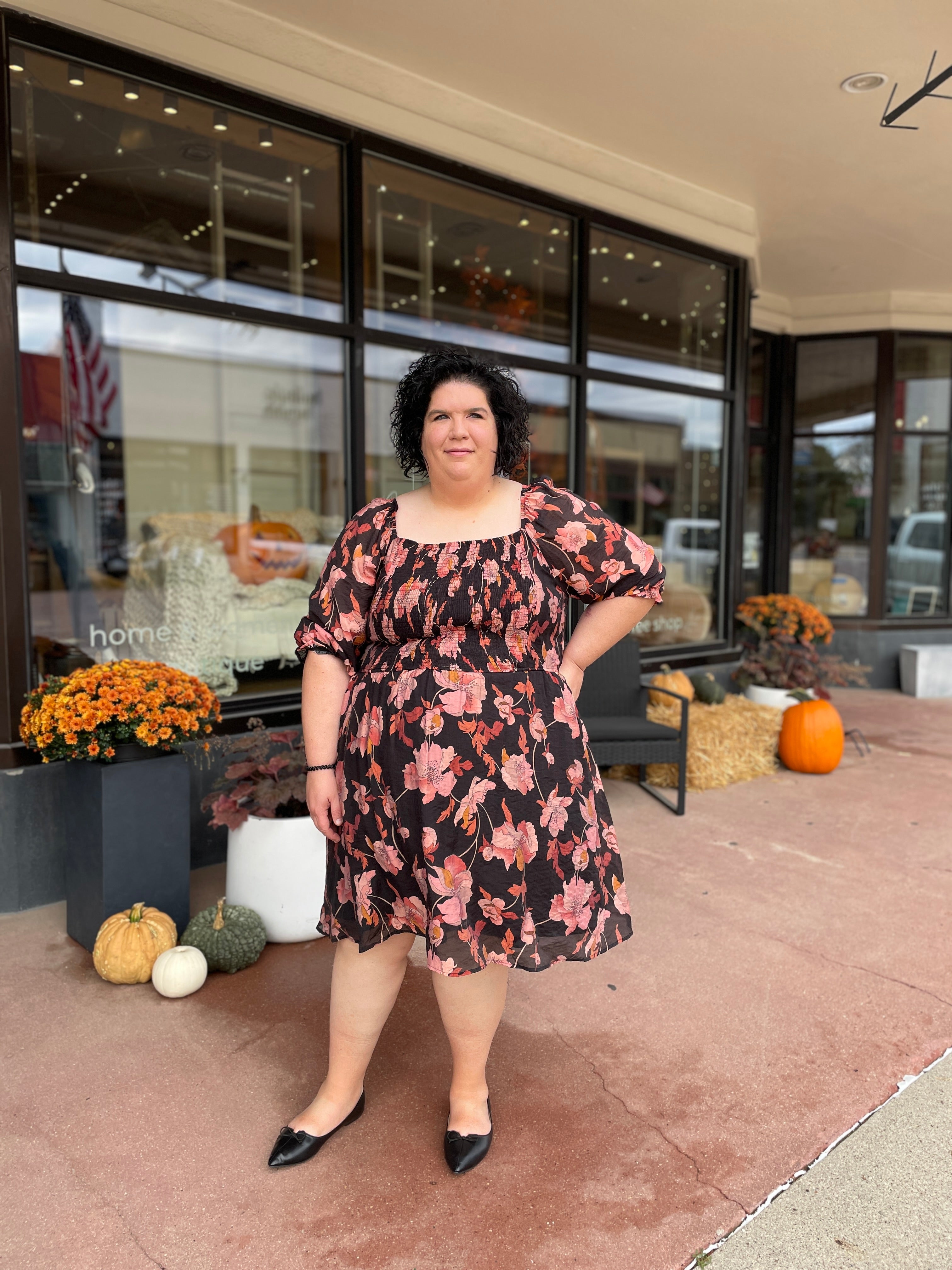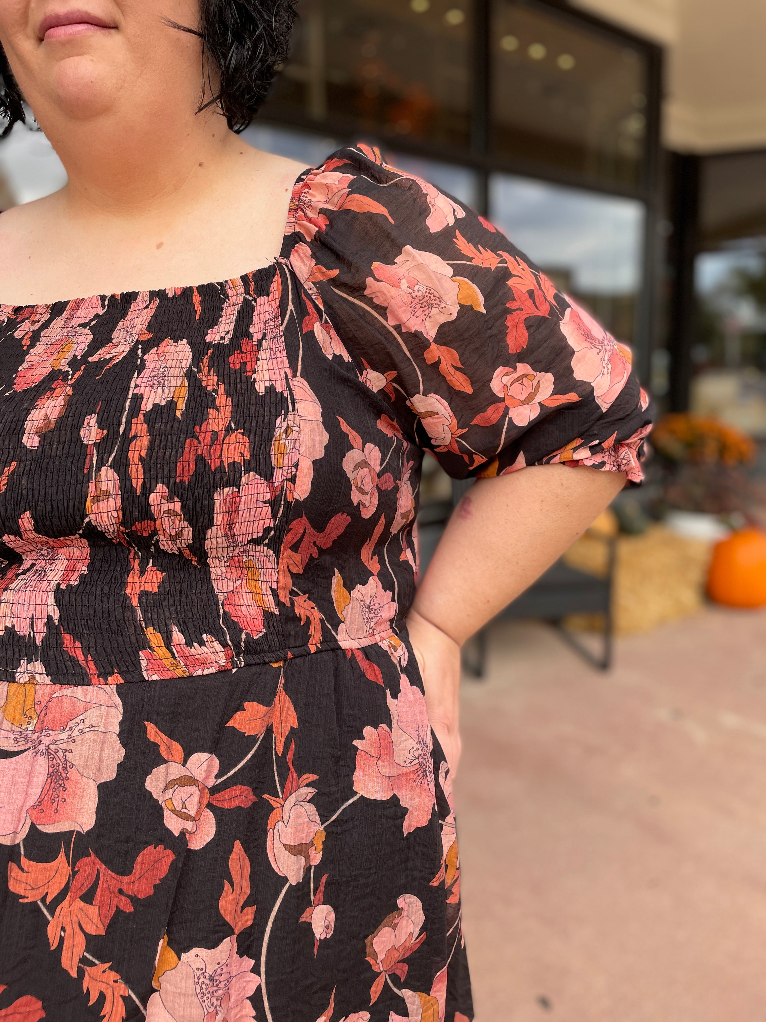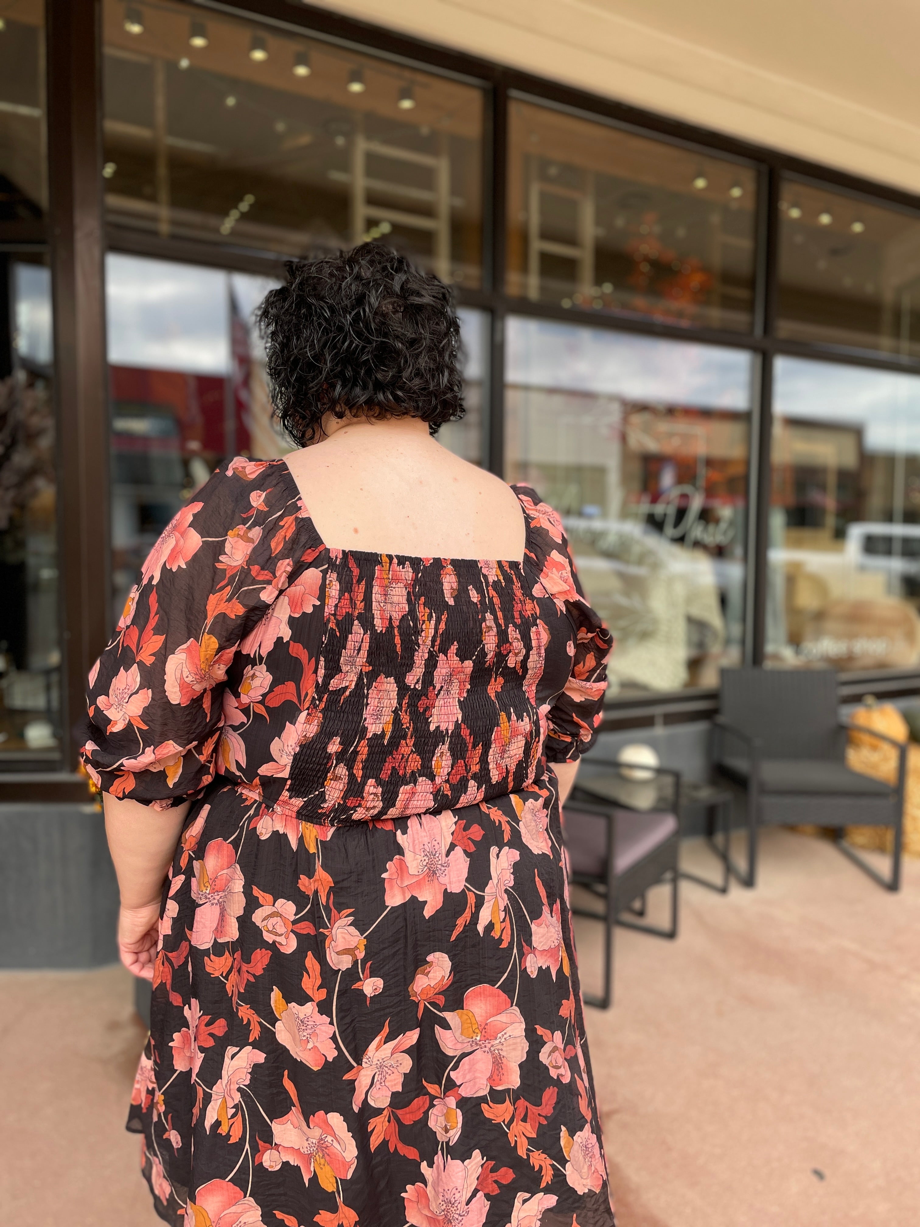 Plus Floral Print Smocked Square Neck Dress, with a square cut neckline and cuff sleeve. Elevate your wardrobe with our Plus Floral Print Smocked Dress. Designed to flatter and enhance your curves, this dress features a beautiful floral print and smocked details that provide both comfort and style. Show off your unique sense of fashion with this must-have piece for any occasion.