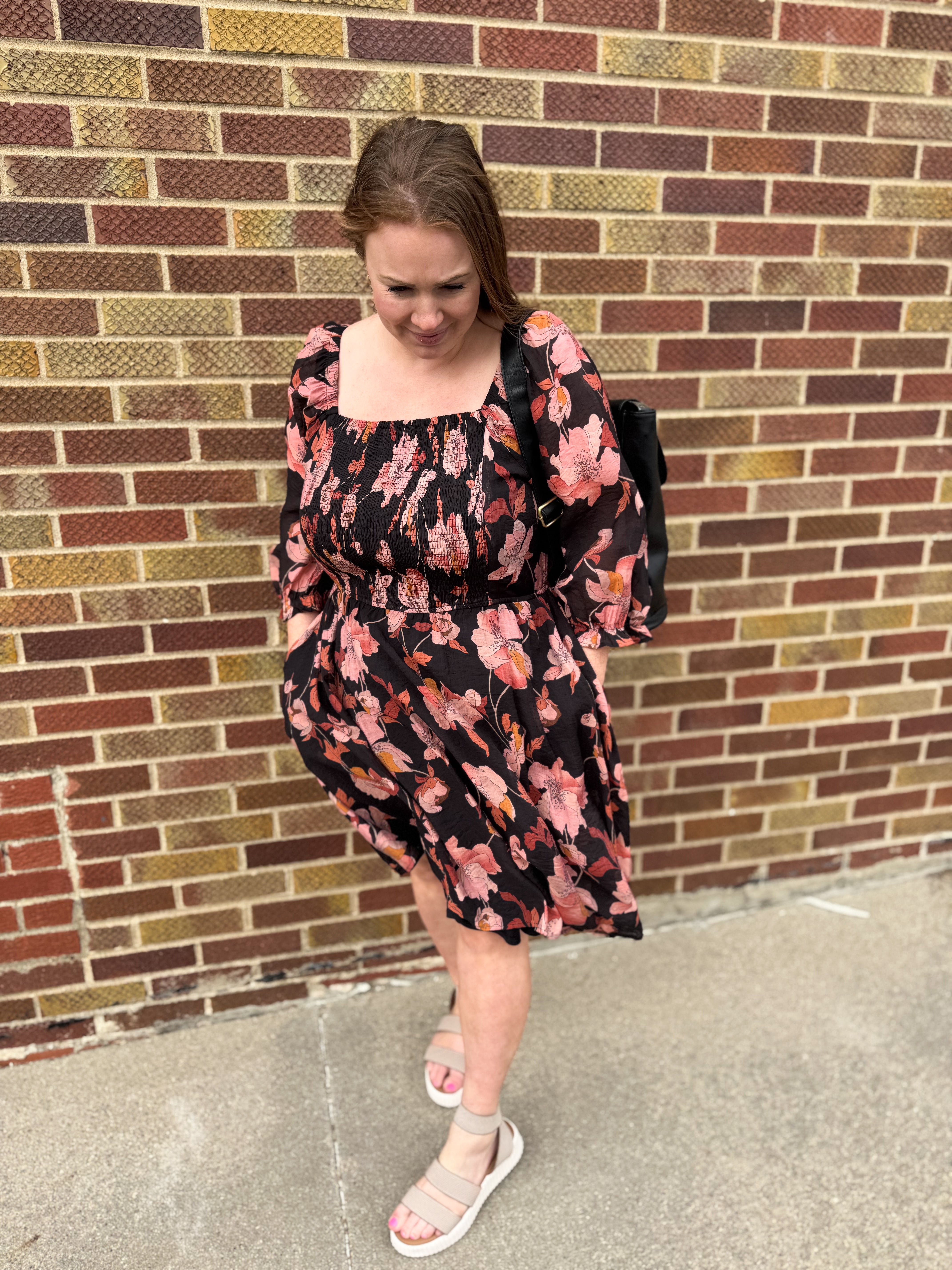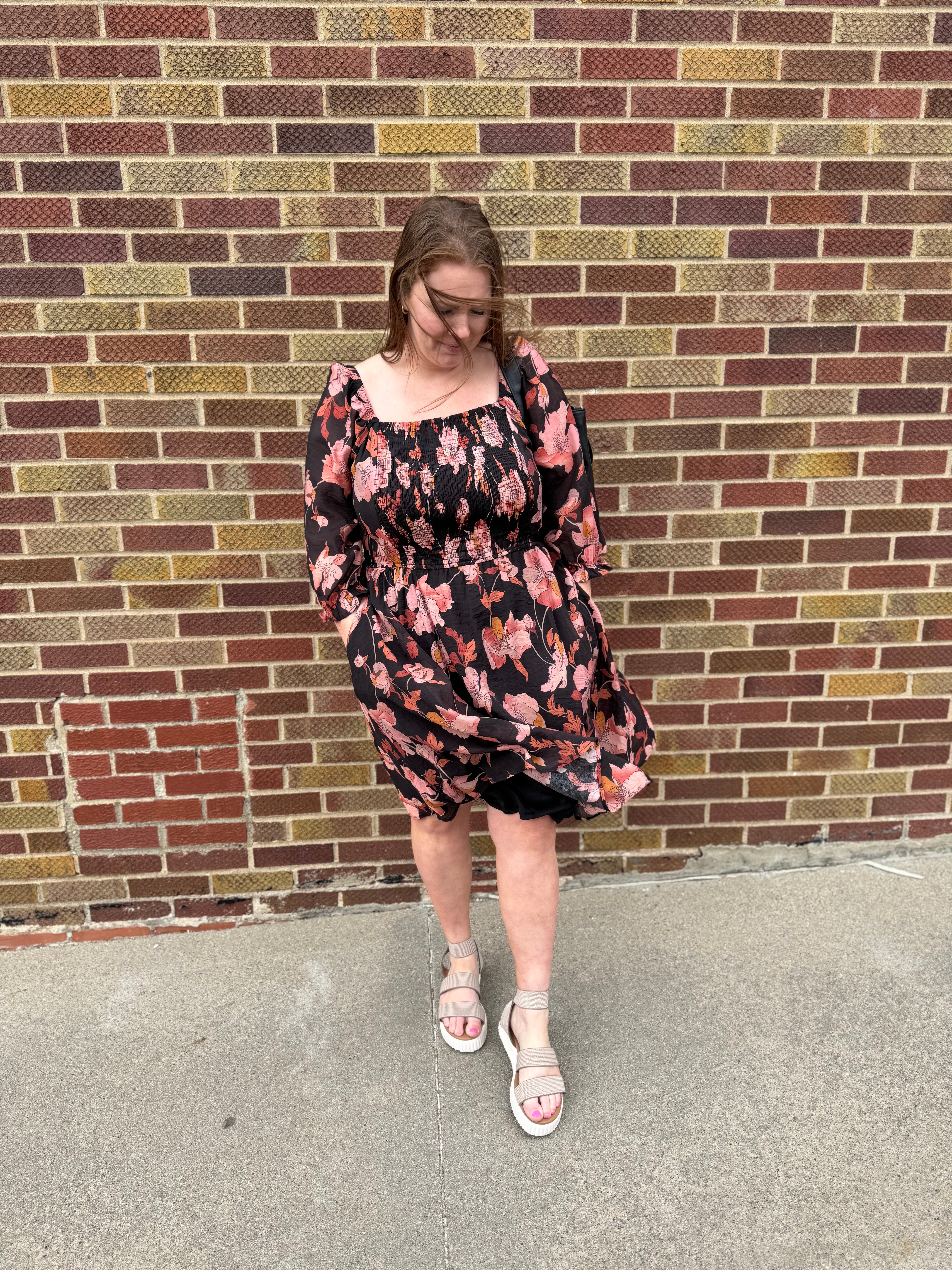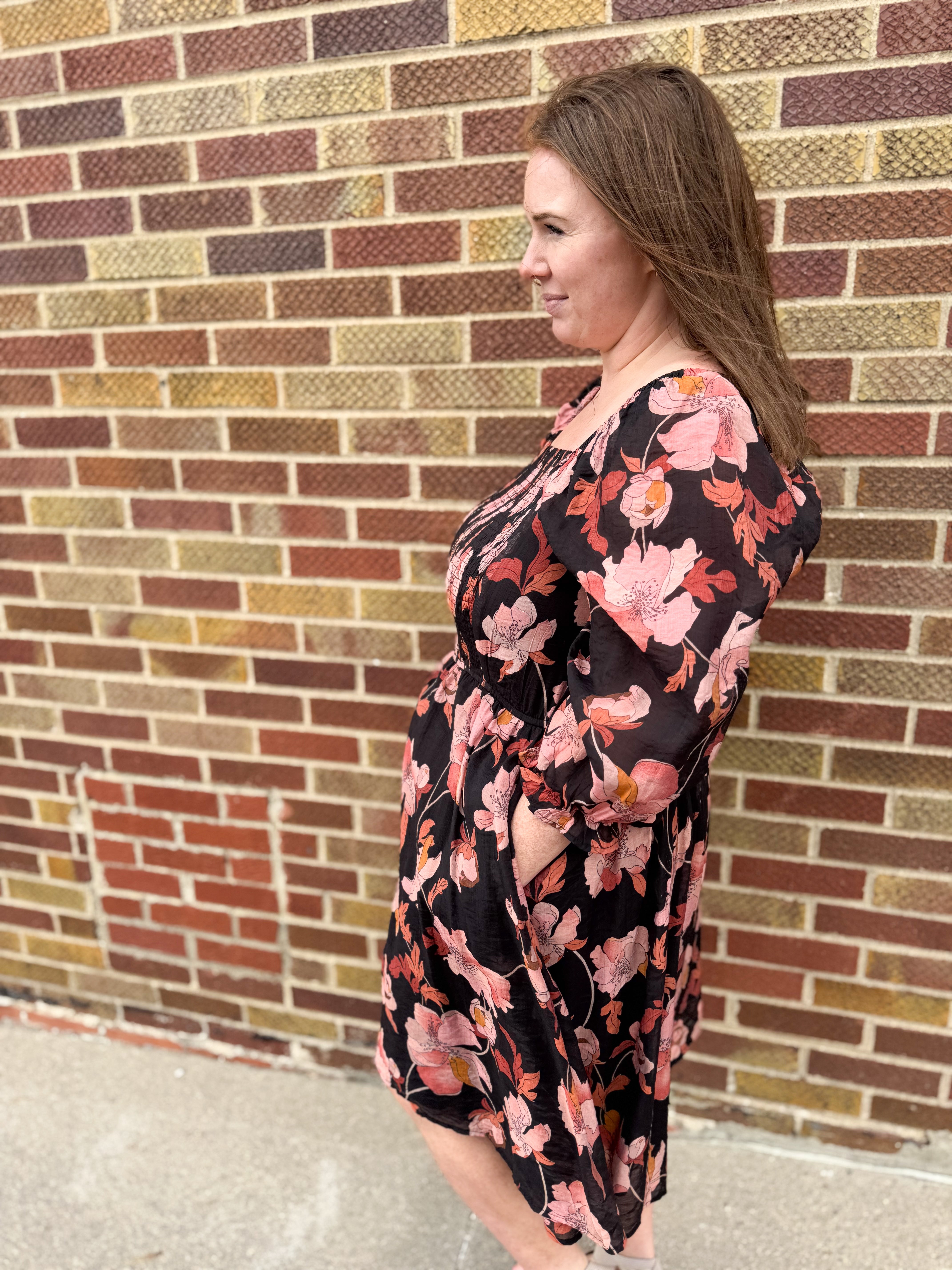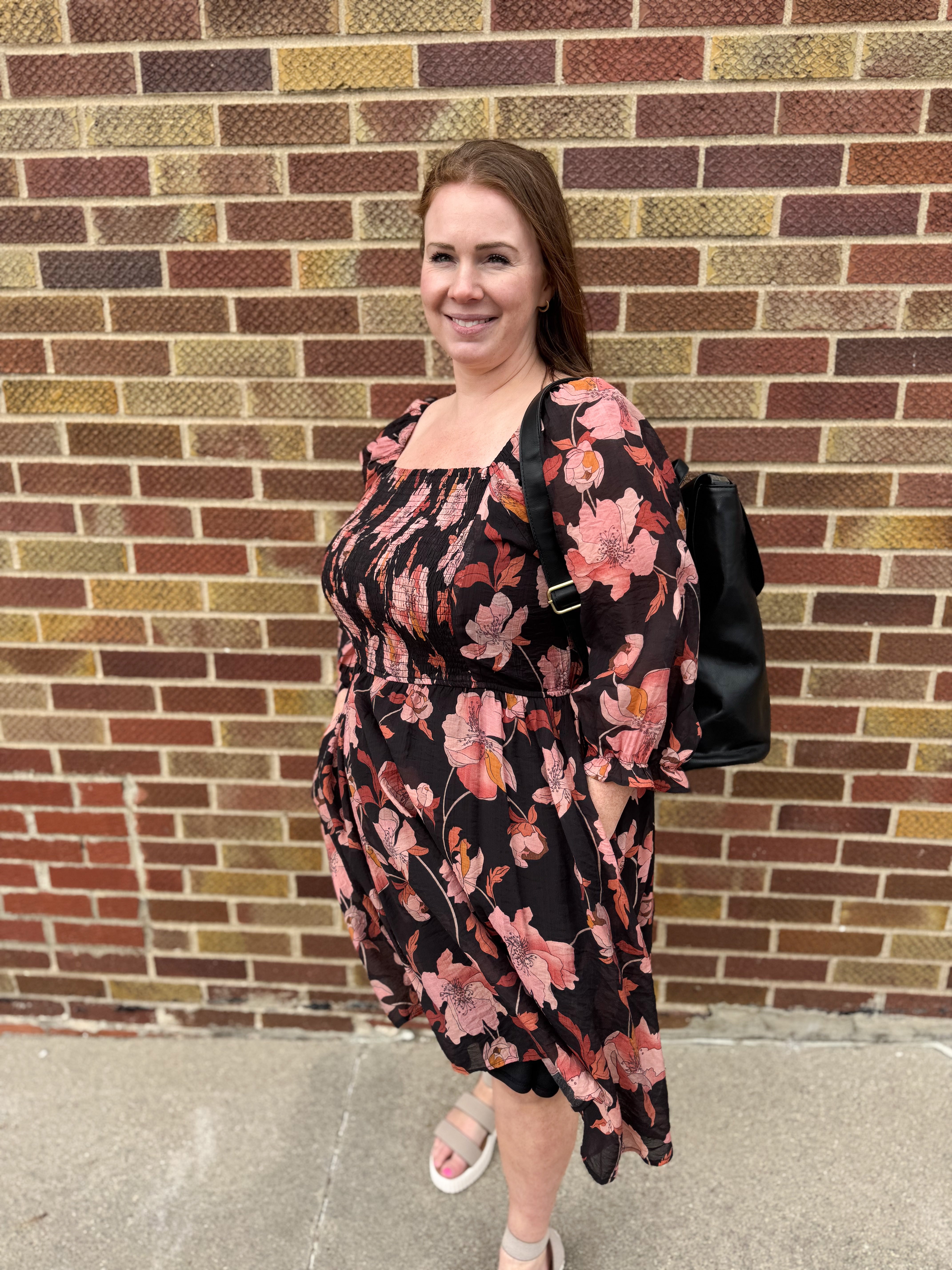 Plus Floral Print Smocked Square Neck Dress, with a square cut neckline and cuff sleeve. Elevate your wardrobe with our Plus Floral Print Smocked Dress. Designed to flatter and enhance your curves, this dress features a beautiful floral print and smocked details that provide both comfort and style. Show off your unique sense of fashion with this must-have piece for any occasion.