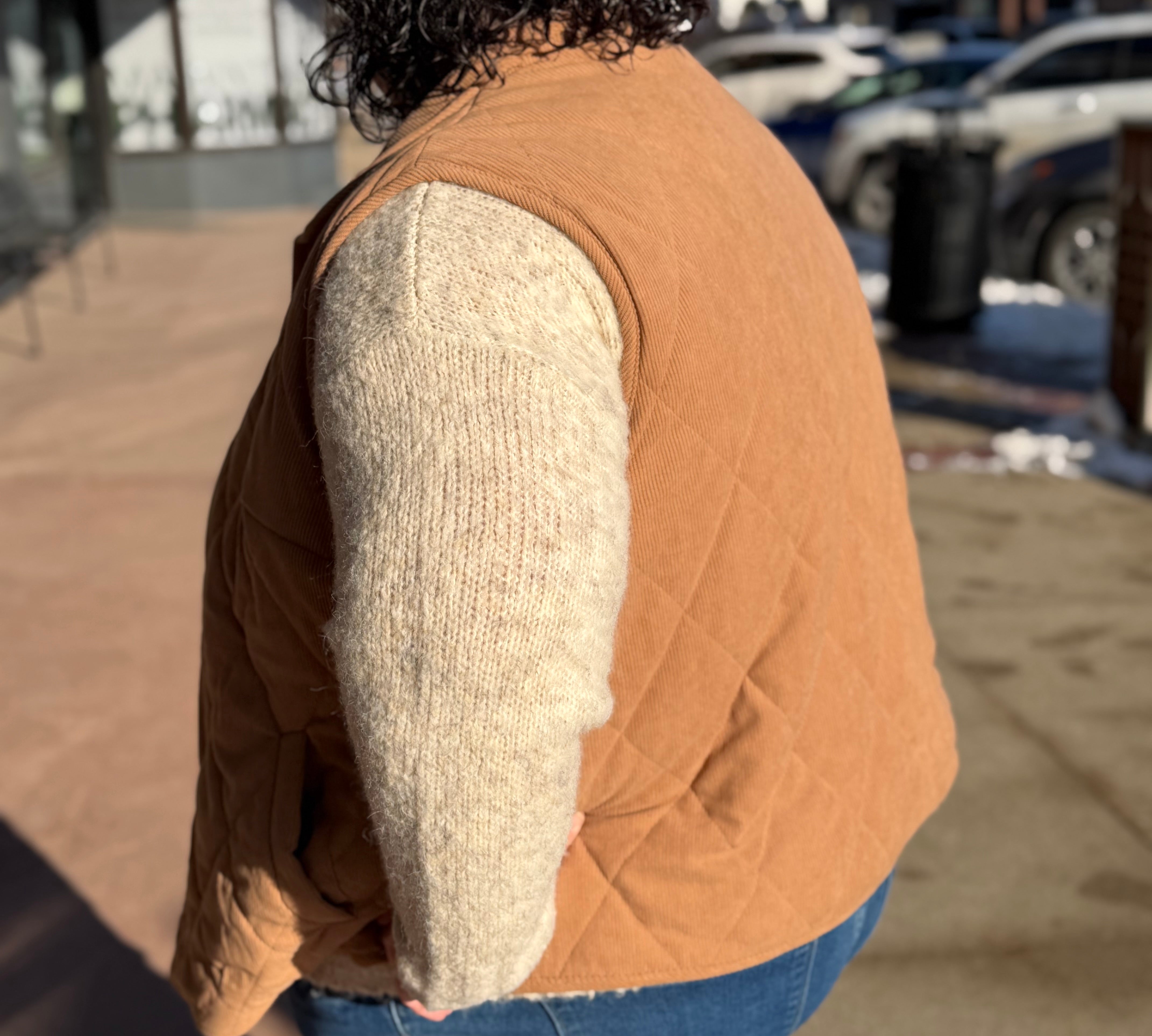 Plus Plaid Jacket w/Teddy Fur Sleeve