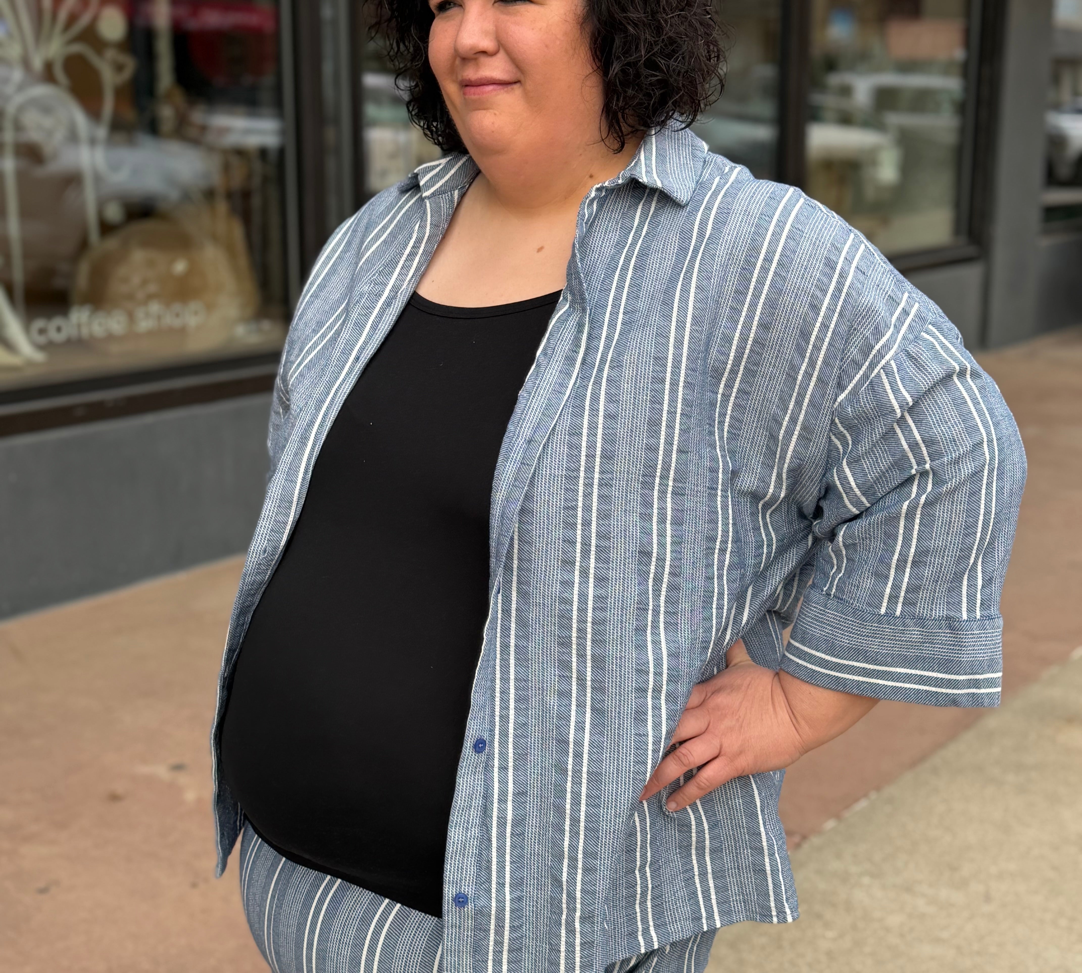 Plus Striped Linen Half Sleeve Top