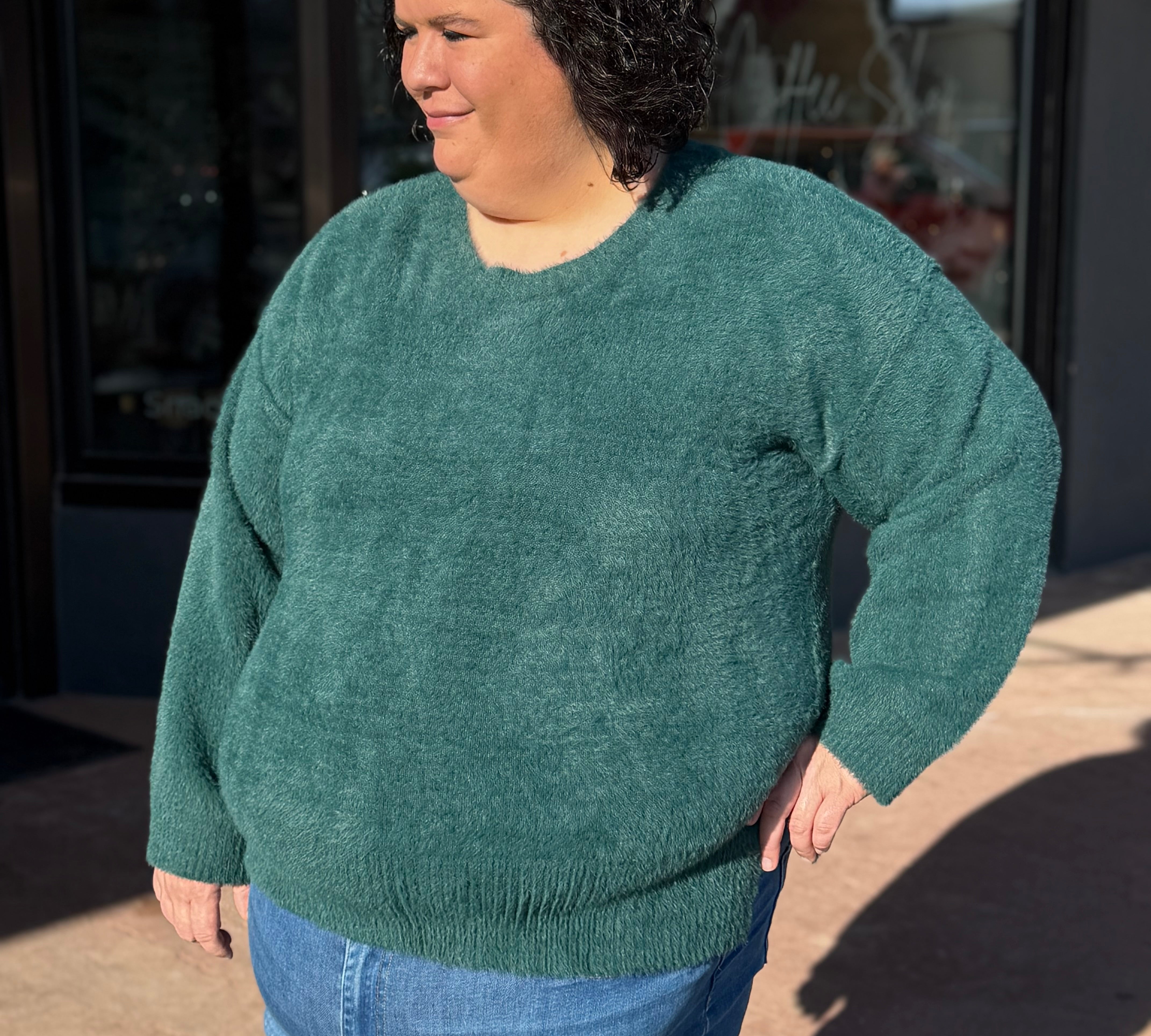 Plus Oversize Fuzzy Sweater w/Side Slit