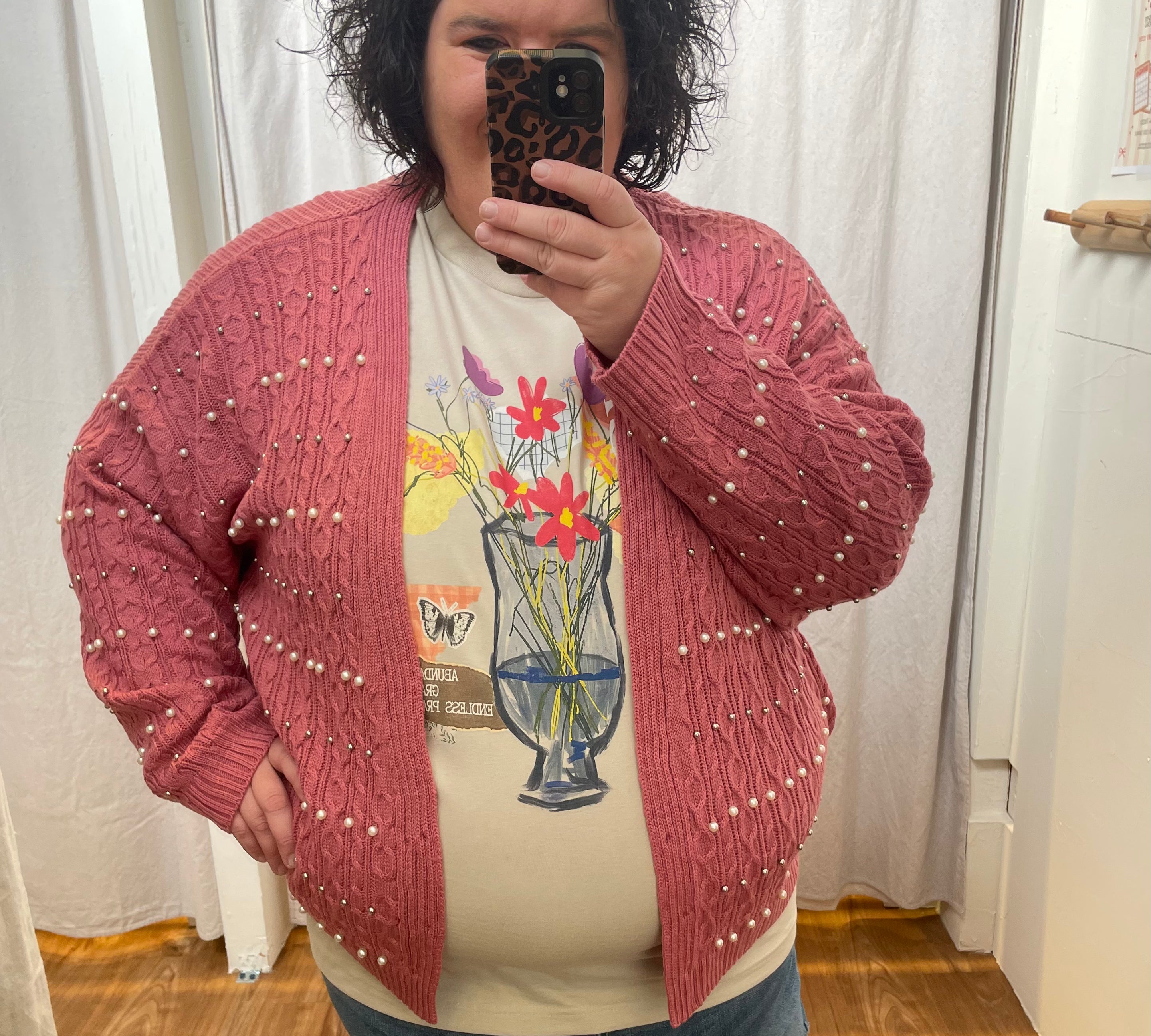 Plus Long Sleeve Cardigan w/Beaded Detail