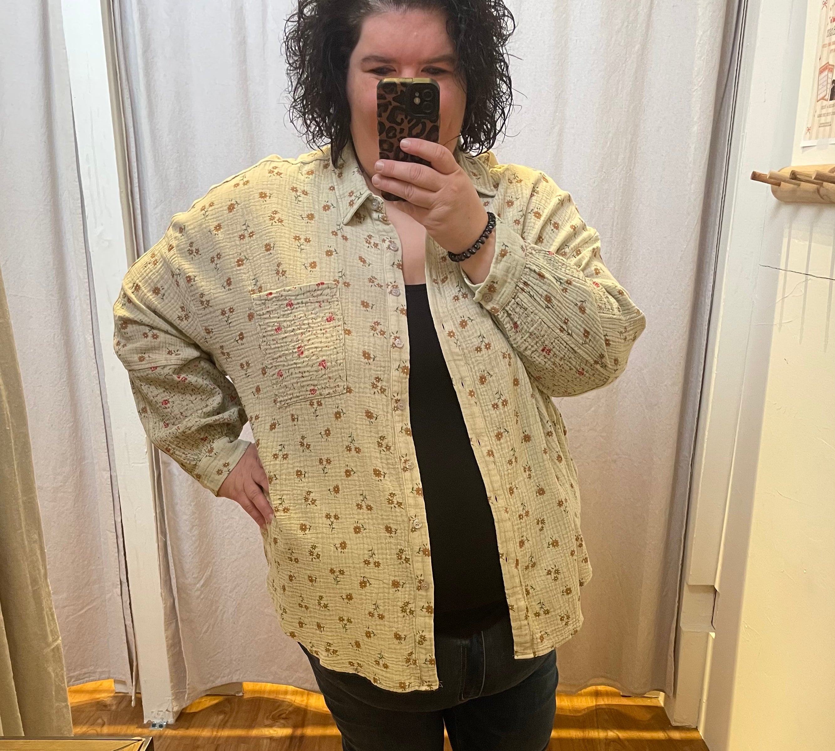 Long Sleeve Metallic Dot Button Down Top