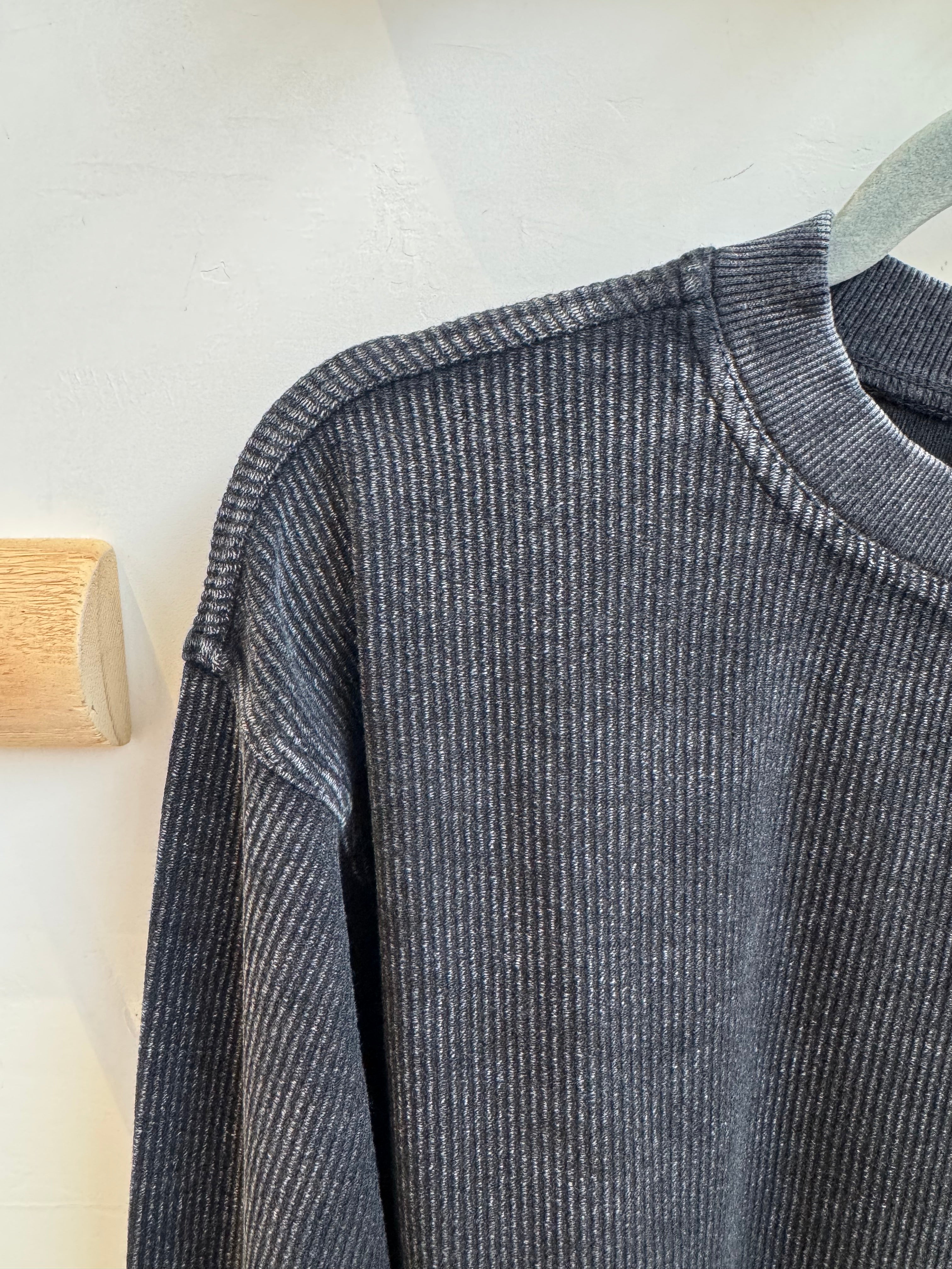 • Classic Details: Ribbed crew neckline, cuffs, and hemline for a polished finish.