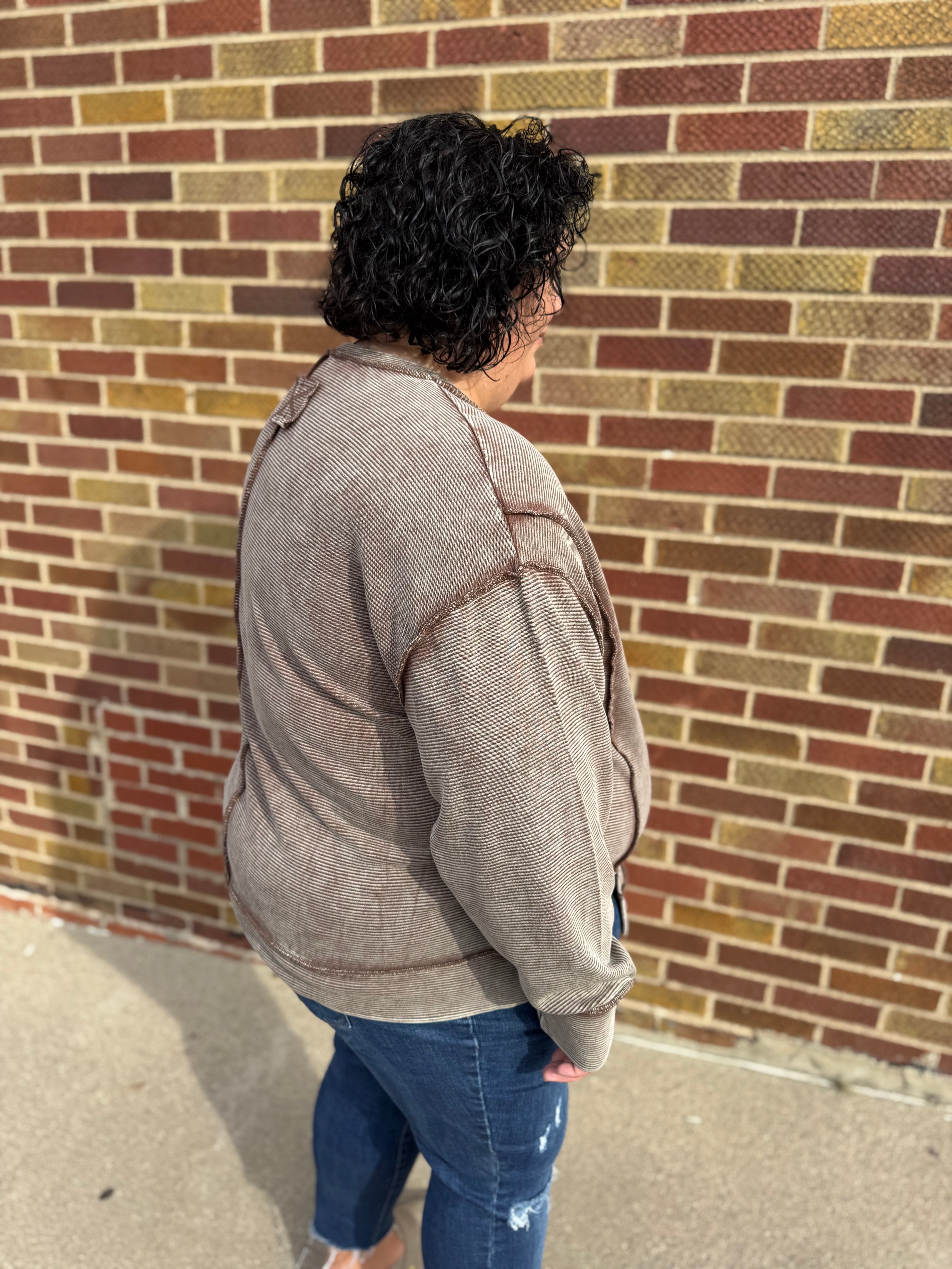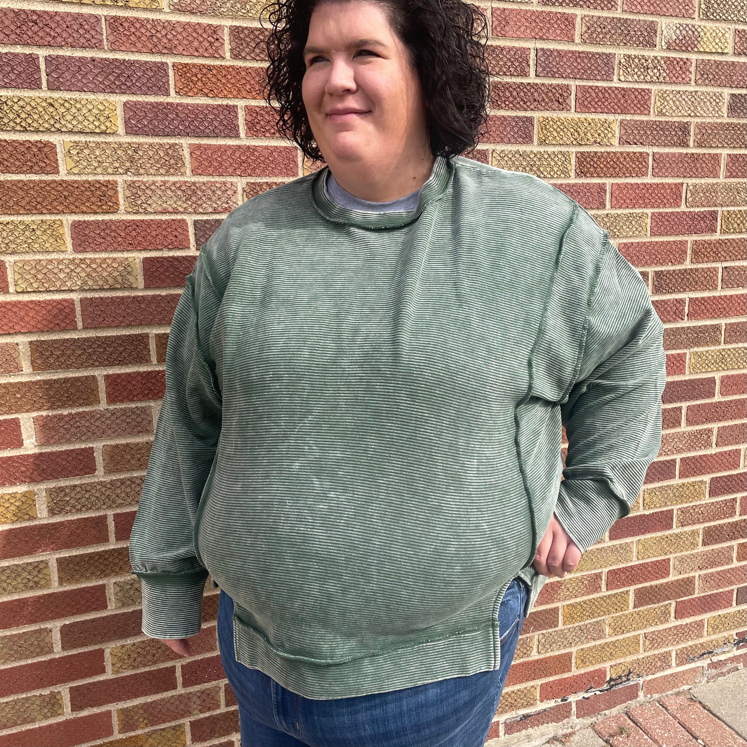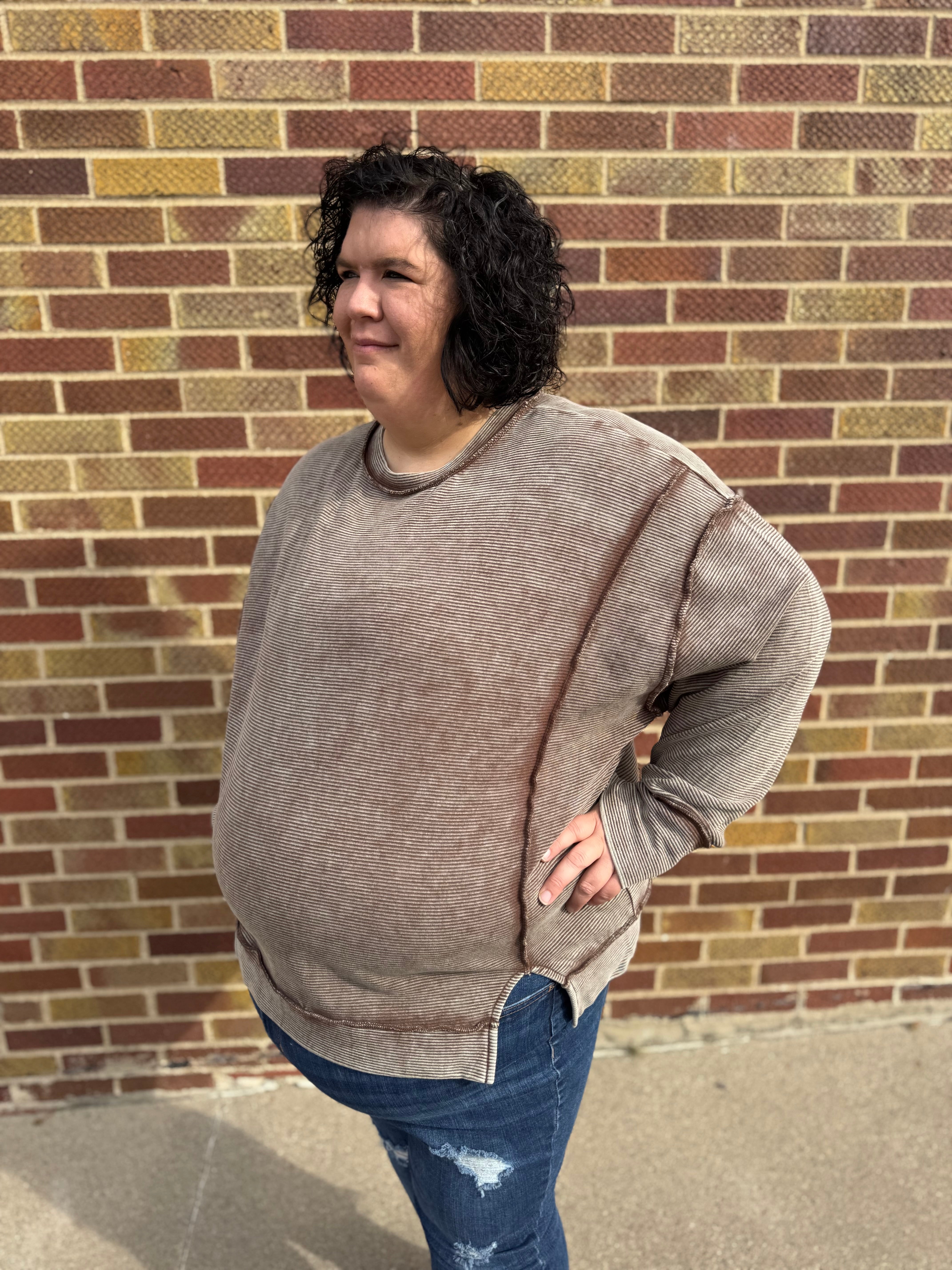 Stay cozy and cool in the Plus Acid Wash Double Ribbed Pullover! Its unique acid wash gives a trendy vintage vibe, while the double ribbed texture adds extra stretch and comfort.