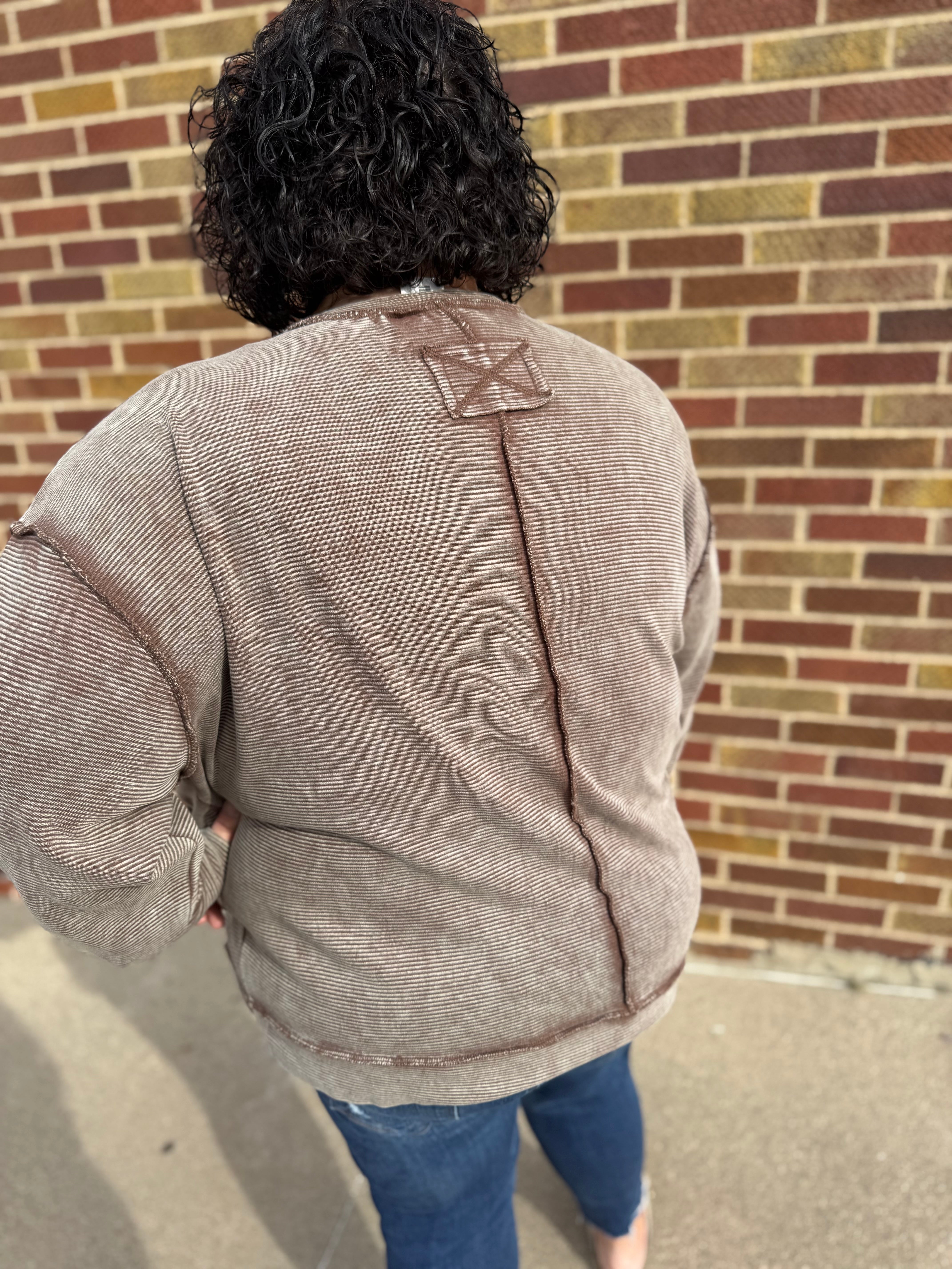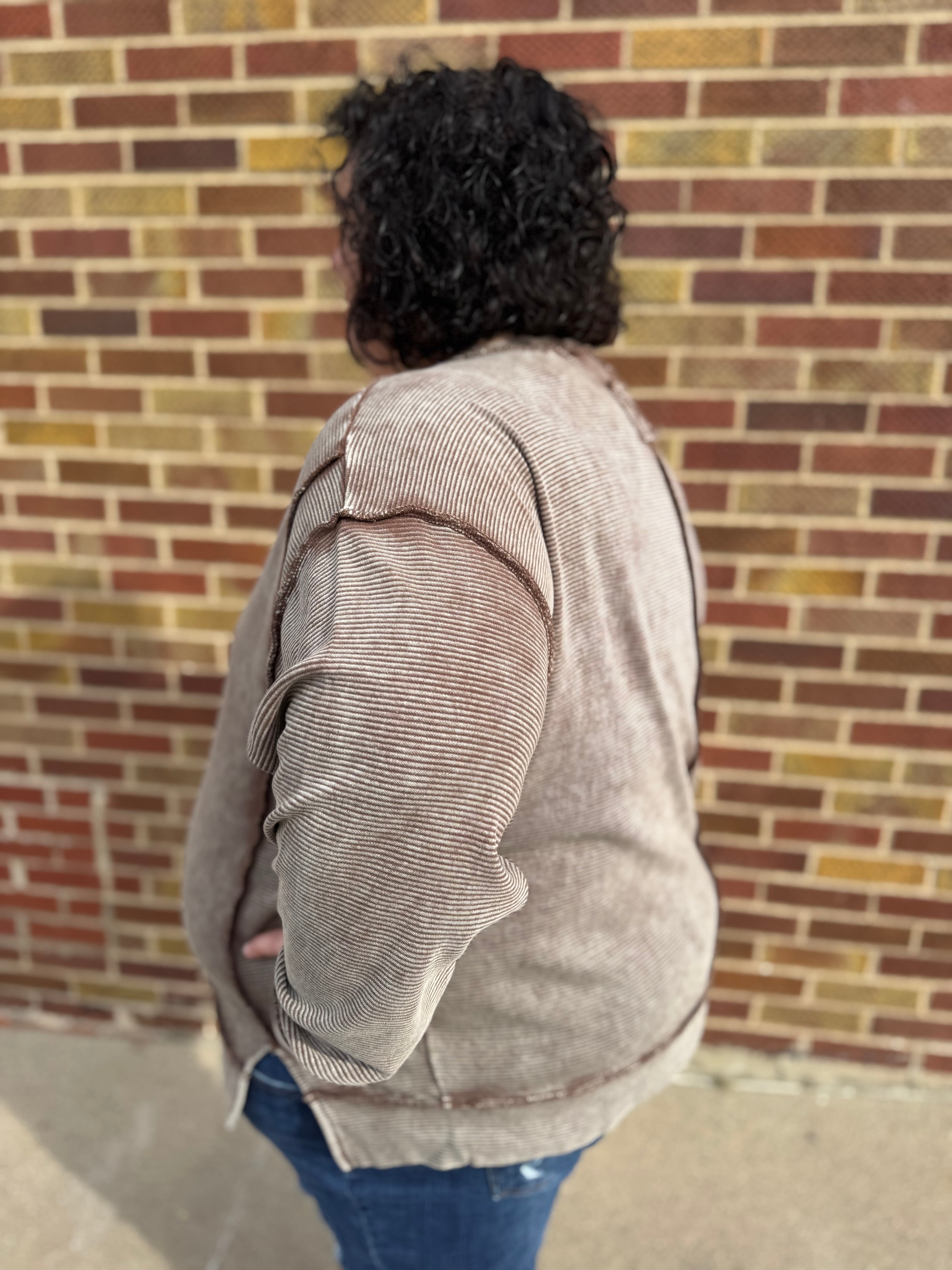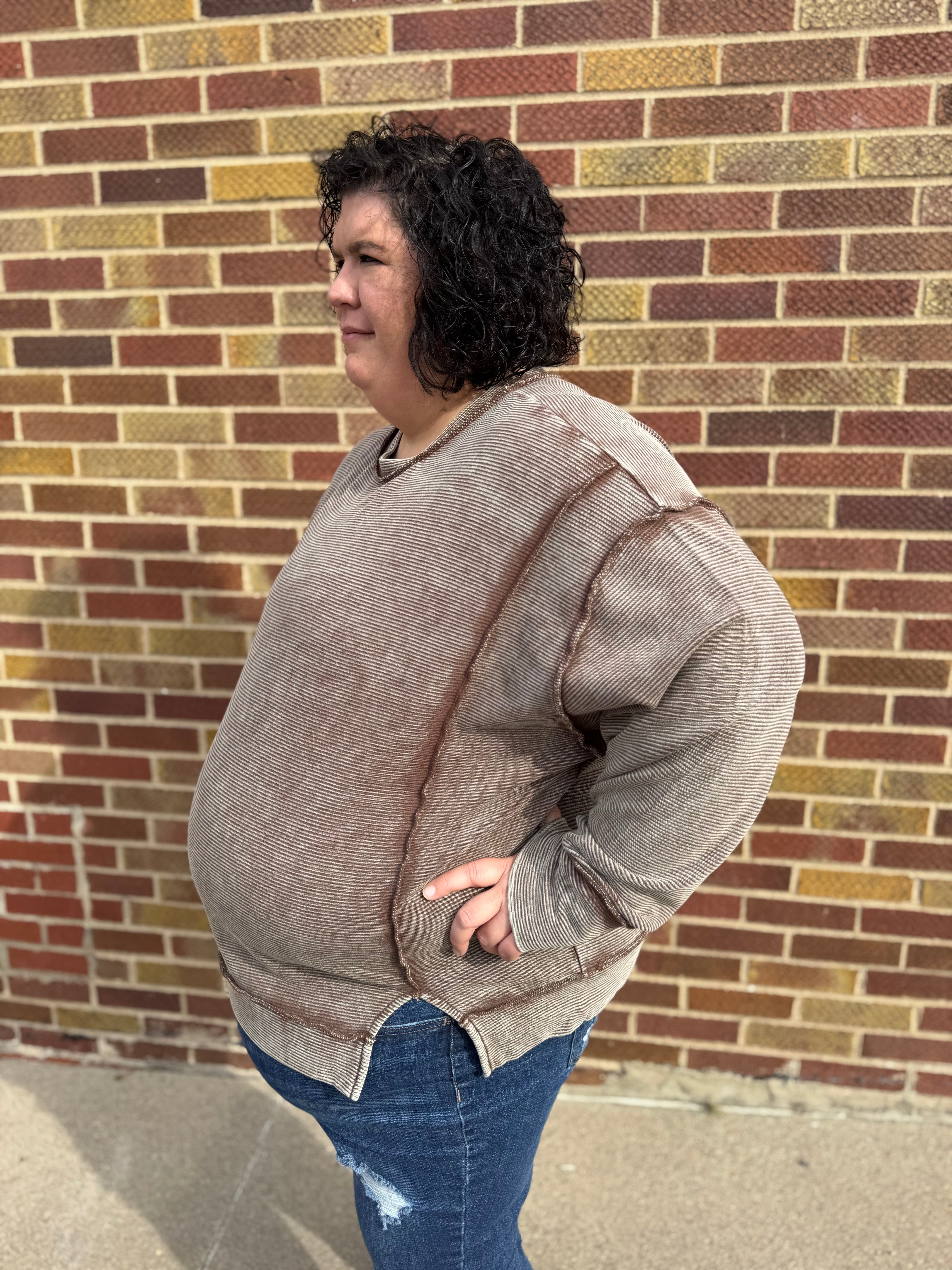 Stay cozy and cool in the Plus Acid Wash Double Ribbed Pullover! Its unique acid wash gives a trendy vintage vibe, while the double ribbed texture adds extra stretch and comfort.