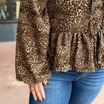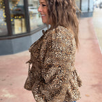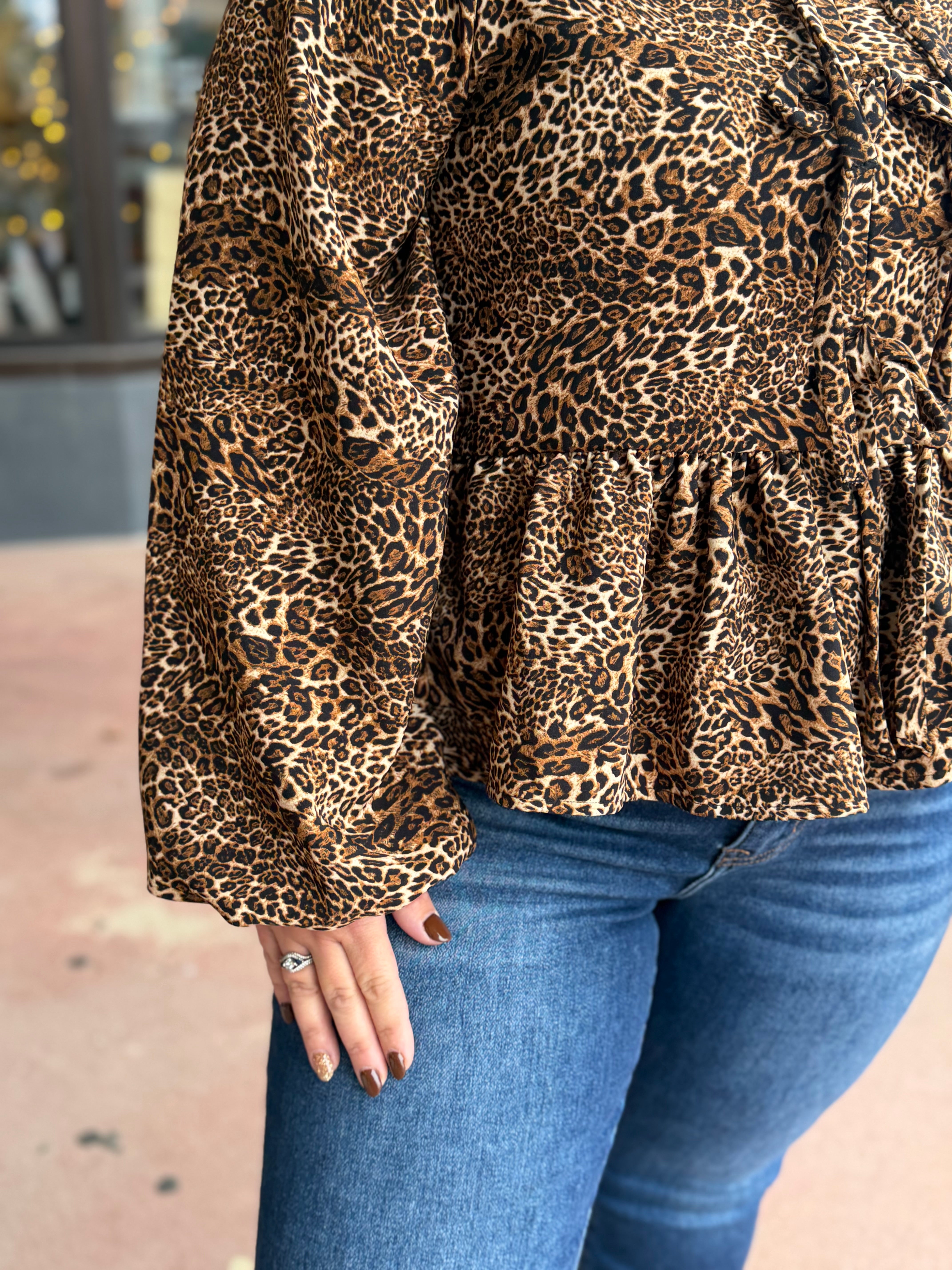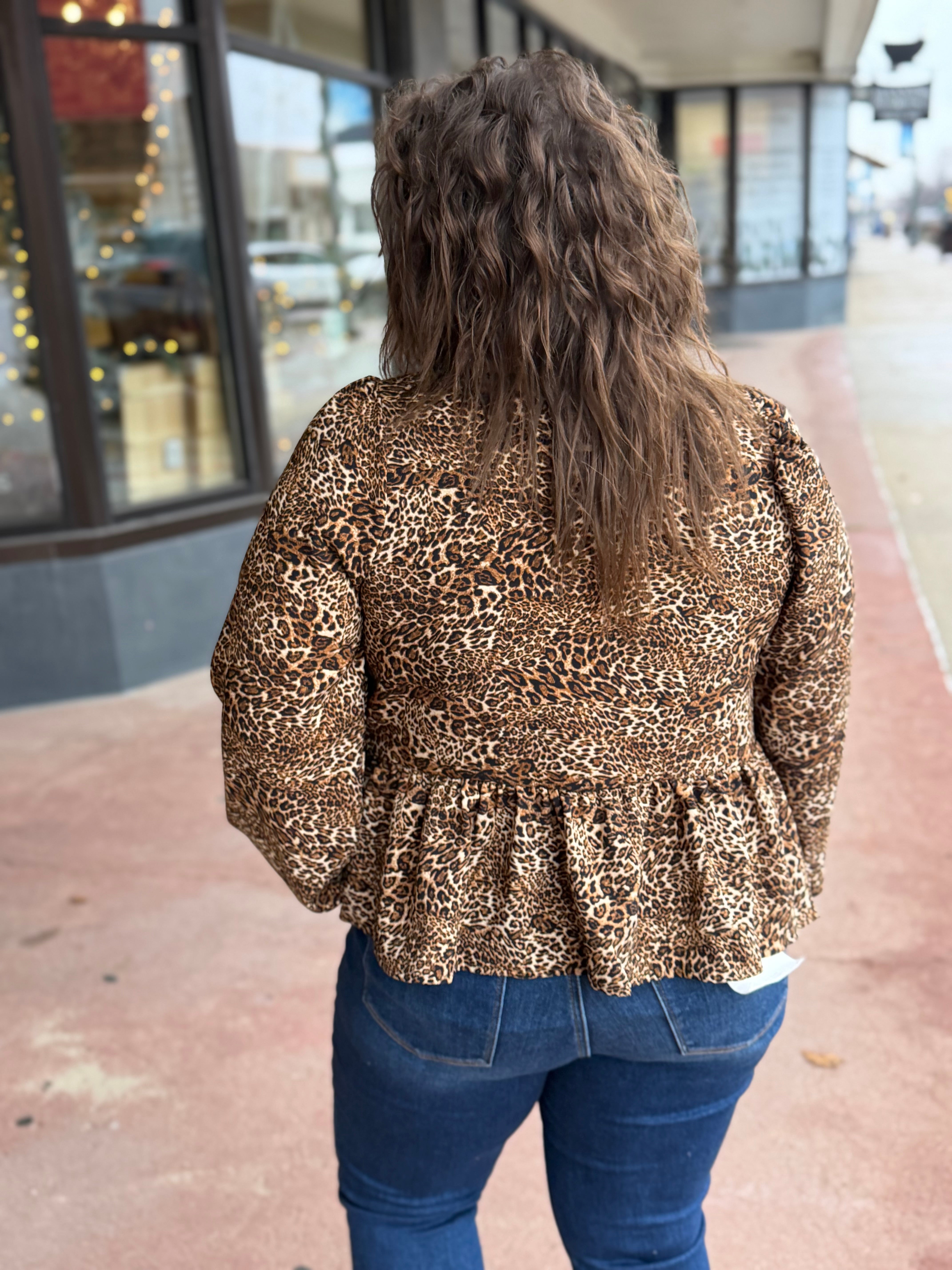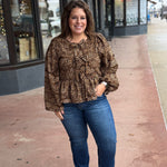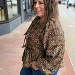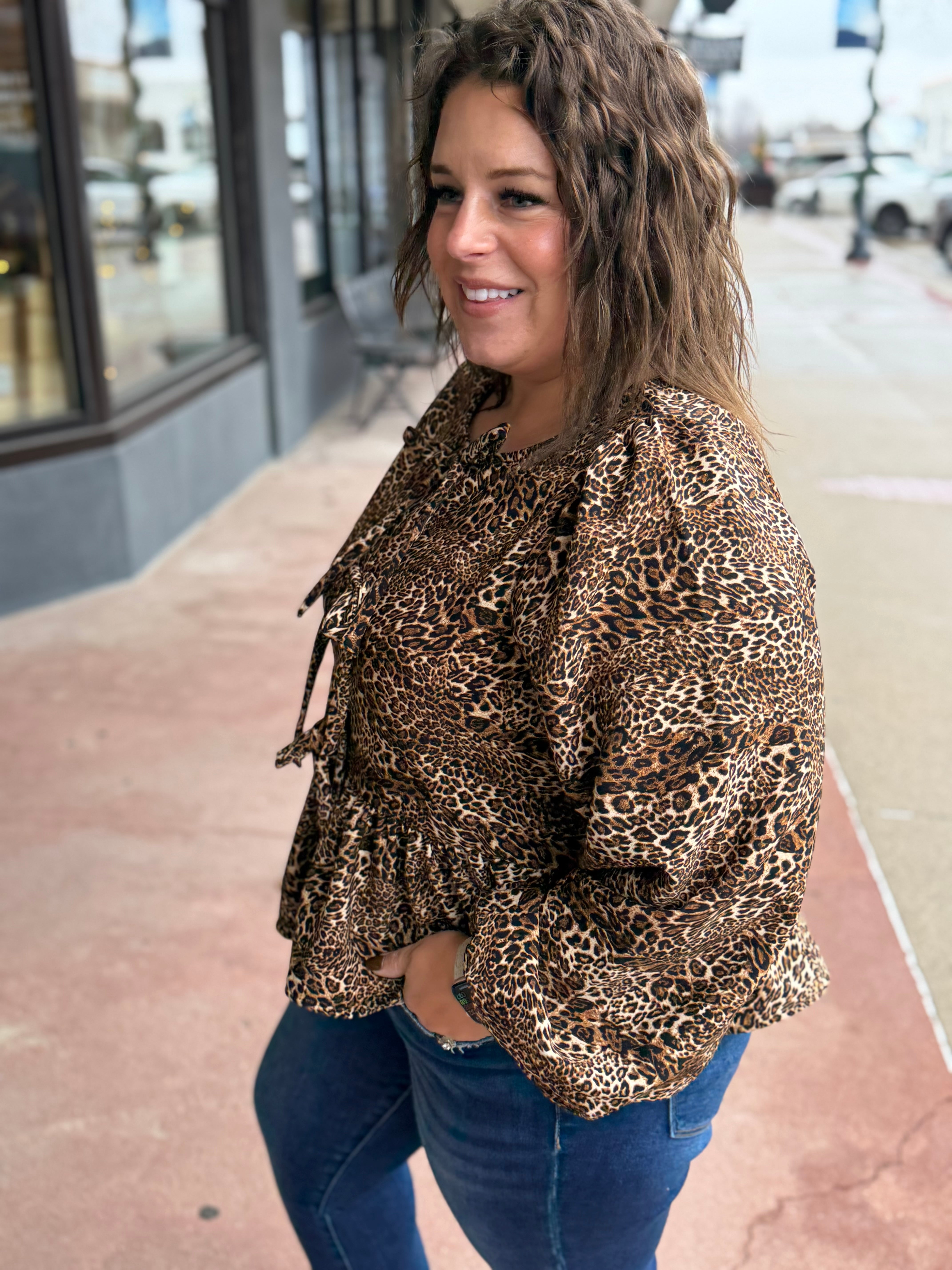 Plus Leopard Print Puff Sleeve Top w/Bow