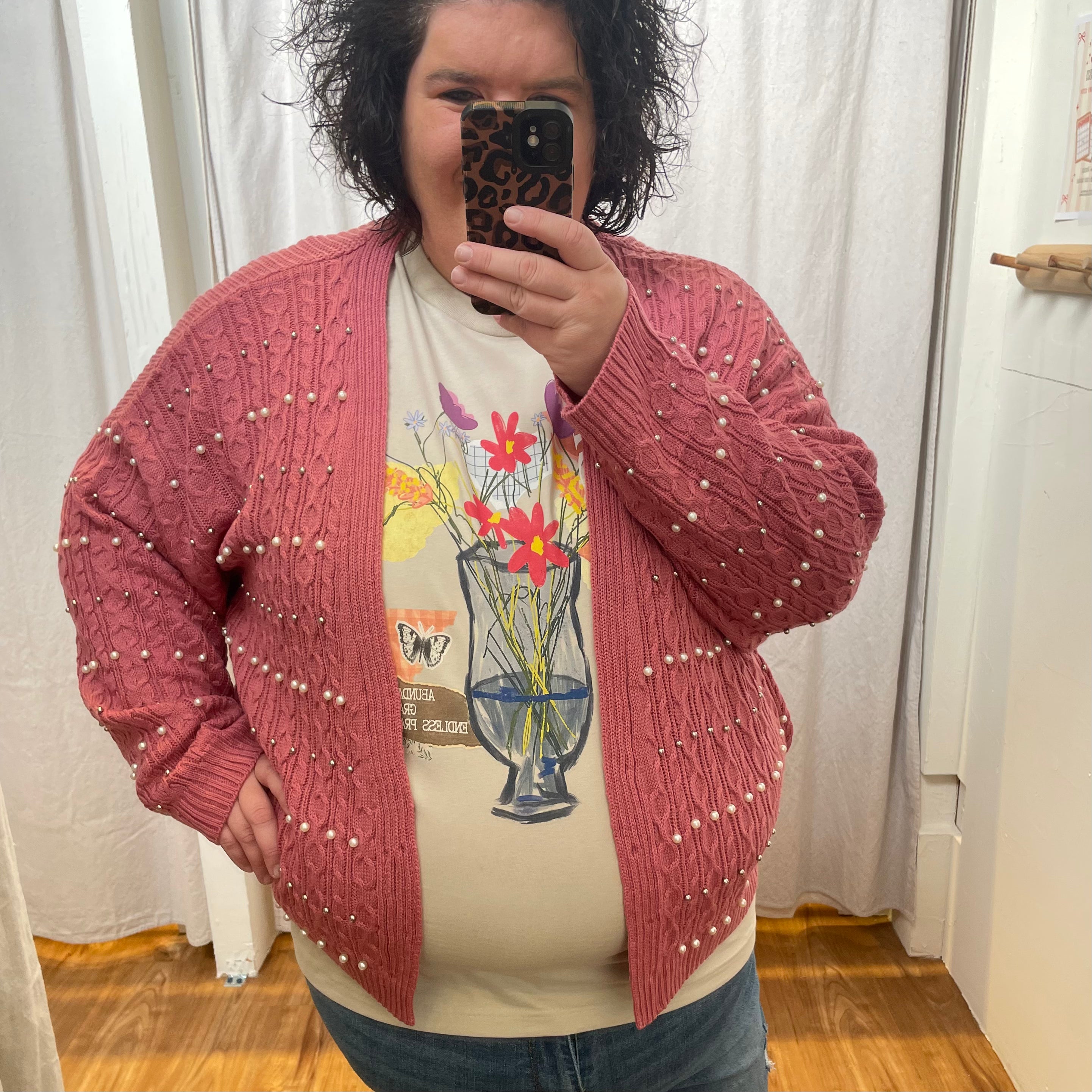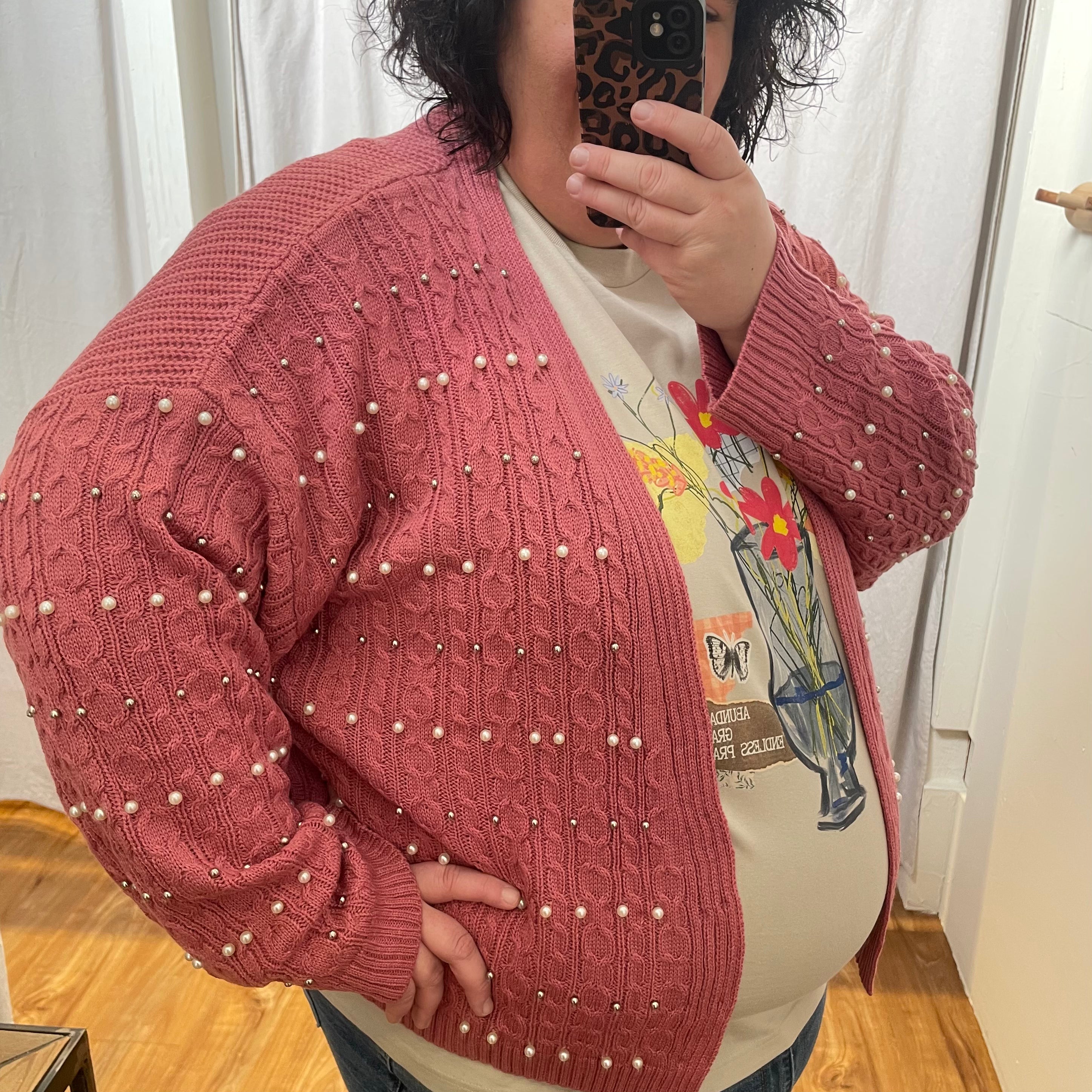 Plus Long Sleeve Cardigan w/Beaded Detail