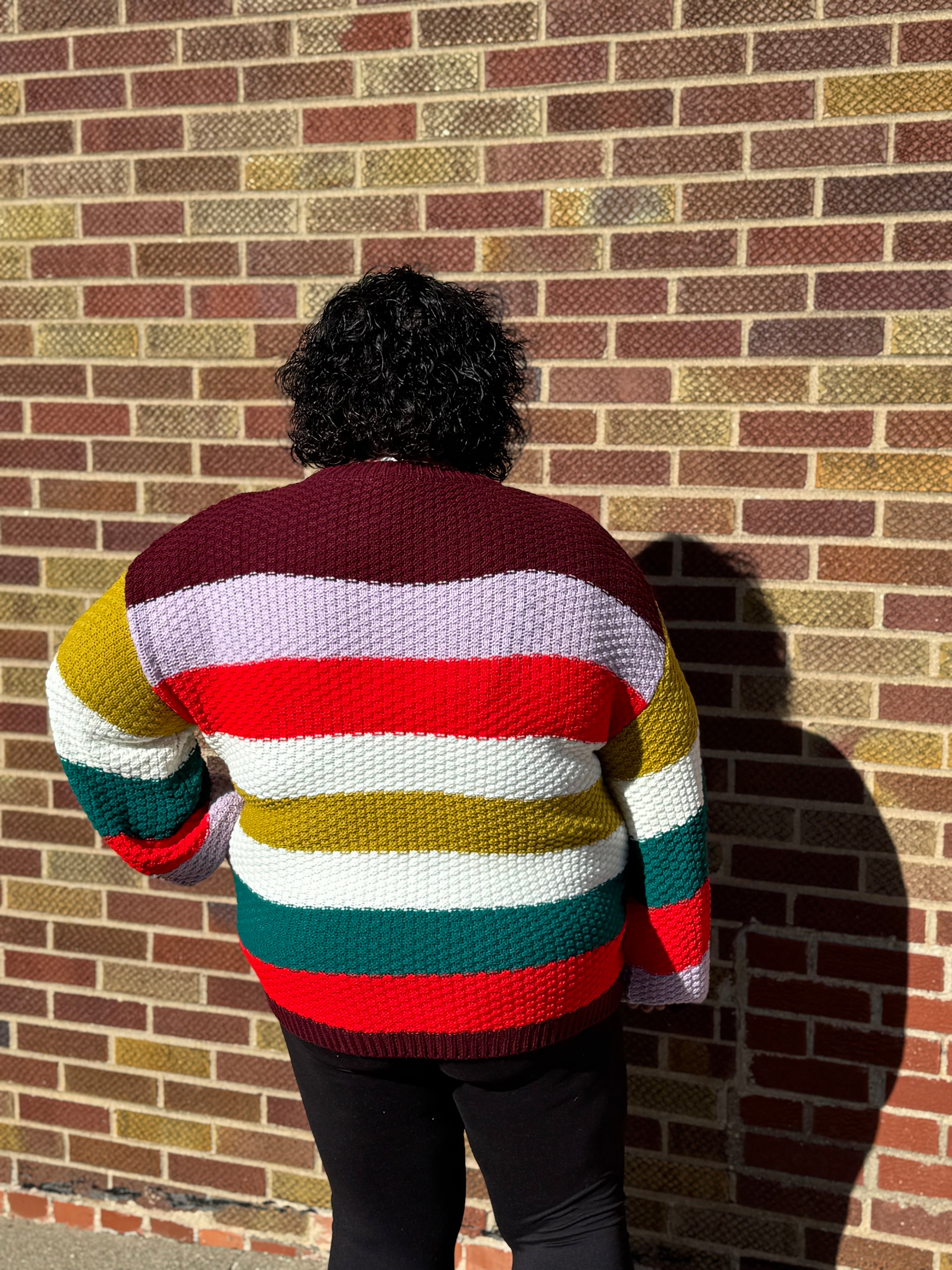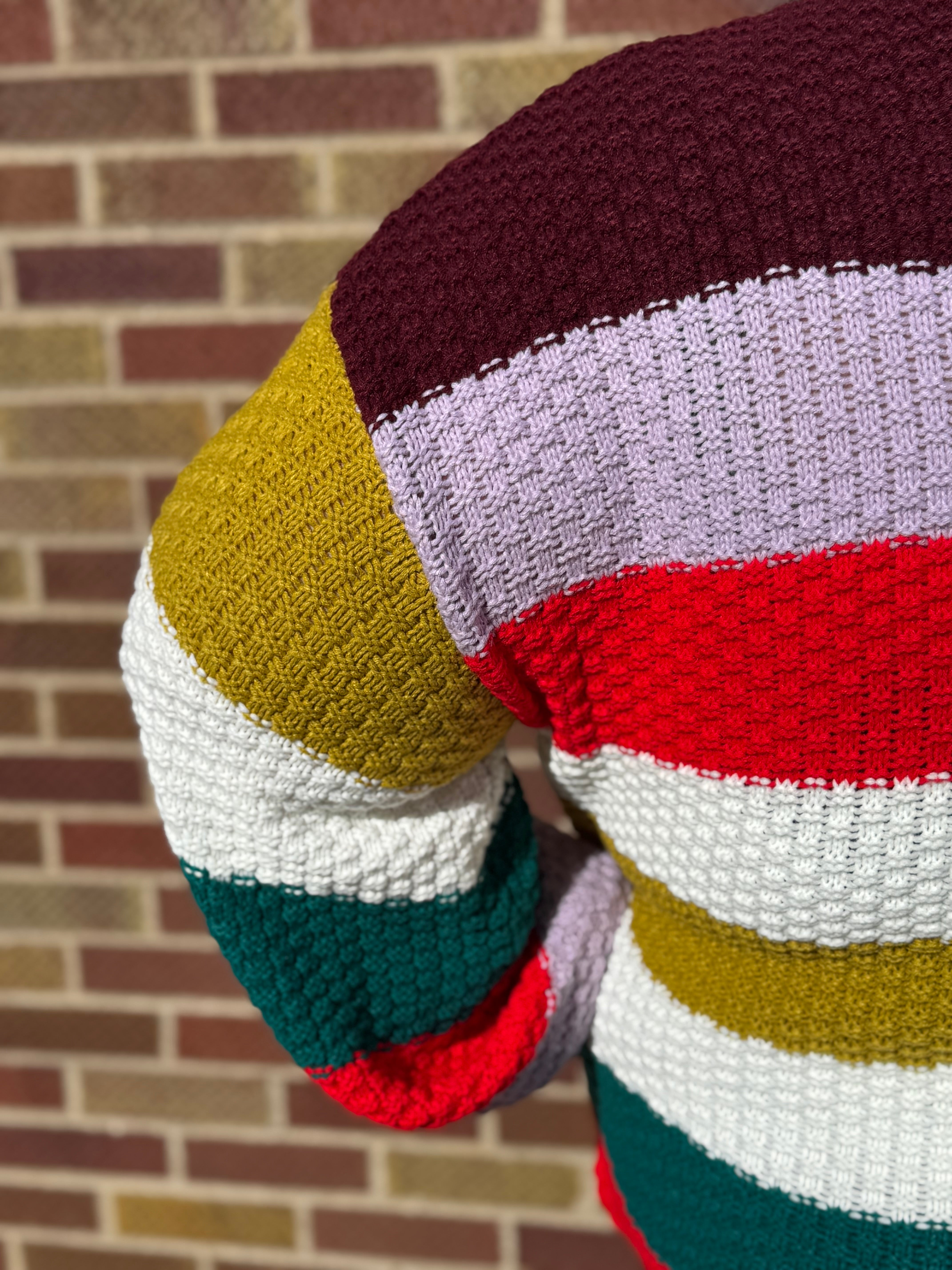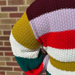 Wrap yourself in cozy charm with this Plus Multi Color Knit Sweater. Featuring a playful mix of burgundy, lilac, red, white, green, and teal, its vibrant knitted design keeps your style lively and fun. Perfect for adding a pop of color to any outfit while staying warm and comfy all day long.