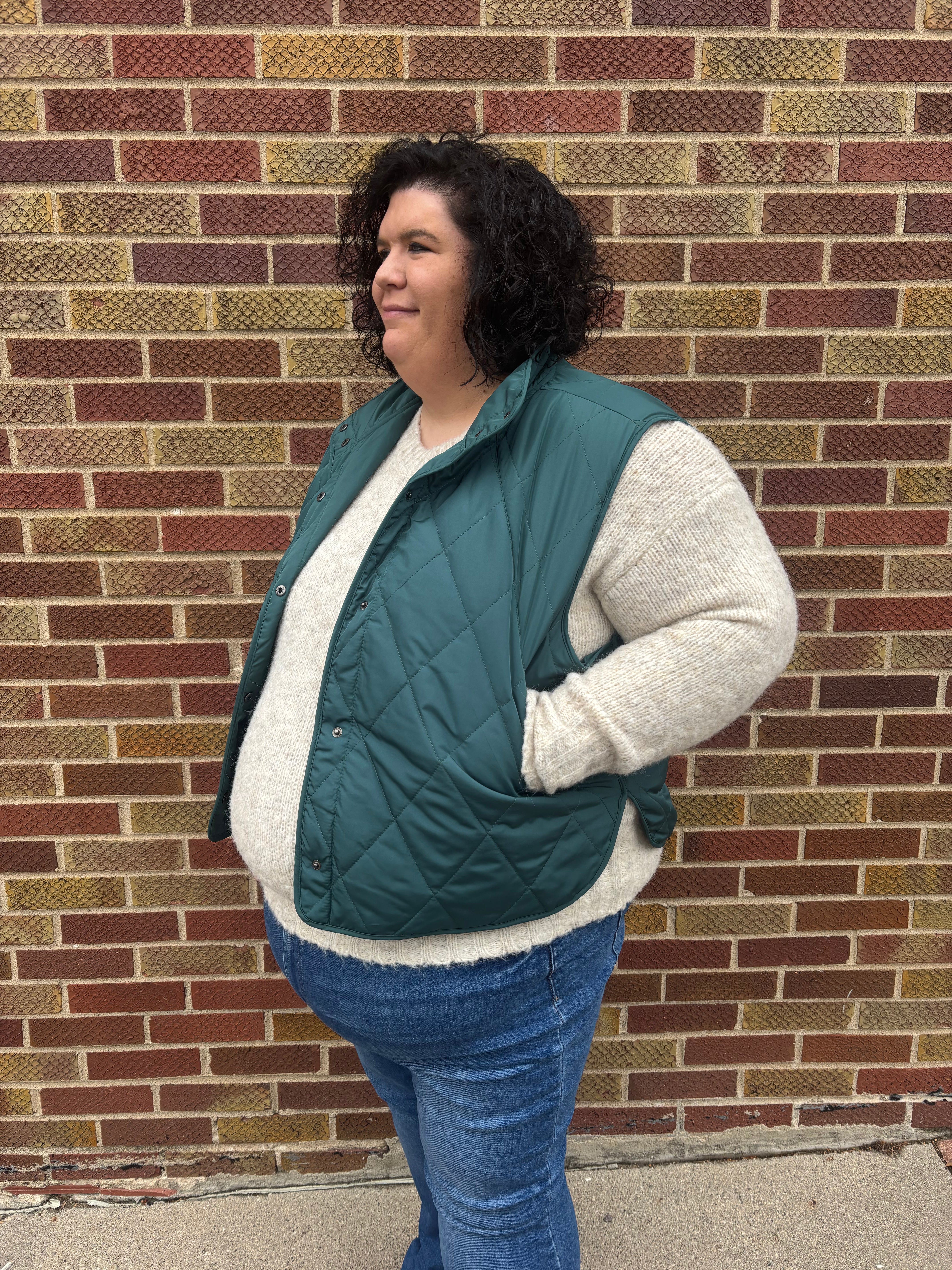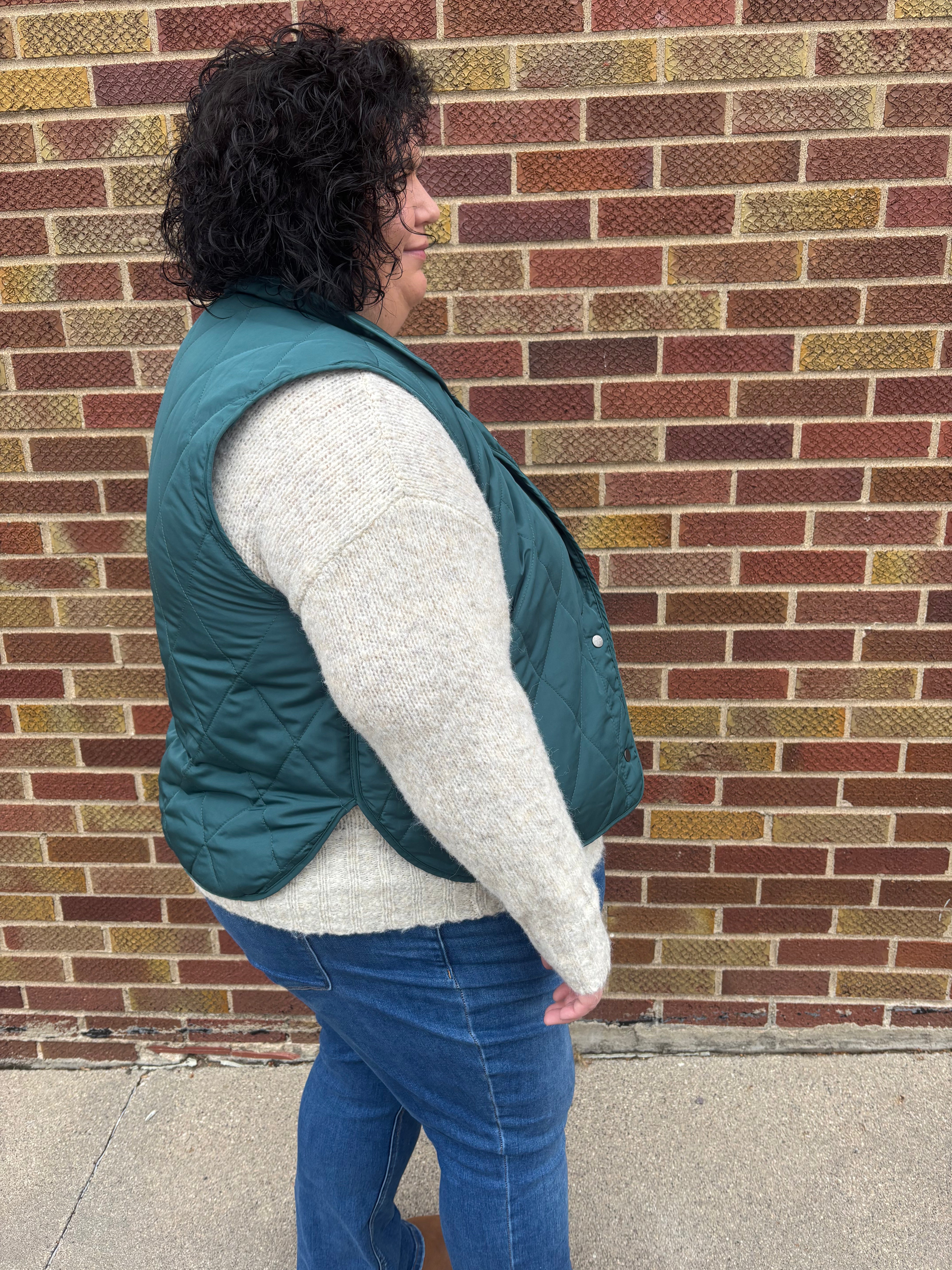 Expertly crafted with a quilted design, our Plus Quilted Puffer Vest Jacket is the perfect choice for those chilly days. With its vibrant green color, this vest jacket is not only stylish but also provides warmth and comfort. A must-have for any wardrobe.
