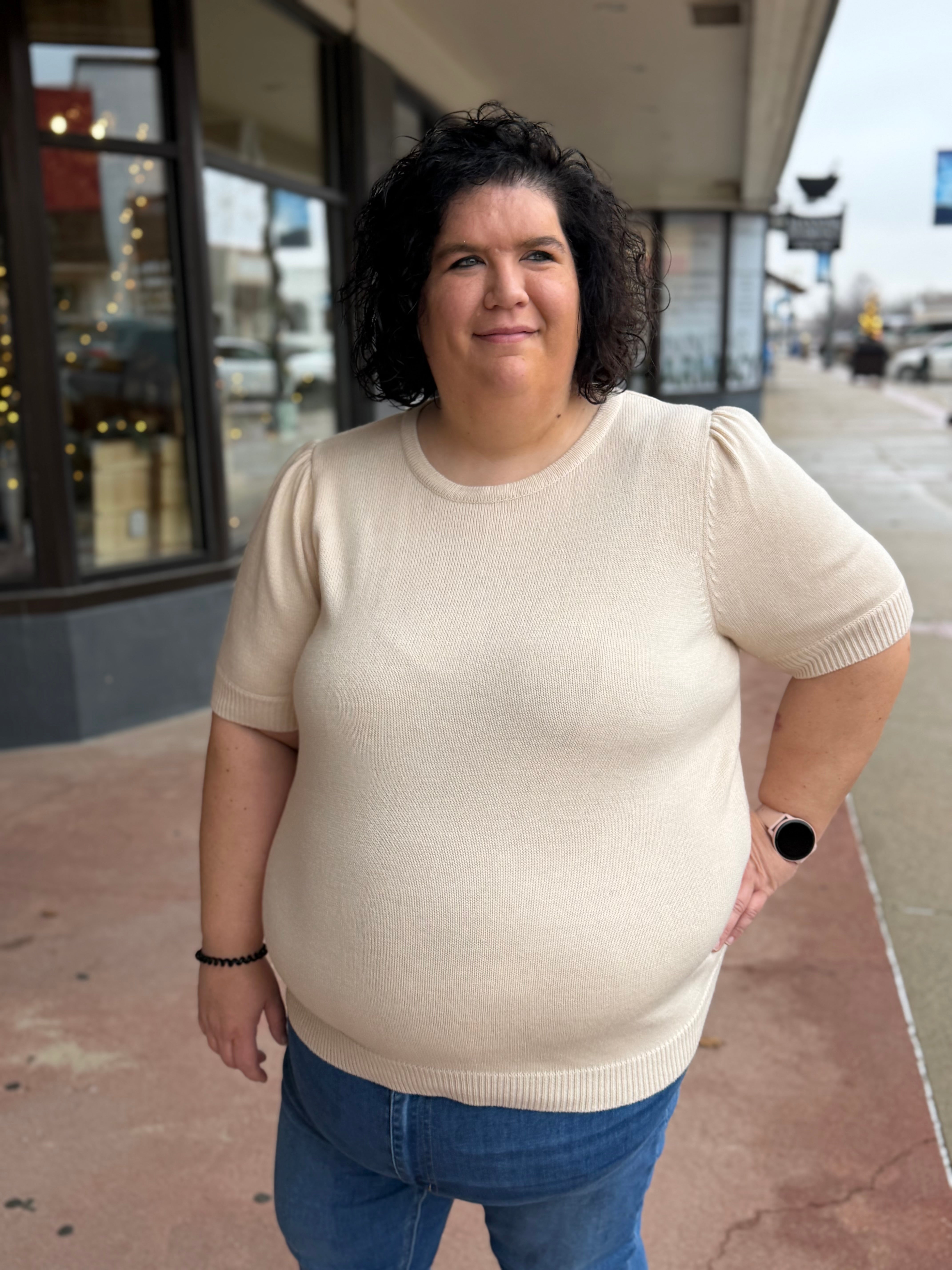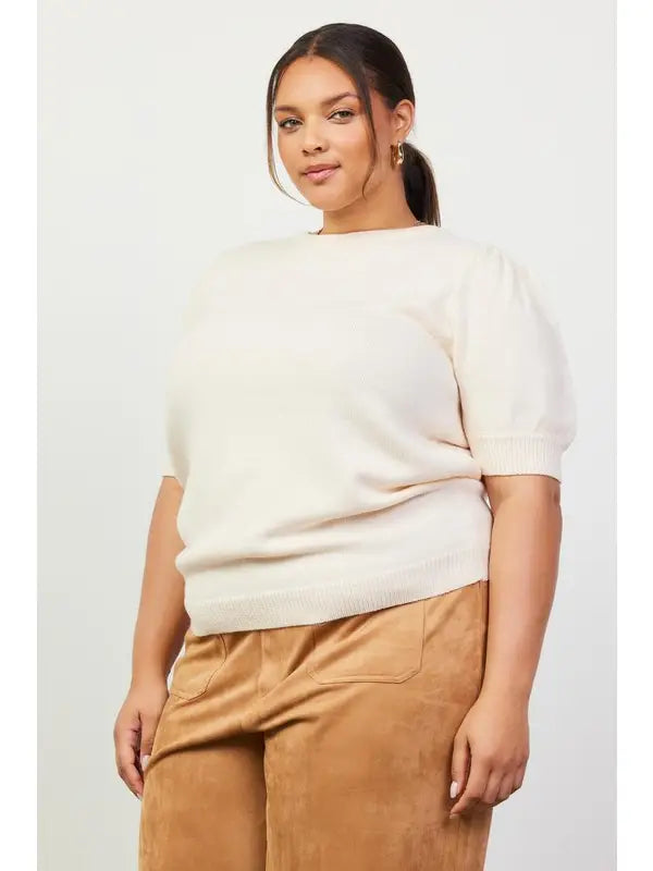 Plus Recycled Yarn Short Sleeve Sweater Top