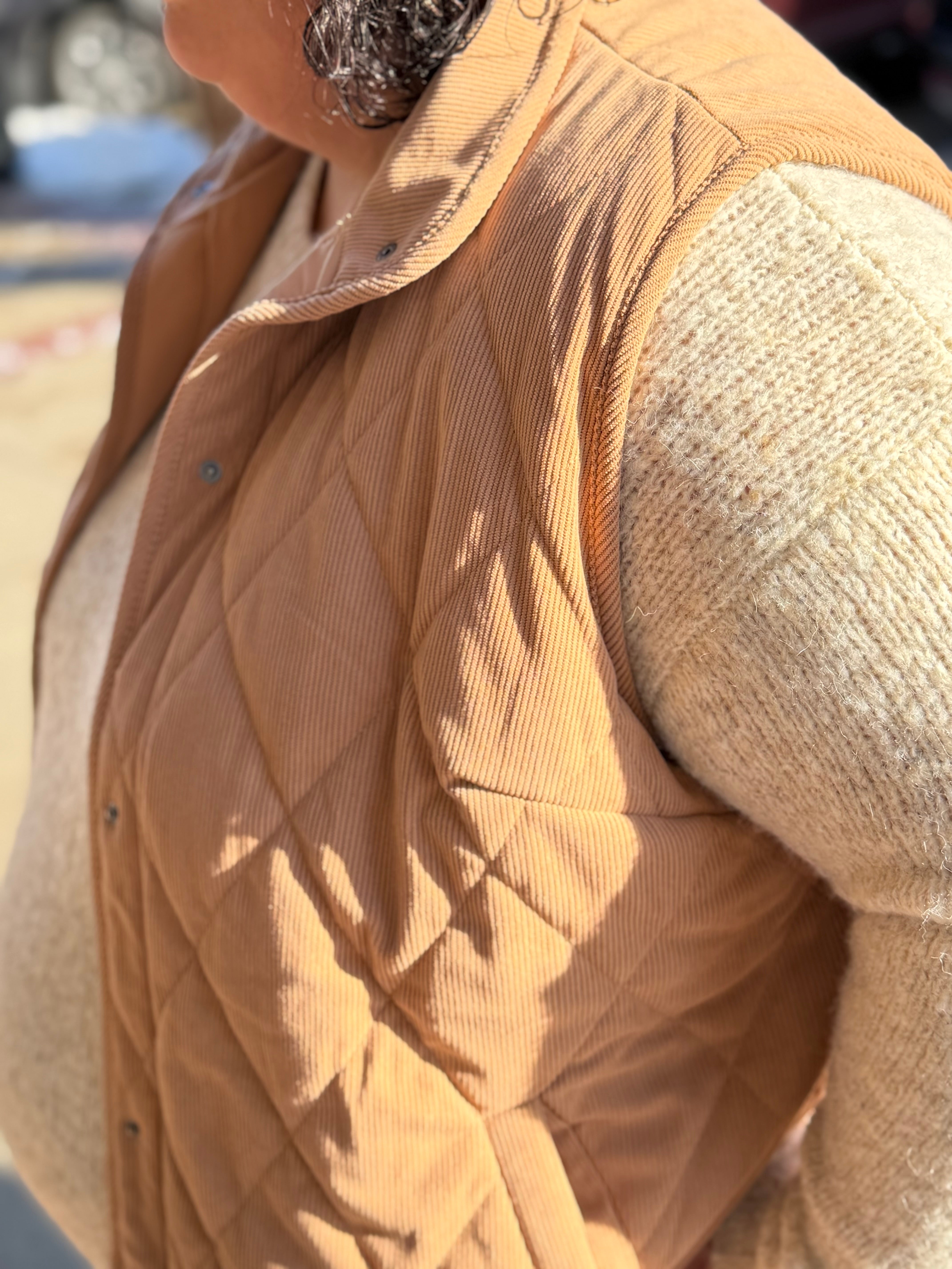 Meet your new favorite layering piece—a ribbed snap button vest that feels like a warm teddy bear hug. Wrapped in that cozy, cuddly teddy bear tone, this vest is all about comfort without sacrificing style. The practical pockets keep your essentials close while the snap buttons make getting dressed effortless. Layer it over everything from tees to dresses for instant warmth and that irresistibly soft, snuggly vibe you'll want to live in.