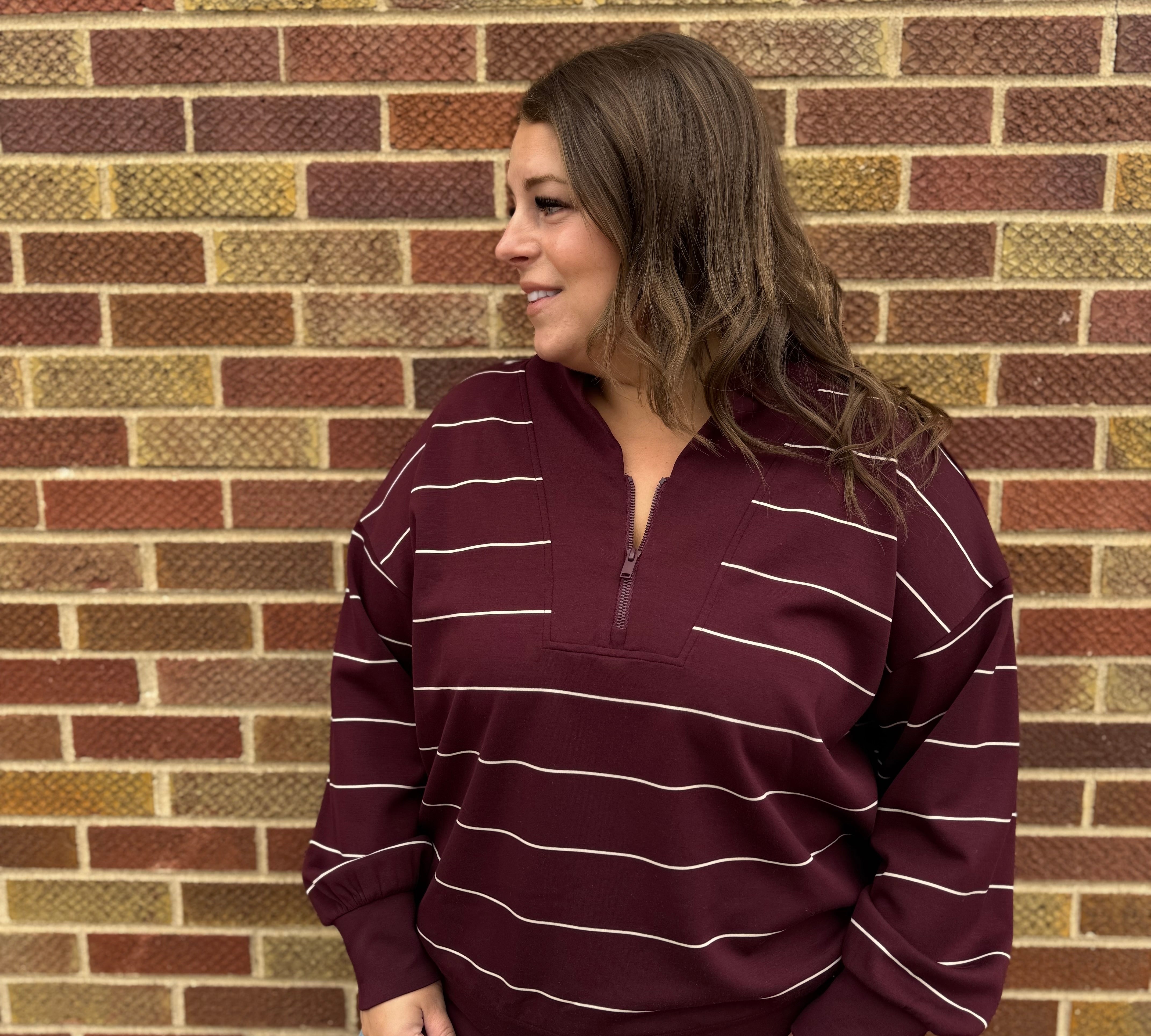 Plus Modal Scuba Stripe V Neck Jacket