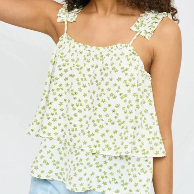 Girls Floral Pleated Strap Layered Tank
