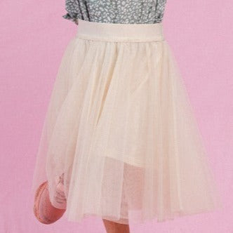 Description: tulle skirt with polyester lining. Elastic waist for easy pull up.
