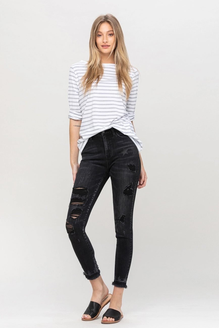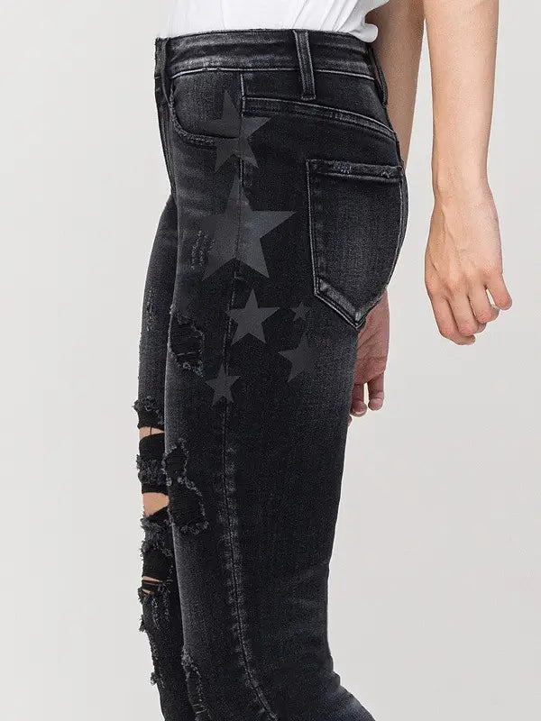 Take your style to the stars with the Haylie Star Print Vervet Skinny Jeans. Crafted from premium Vervet denim, these slim fit jeans provide a figure-flattering look with a modern star print. Whether you dress them up or down, these are sure to be a hit this season.